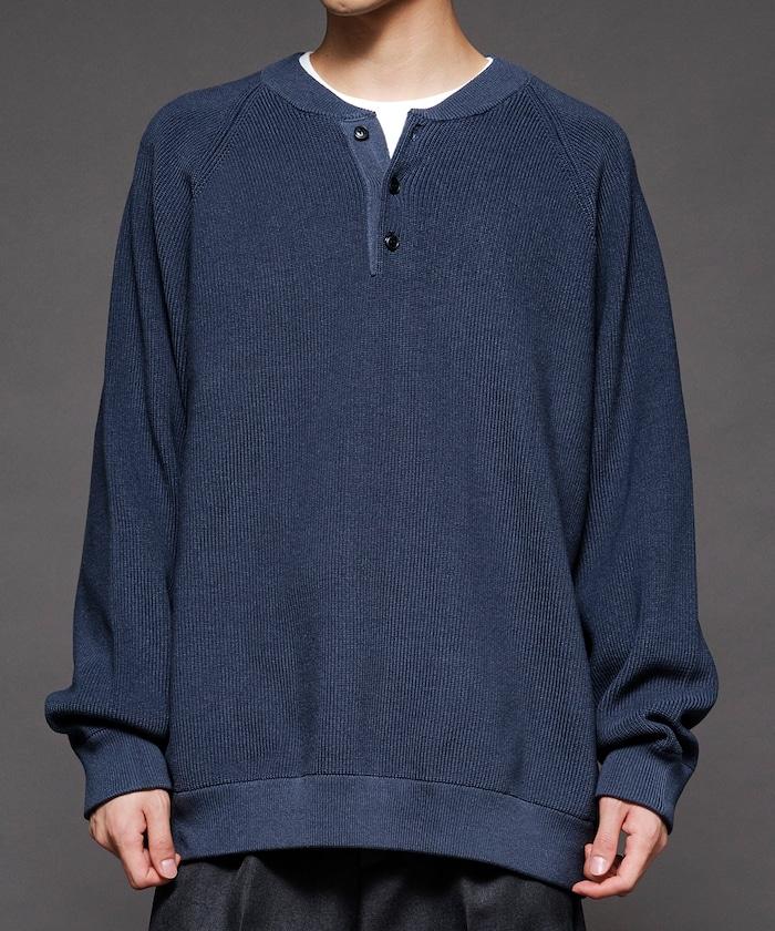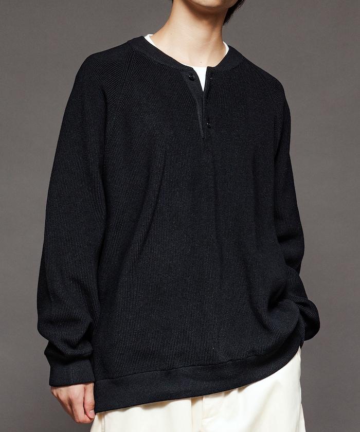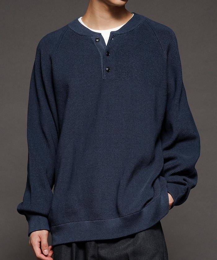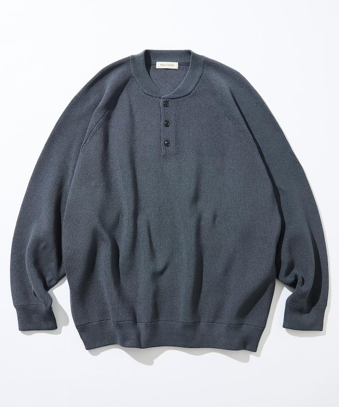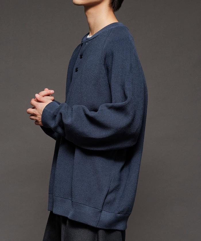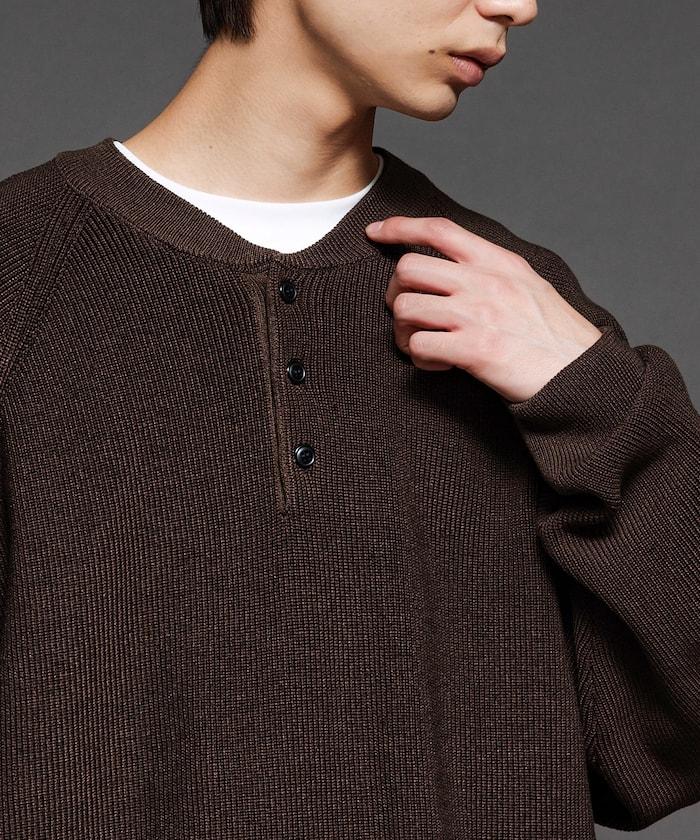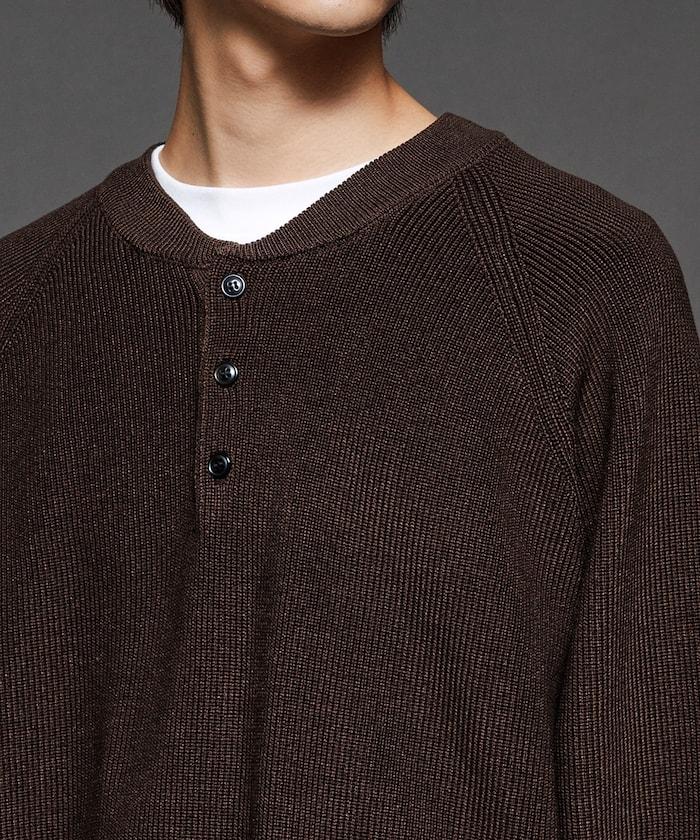 寬鬆版型 Henley 領針織衫,採用單針床針織技術