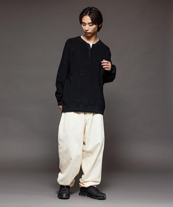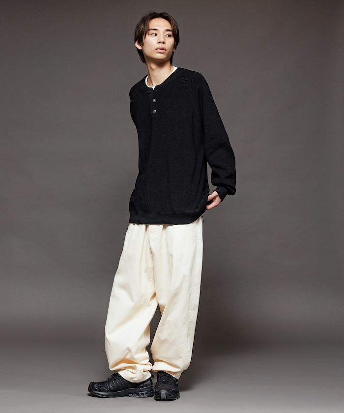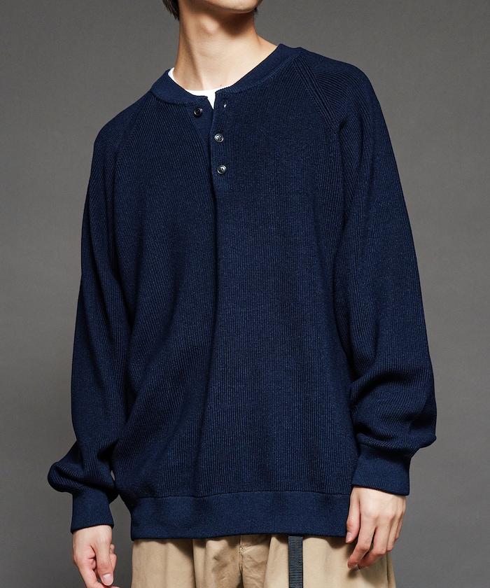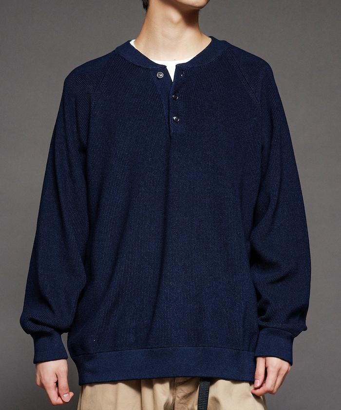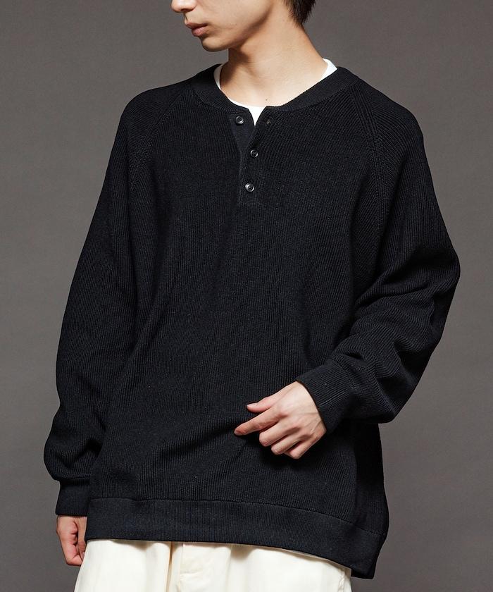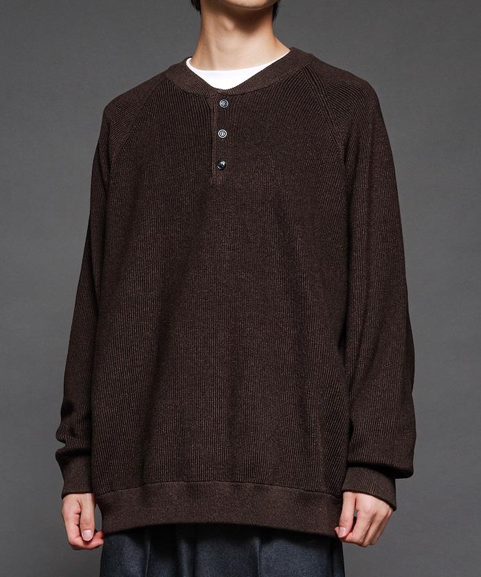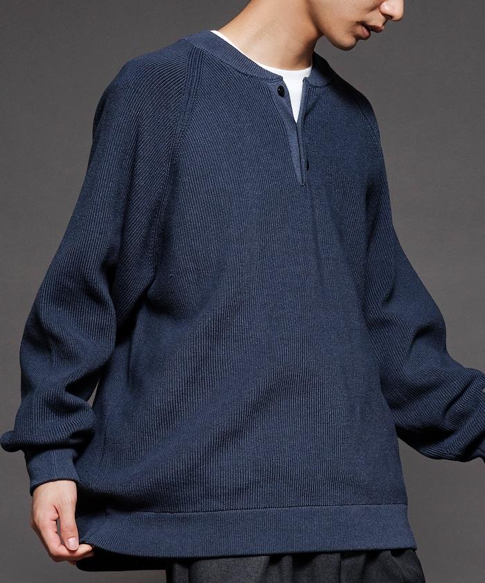 寬鬆版型 Henley 領針織衫,採用單針床針織技術