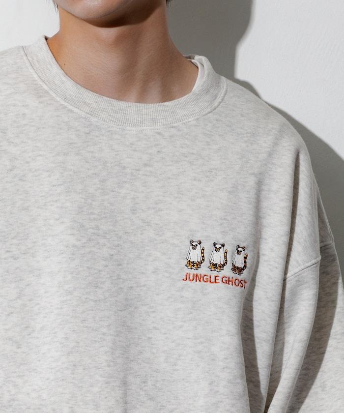 寬鬆版型 單點刺繡 圓領衛衣 / TIGER GHOST