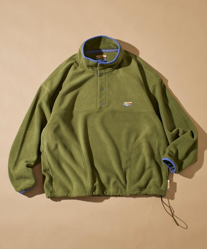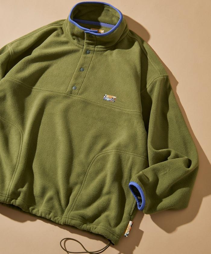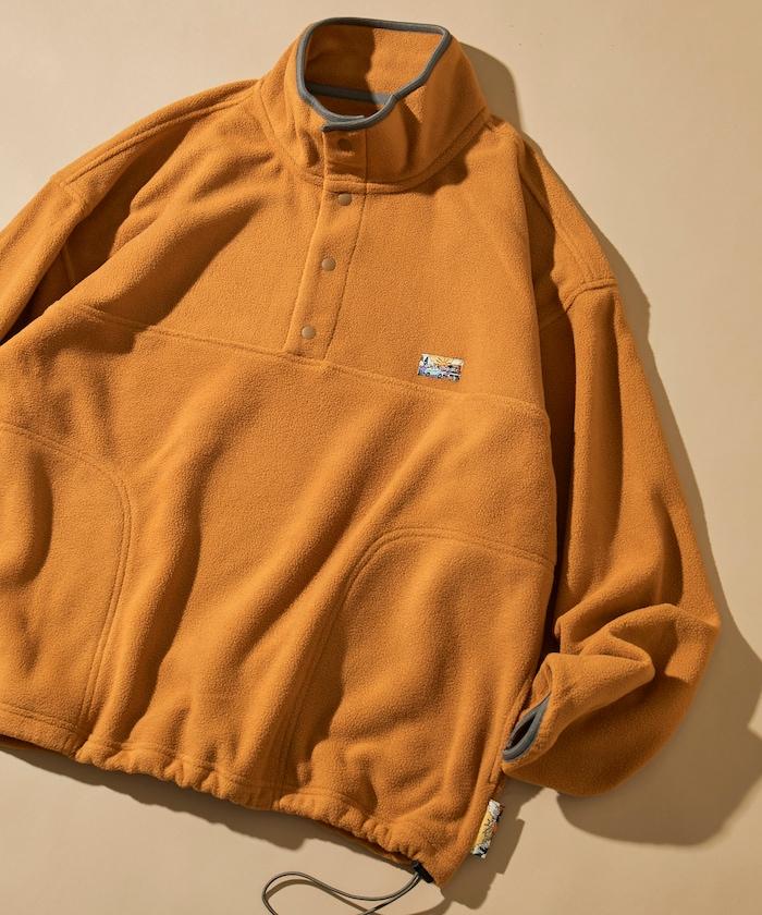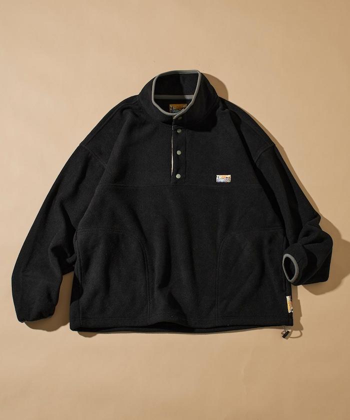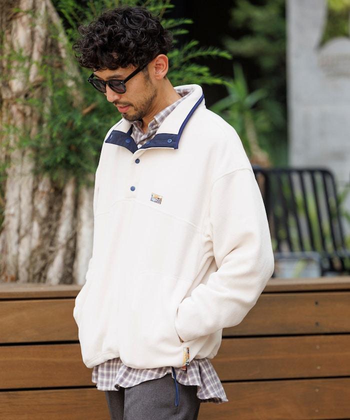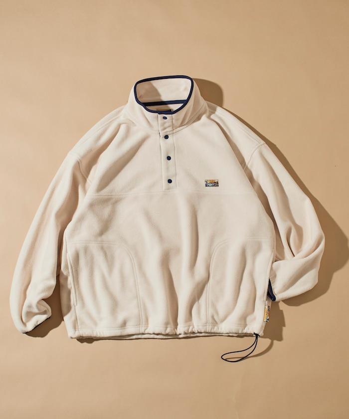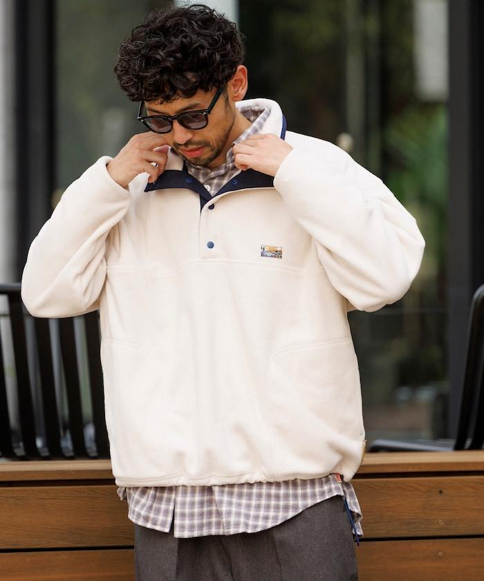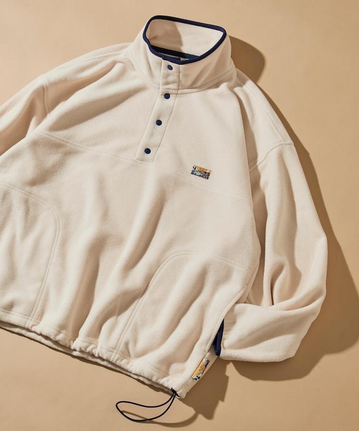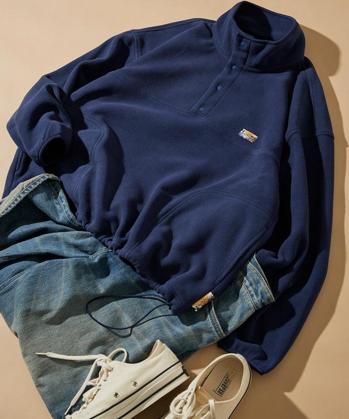抓絨套頭衫採用立扣設計,版型寬鬆。