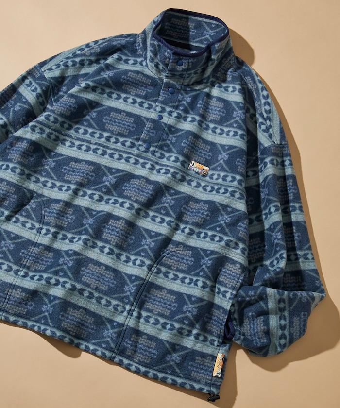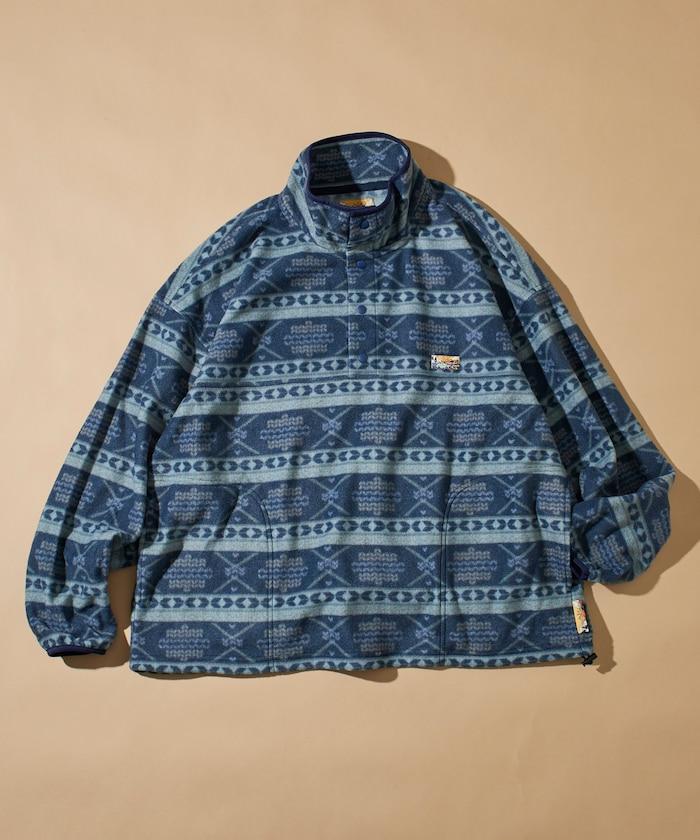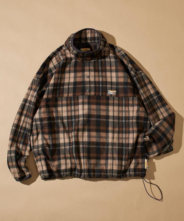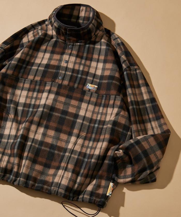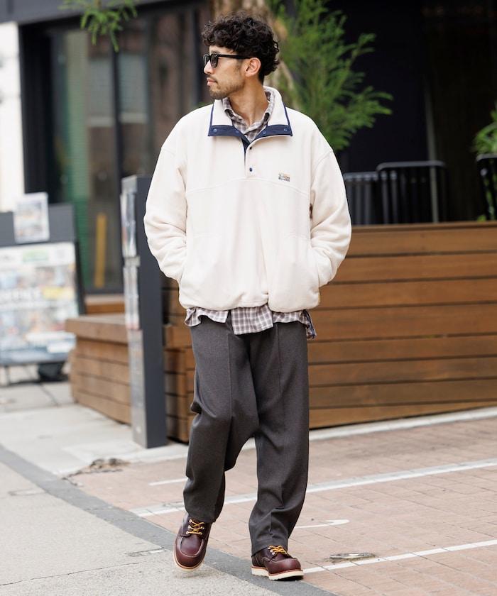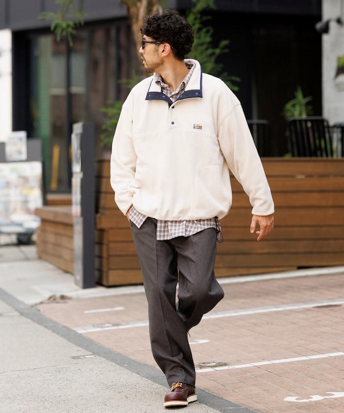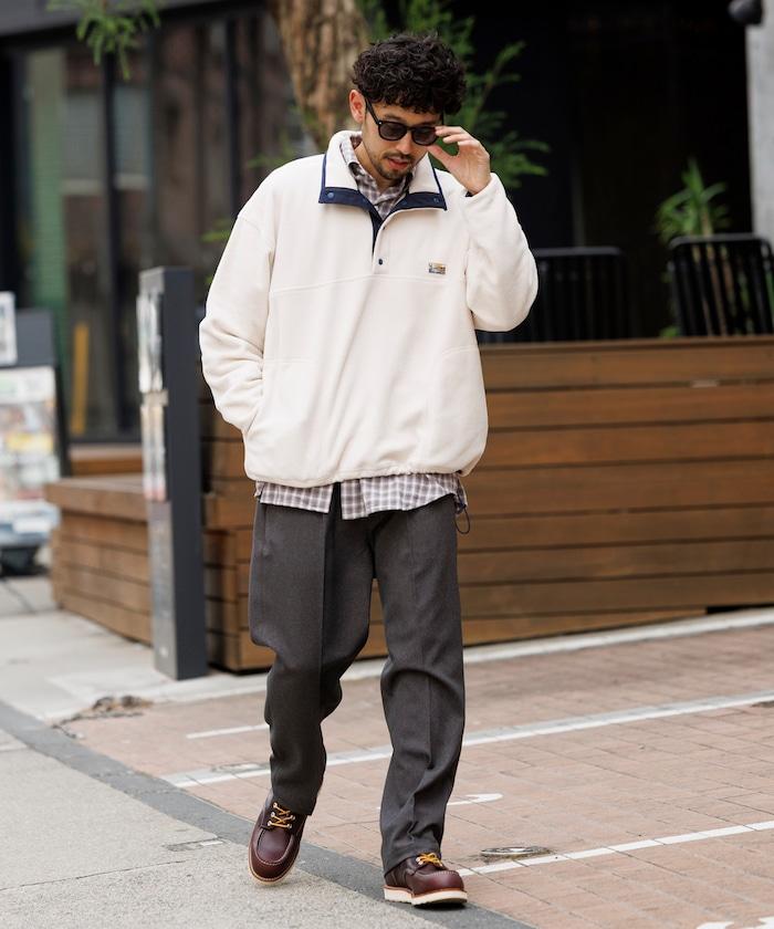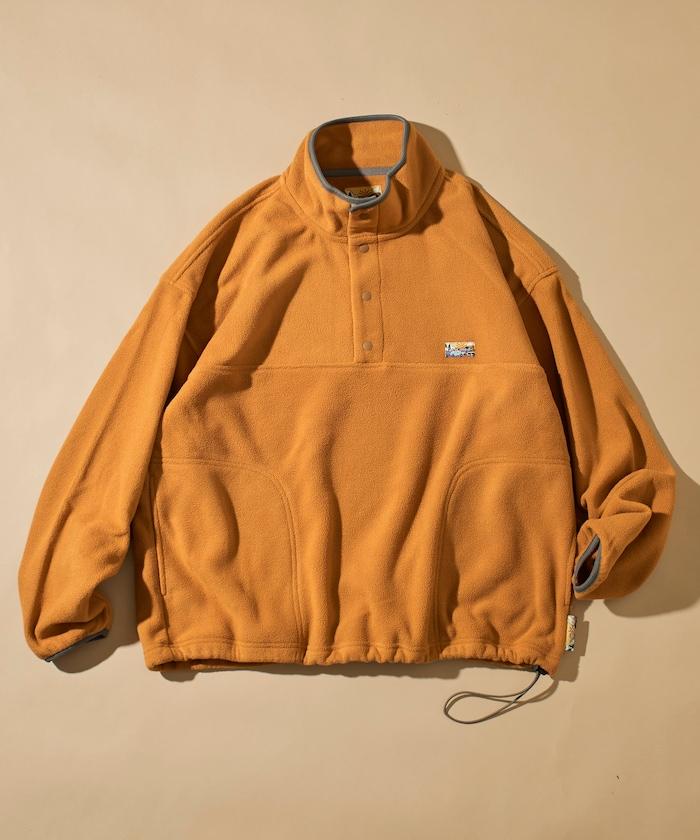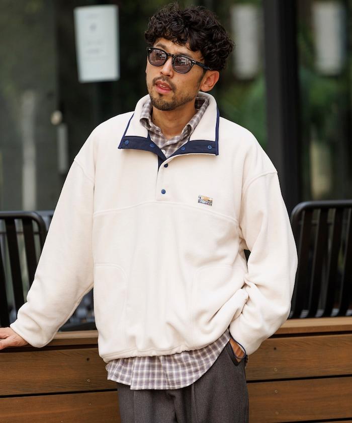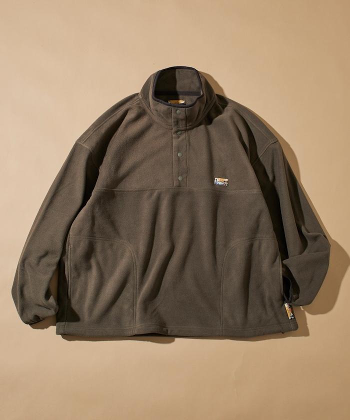 抓絨套頭衫採用立扣設計,版型寬鬆。