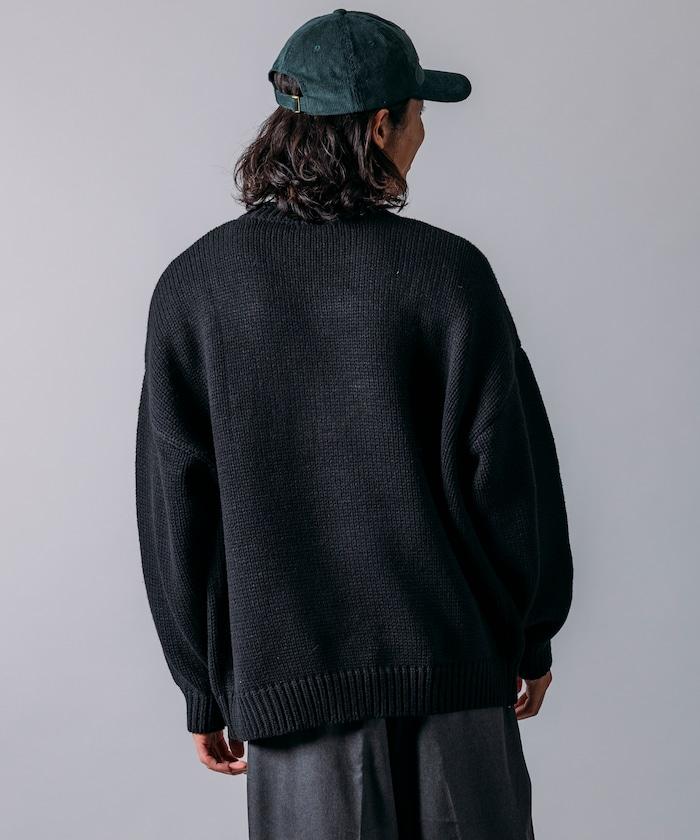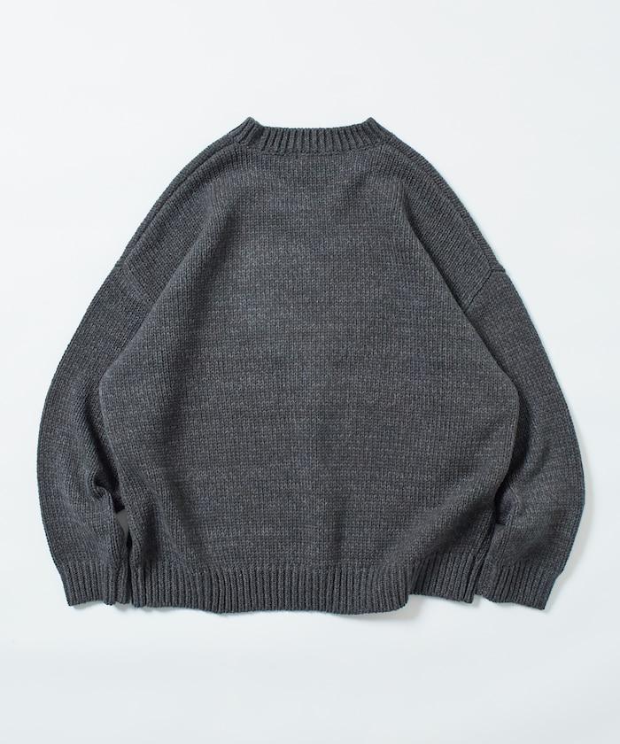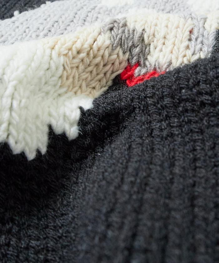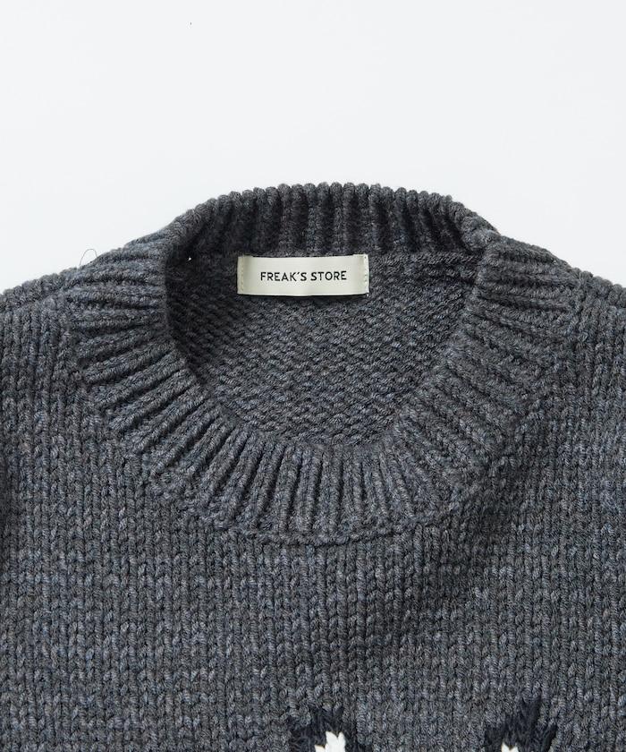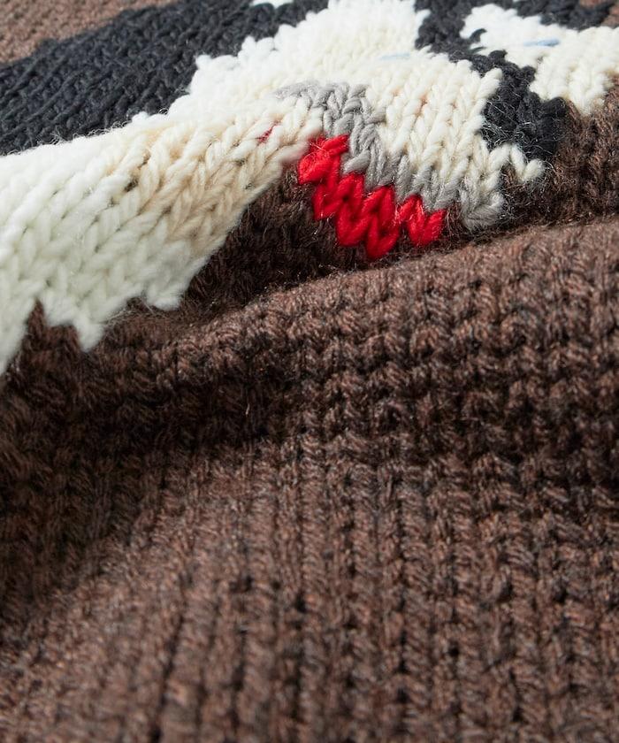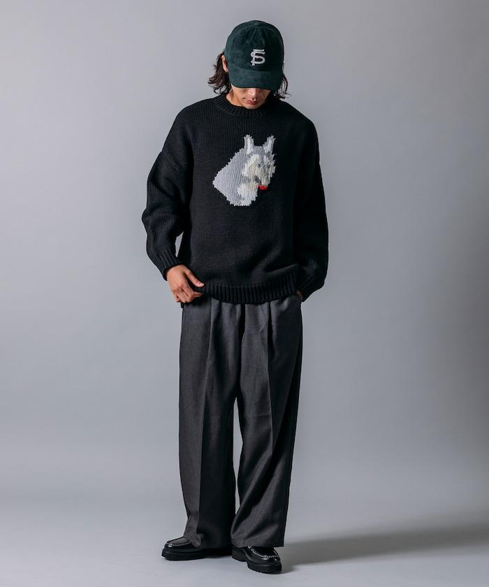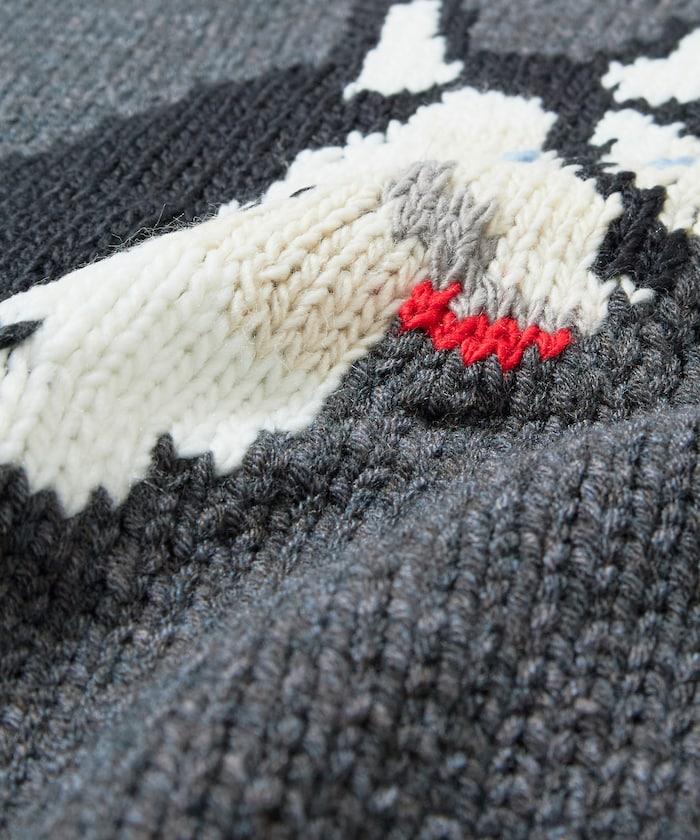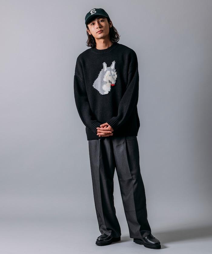 寬鬆版型 狗狗圖案 粗針織 提花 圓領毛衣 / 哈士奇