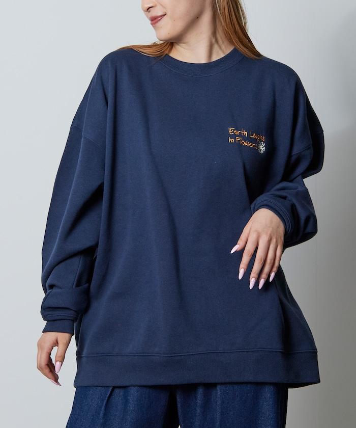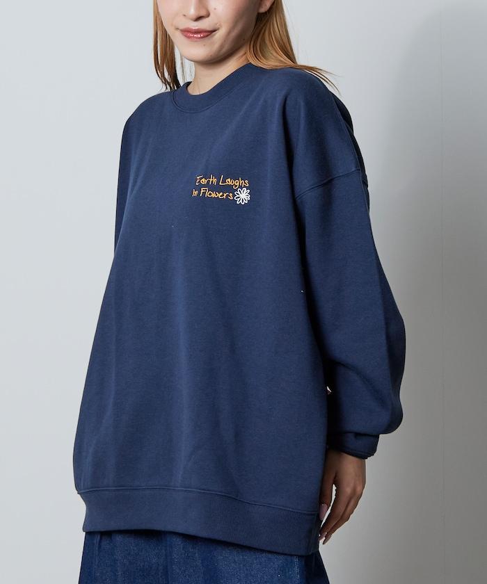 寬鬆版型 繩狀刺繡設計 後背印花 圓領運動衫