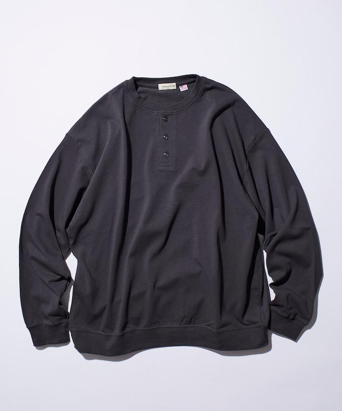 經典美式休閒亨利領 T 恤,下襬有羅紋。