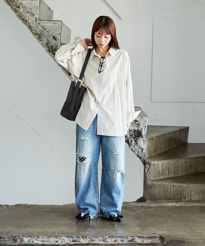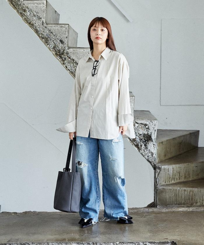 常規色襯衫,超大寬鬆版型十分可愛。