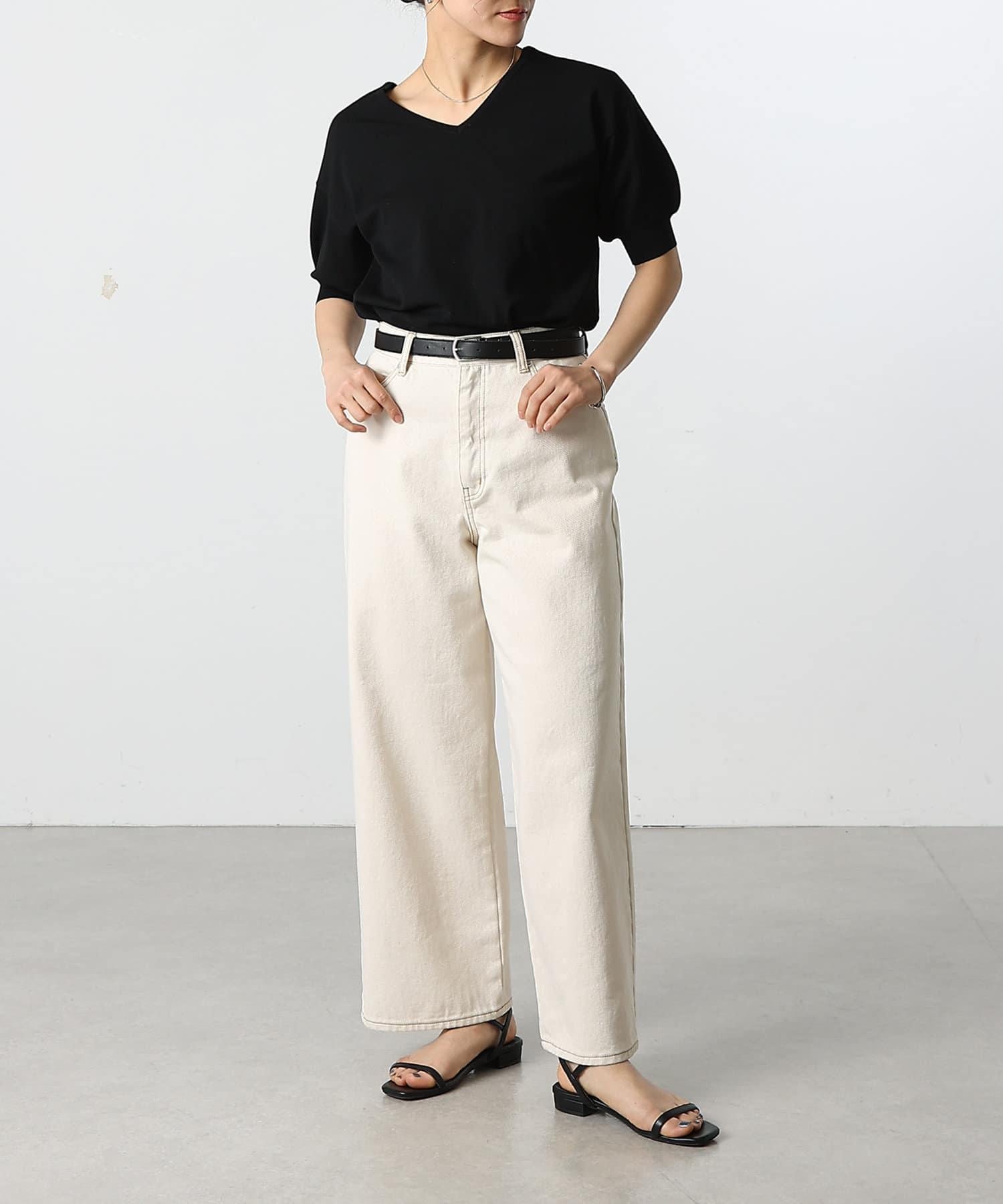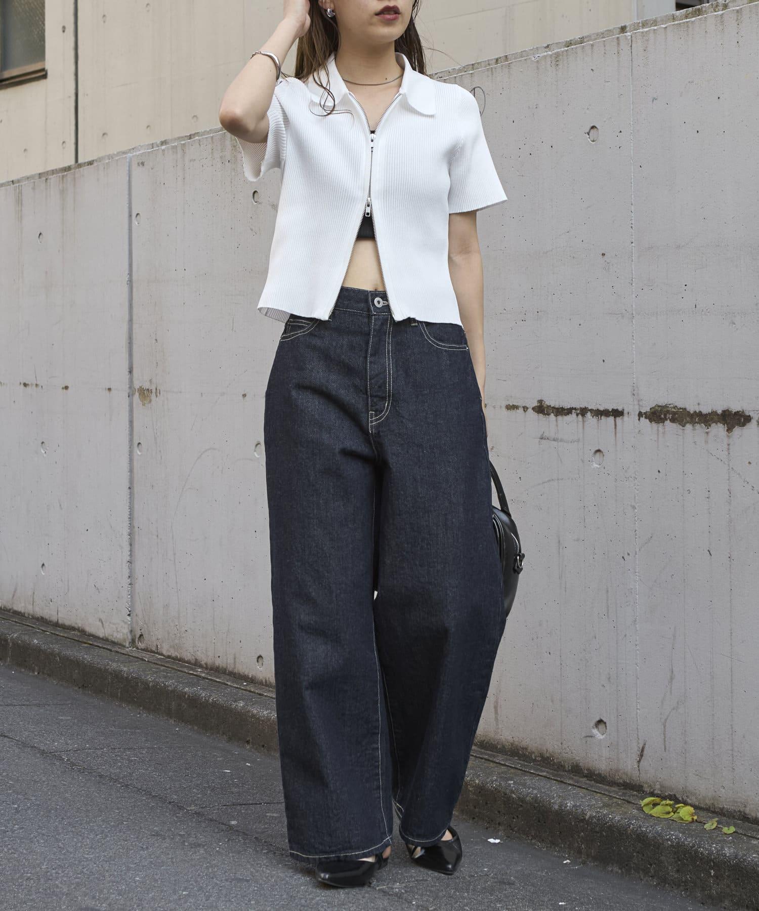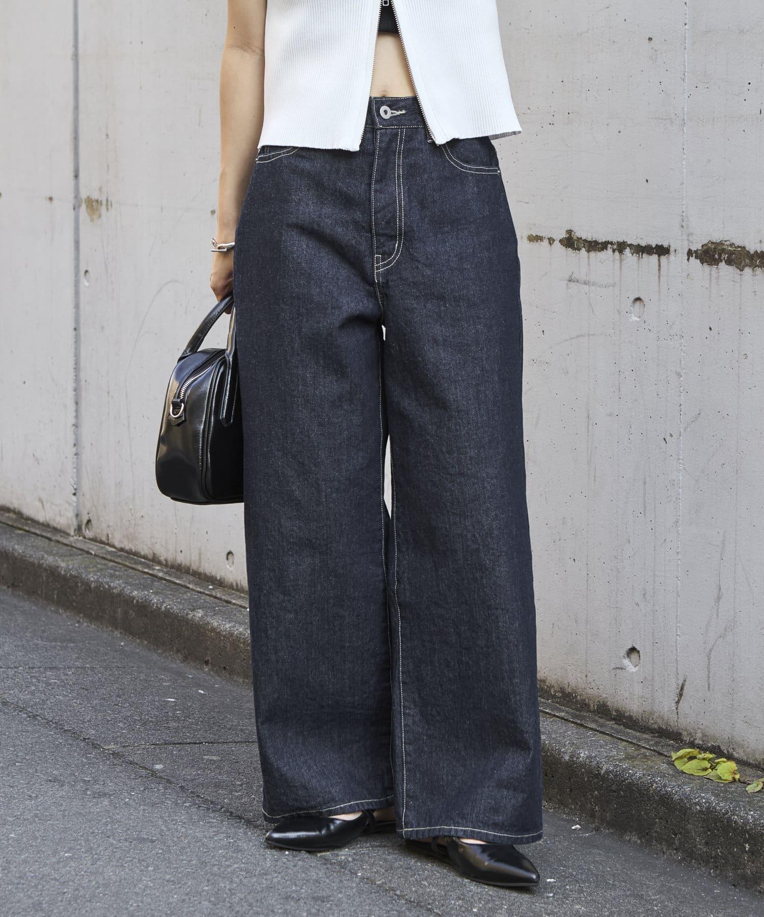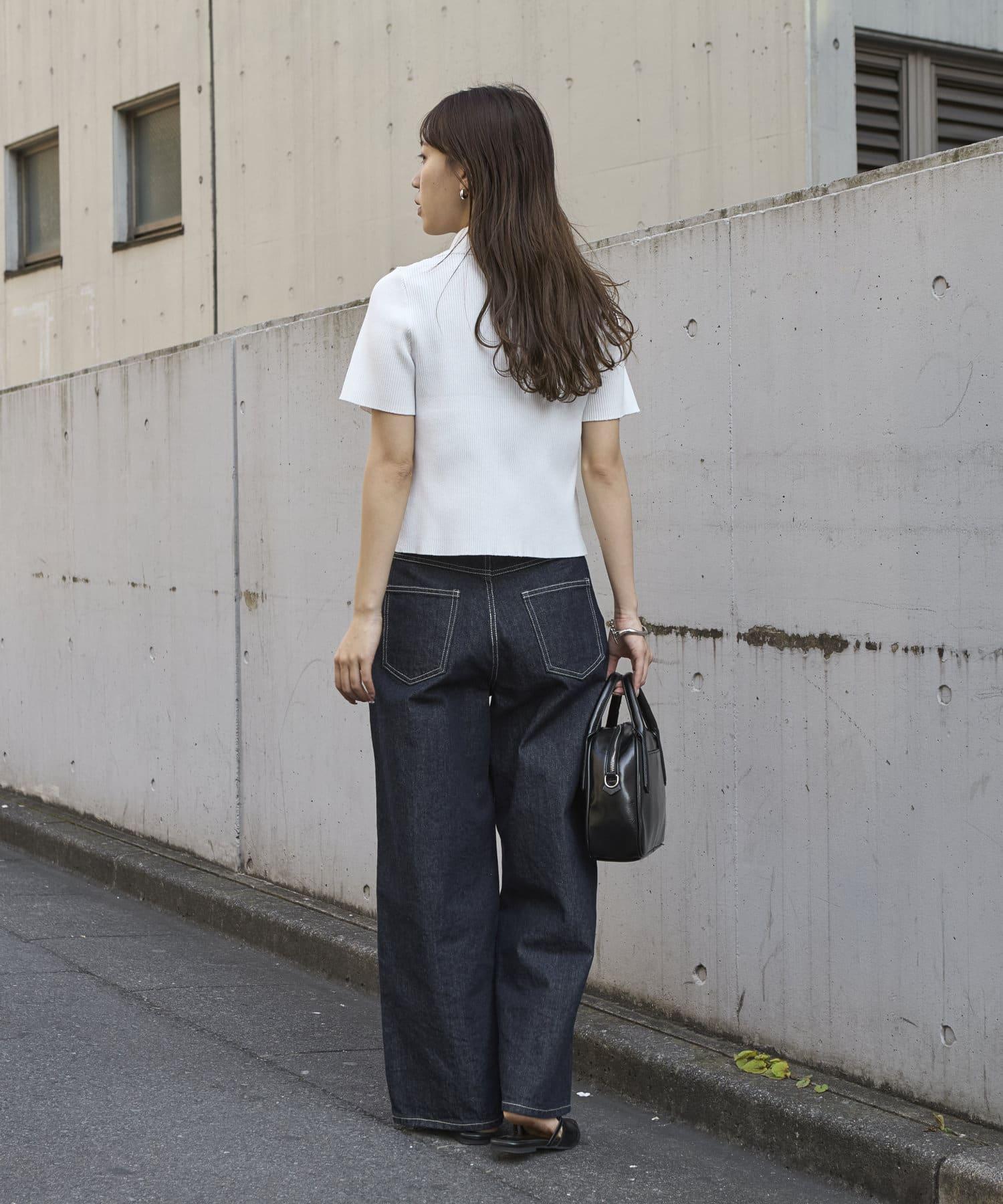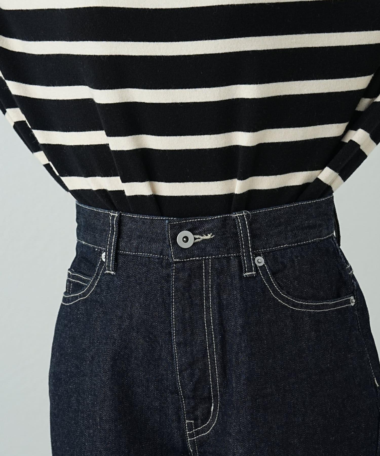 高腰設計營造出時尚的廓形,腰部線條簡潔,腿部線條優美。