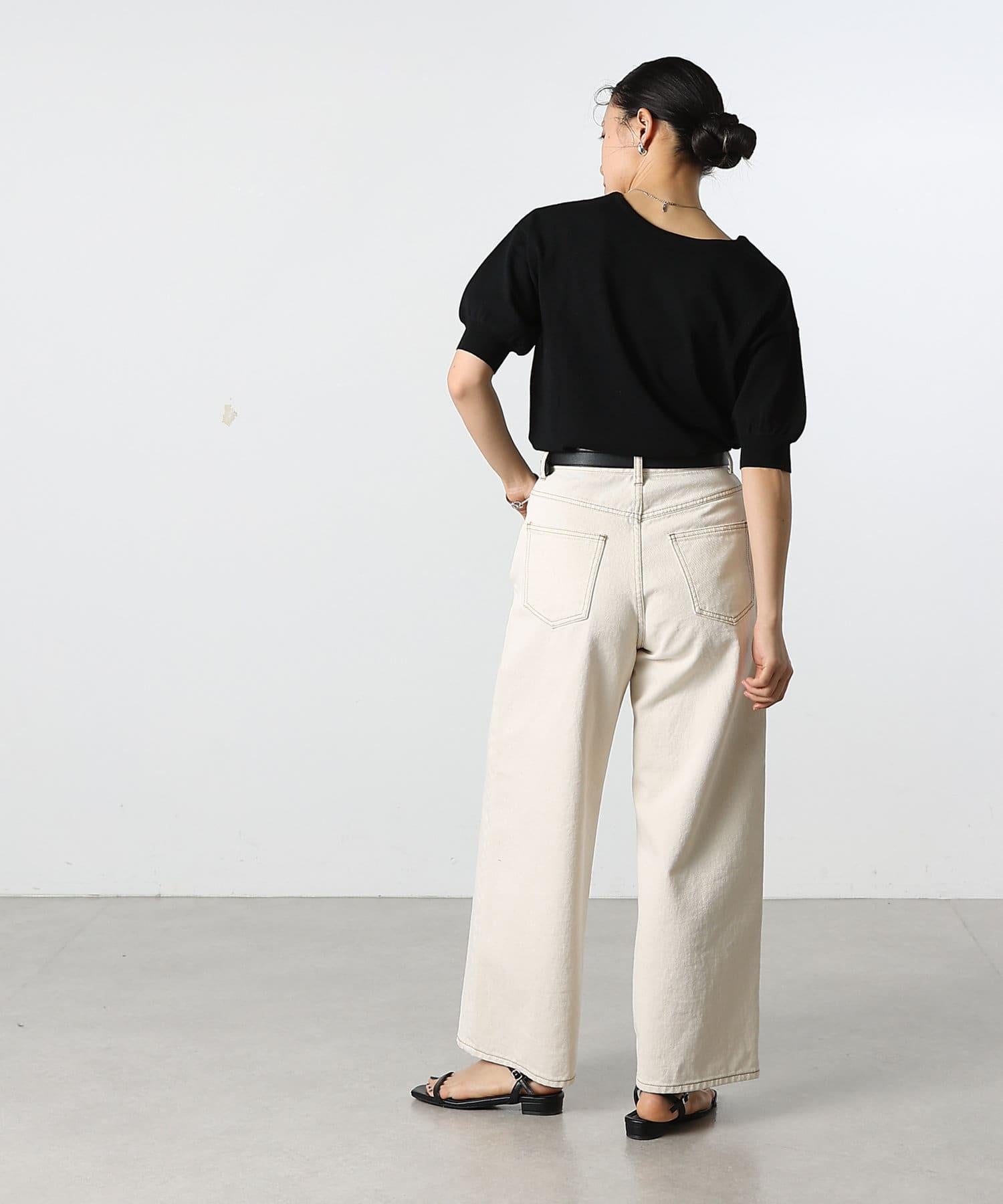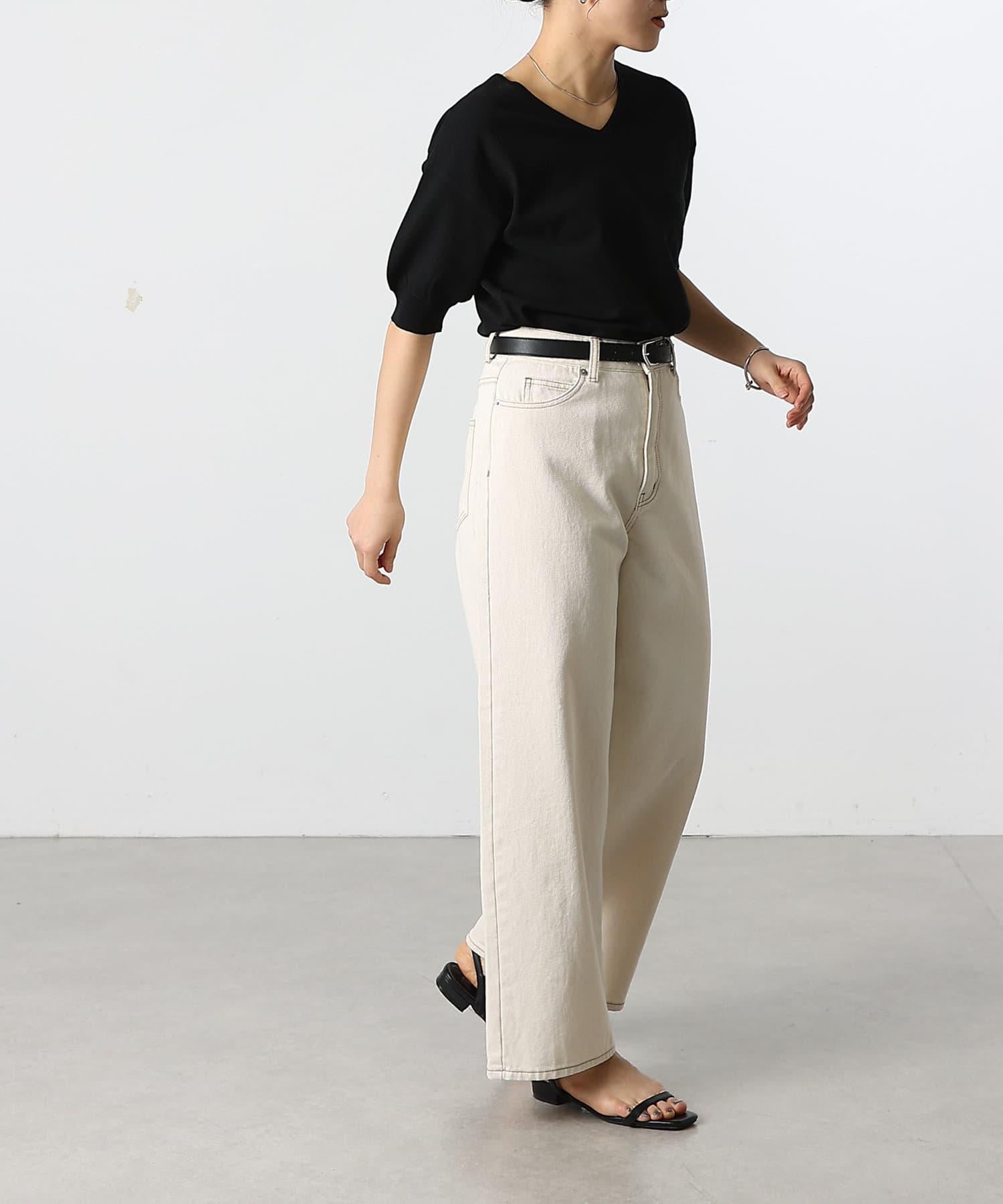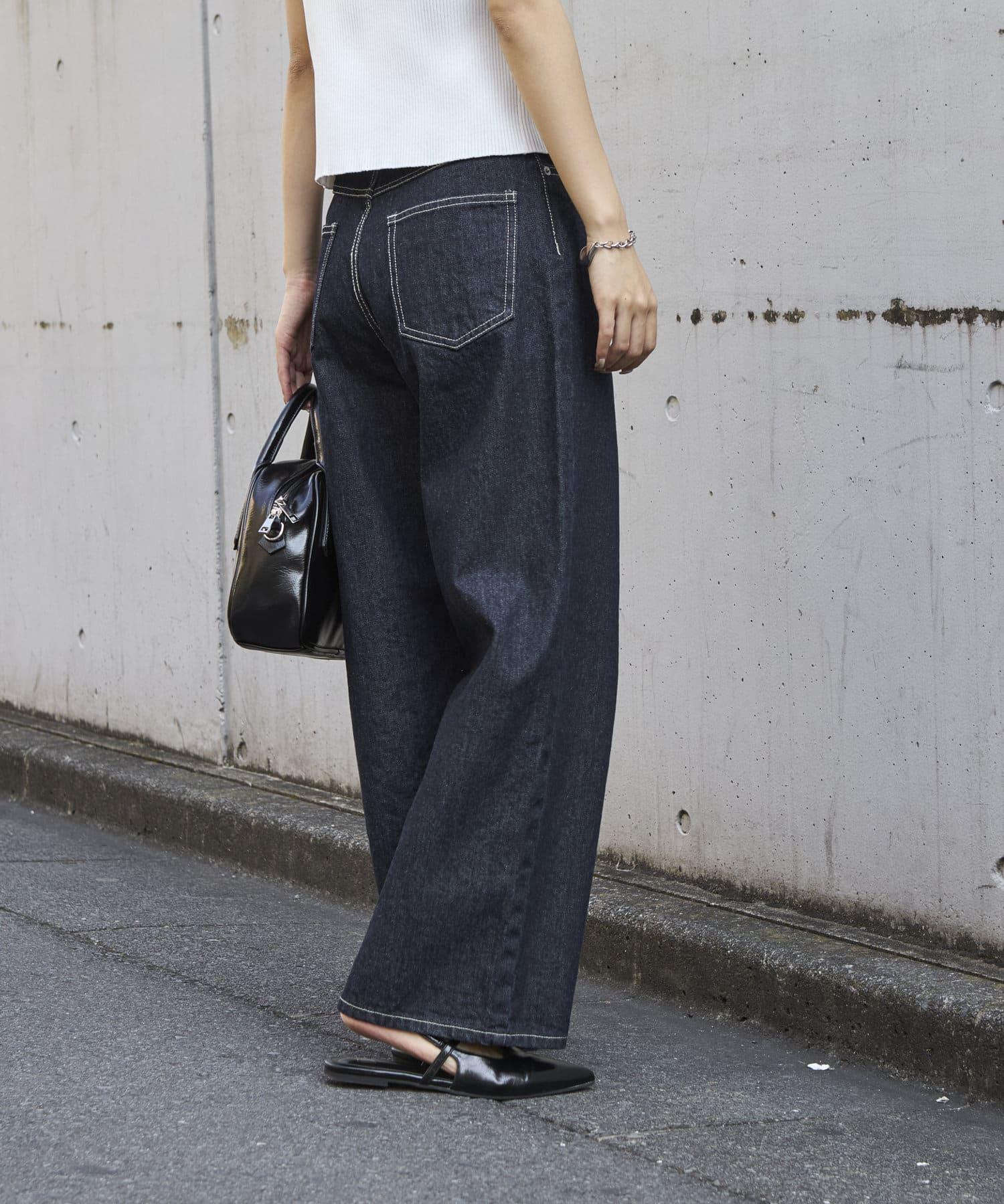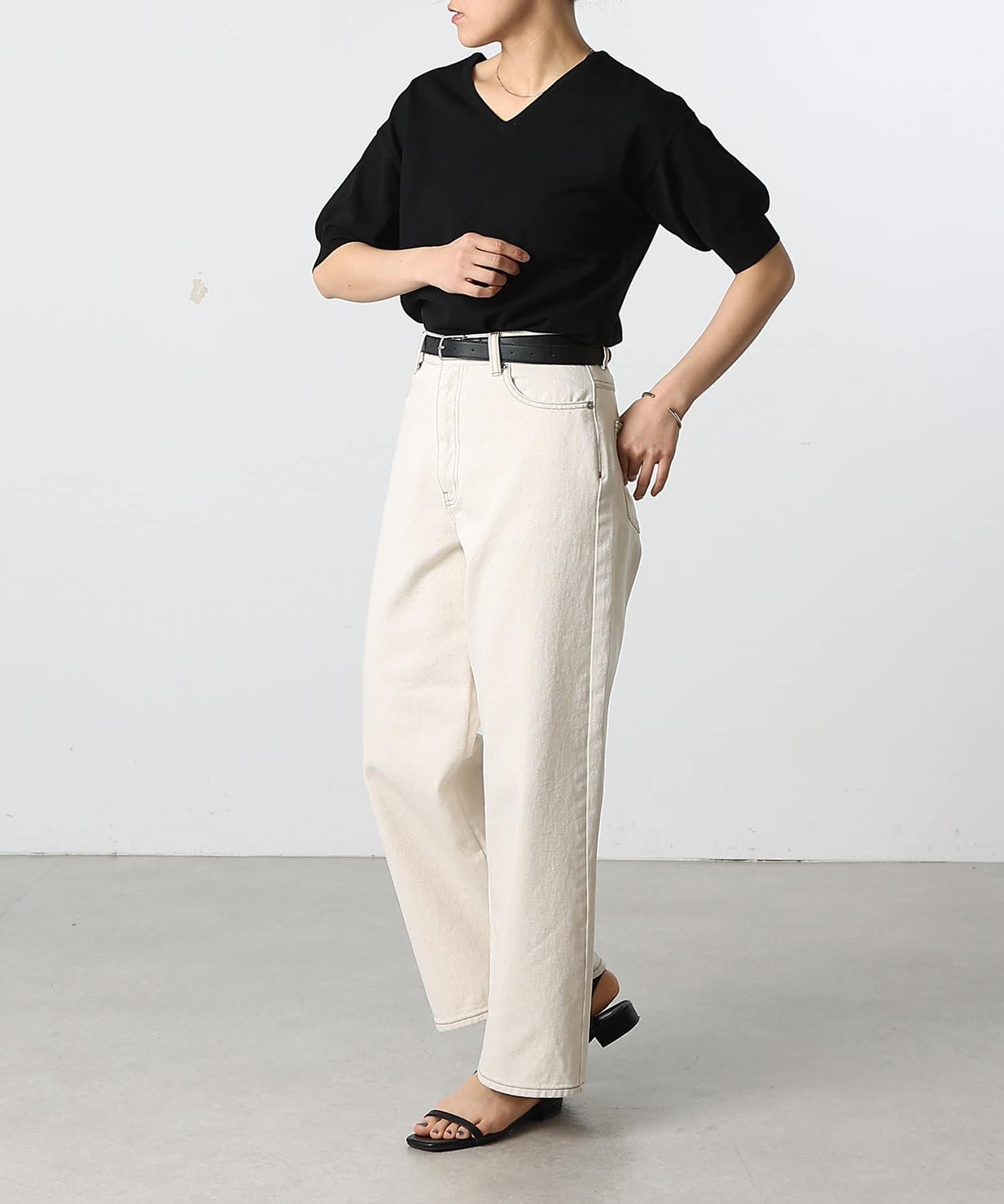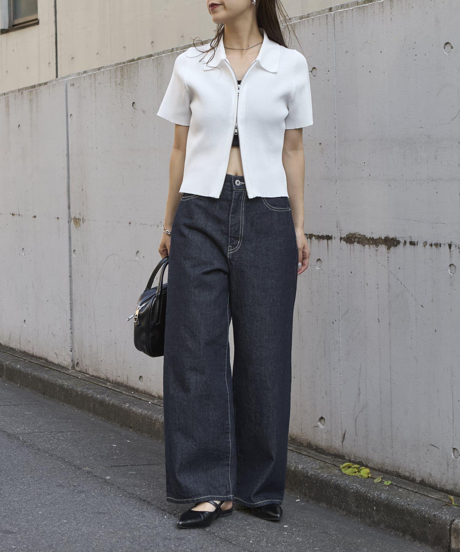 高腰設計營造出時尚的廓形,腰部線條簡潔,腿部線條優美。