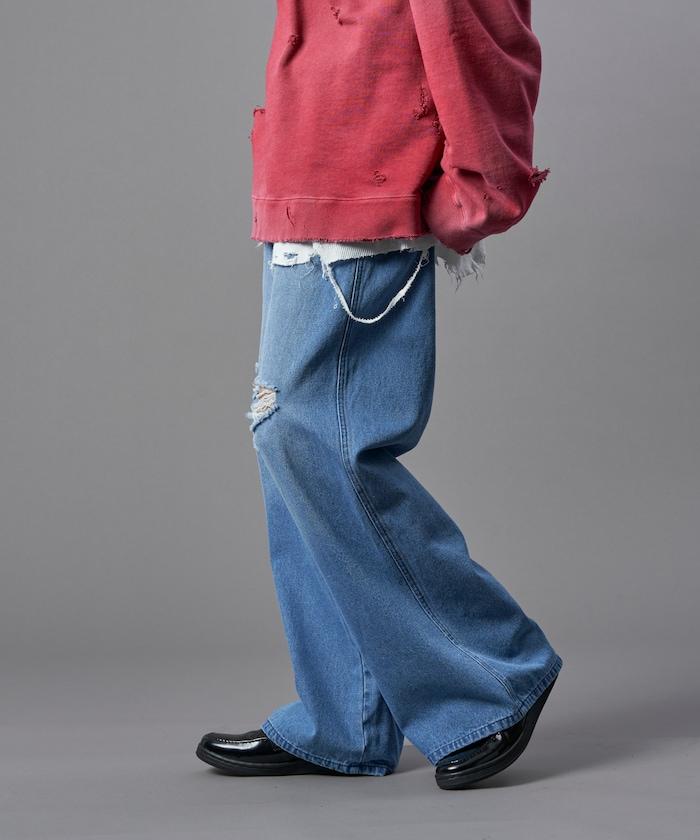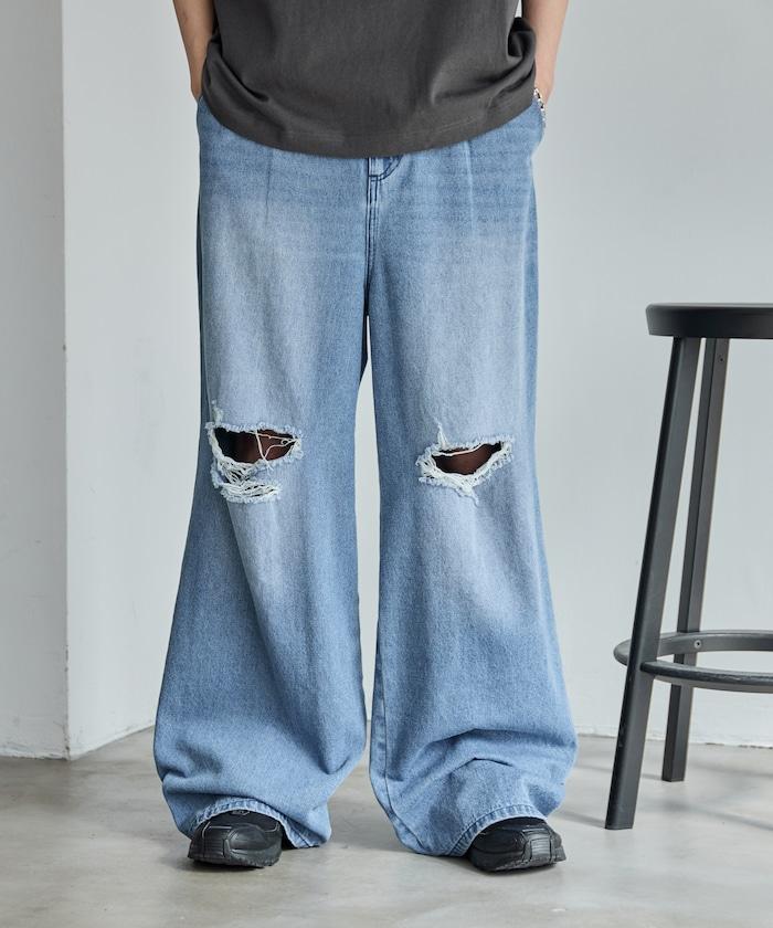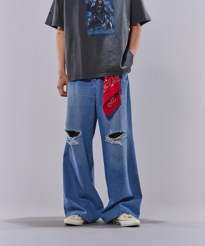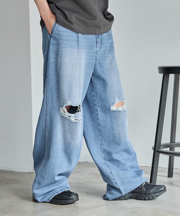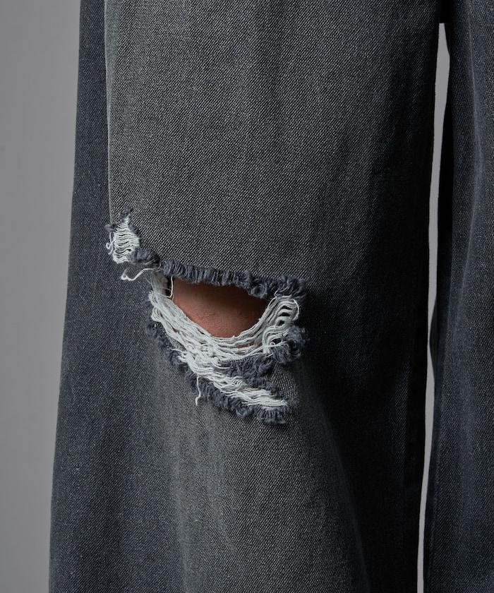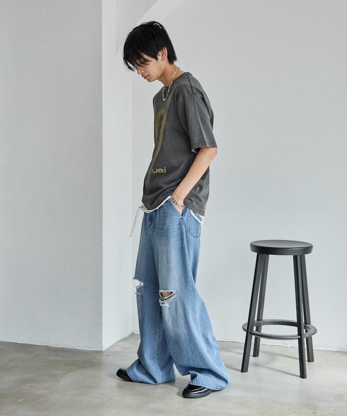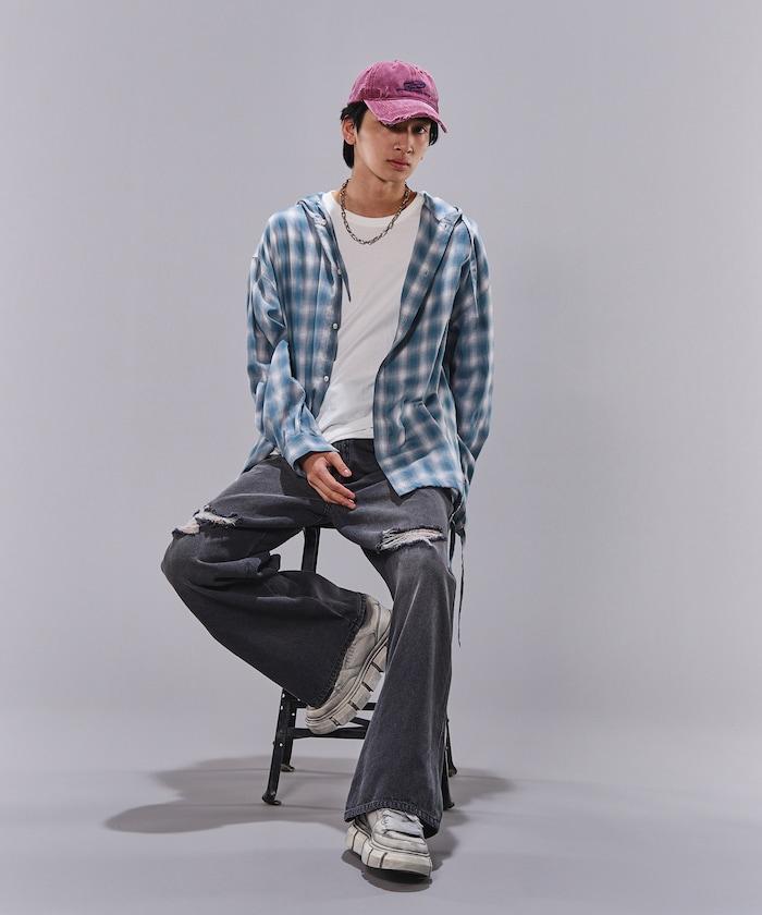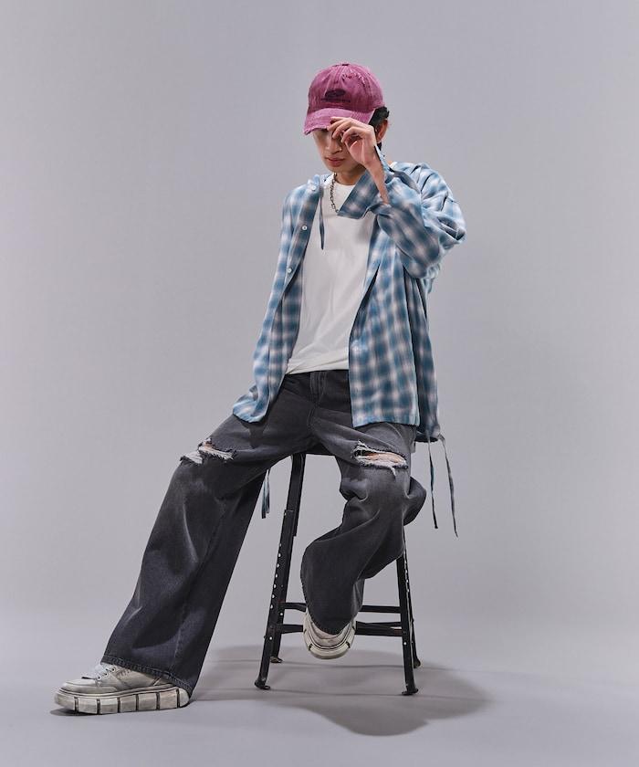 寬鬆的剪裁,膝蓋部位的破損處理更顯點睛之筆。