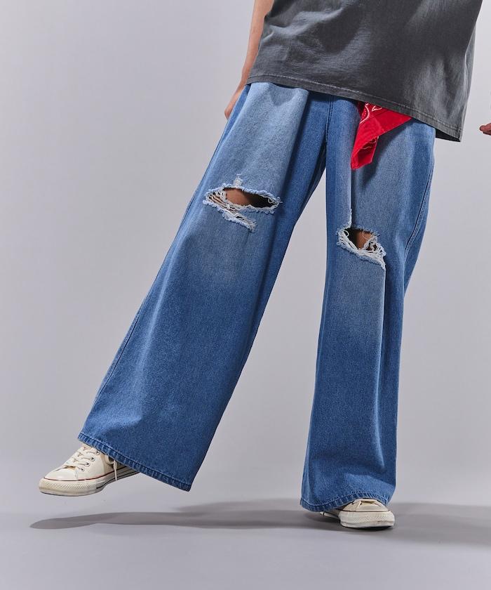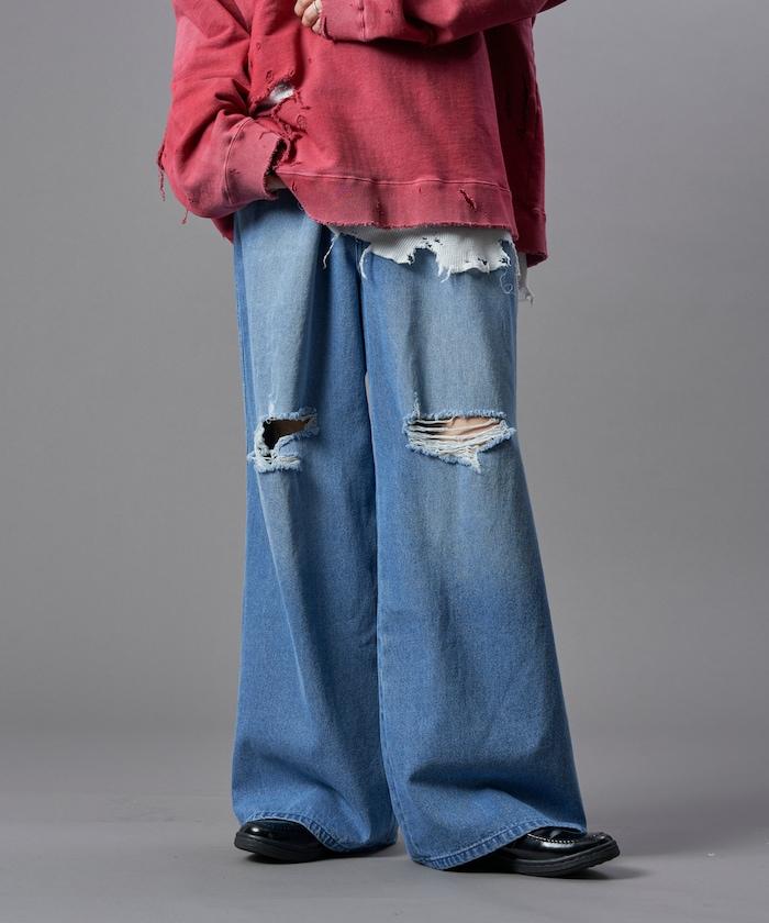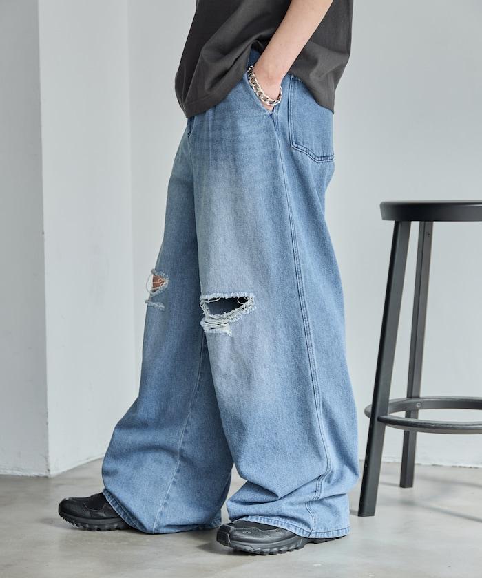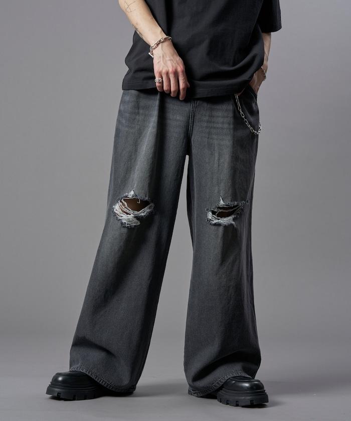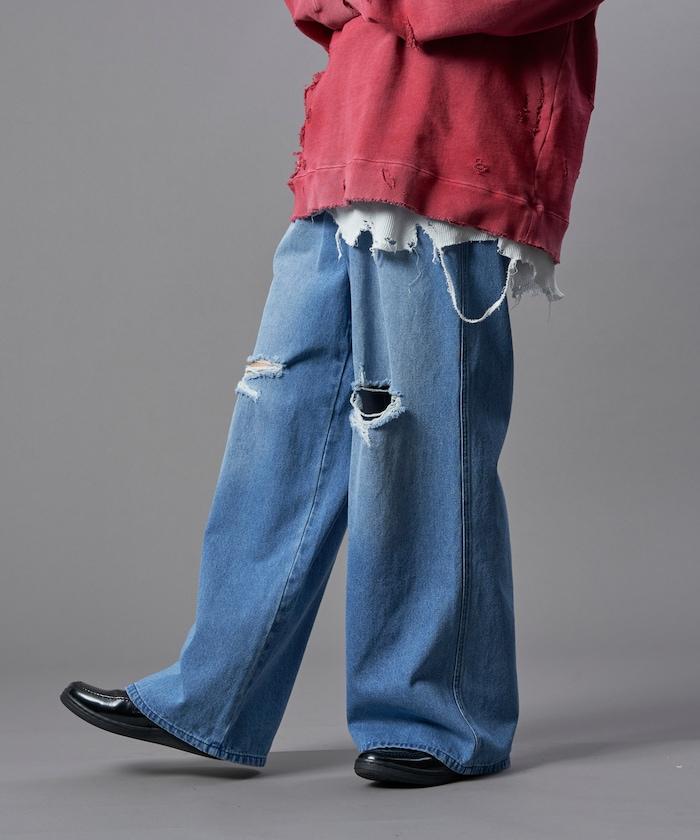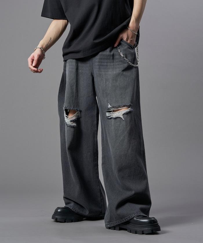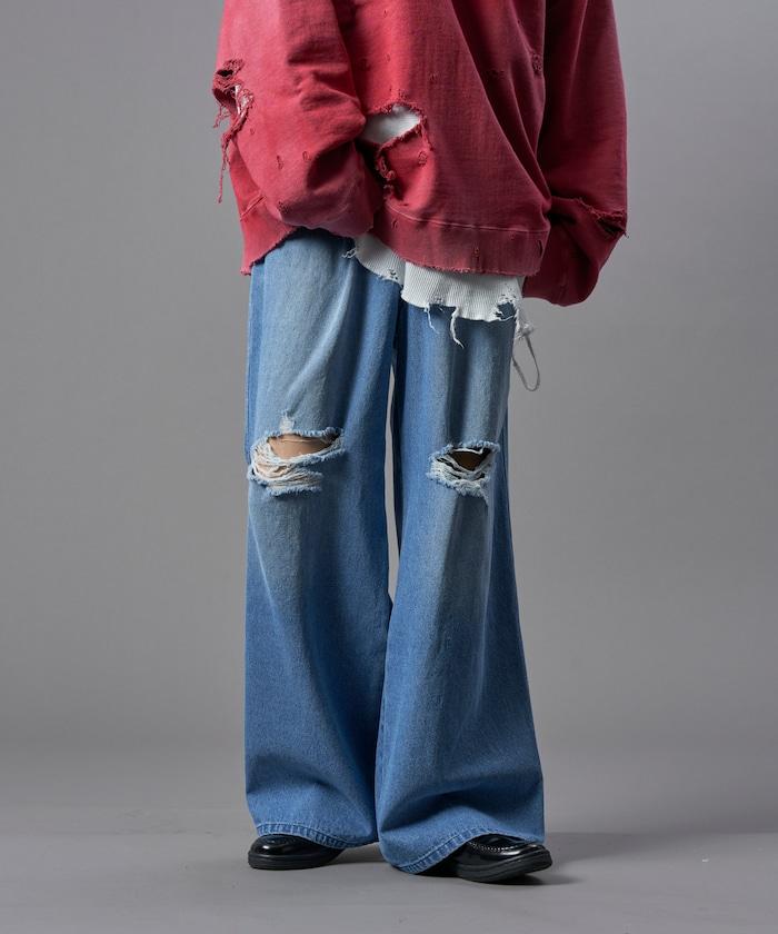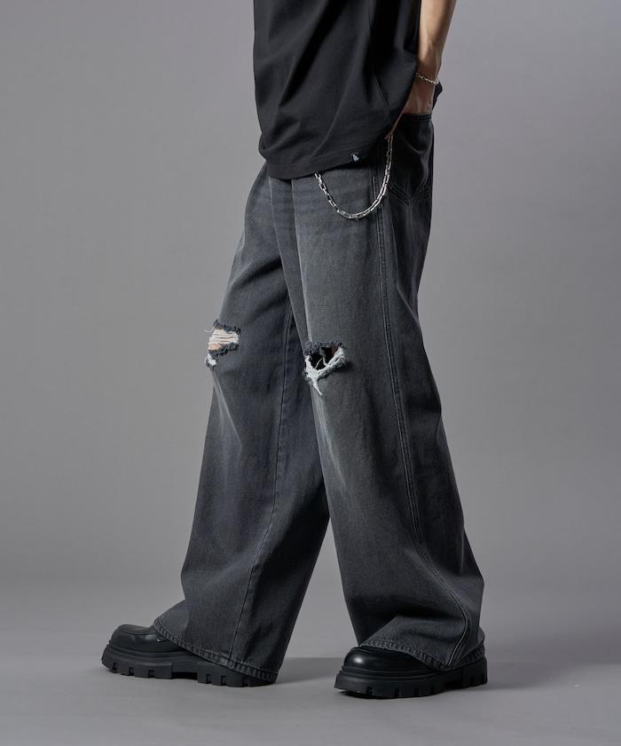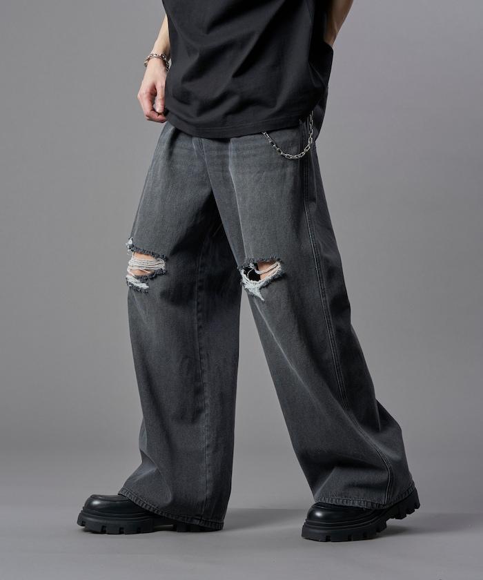 寬鬆的剪裁,膝蓋部位的破損處理更顯點睛之筆。