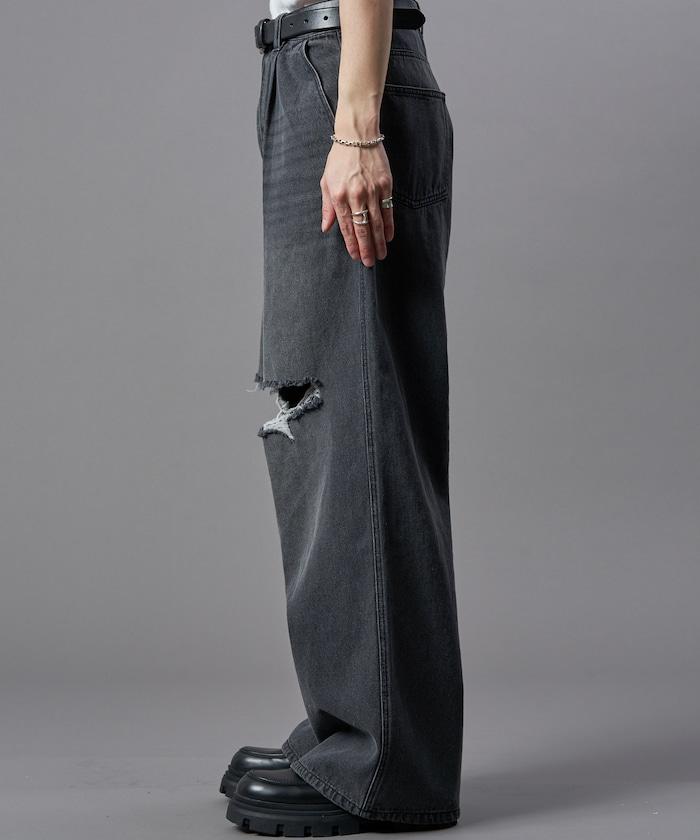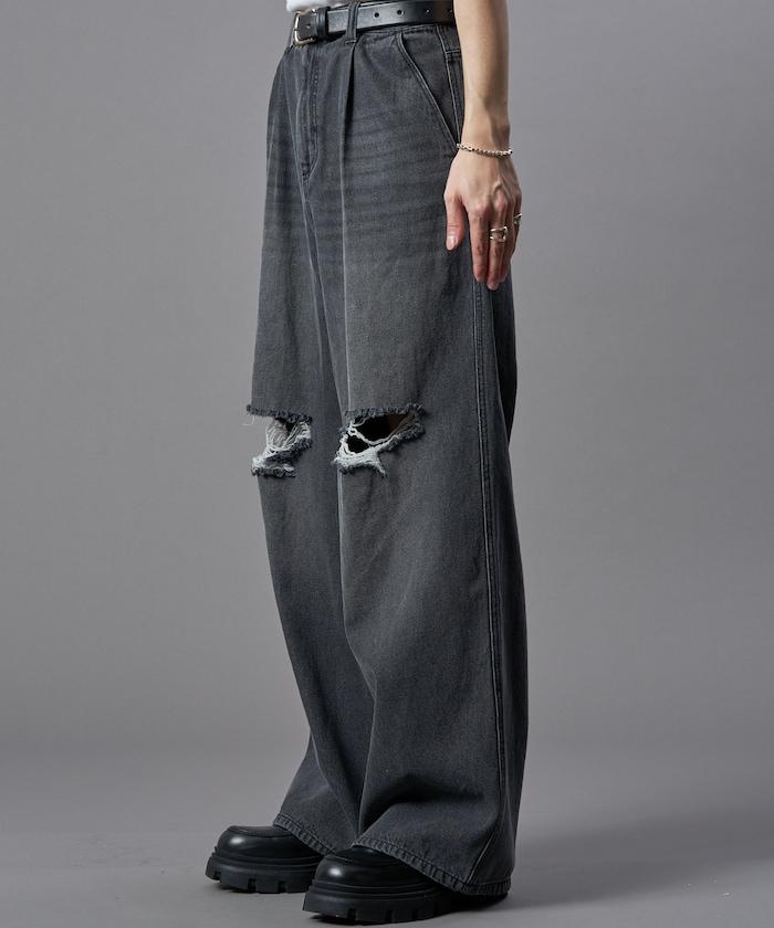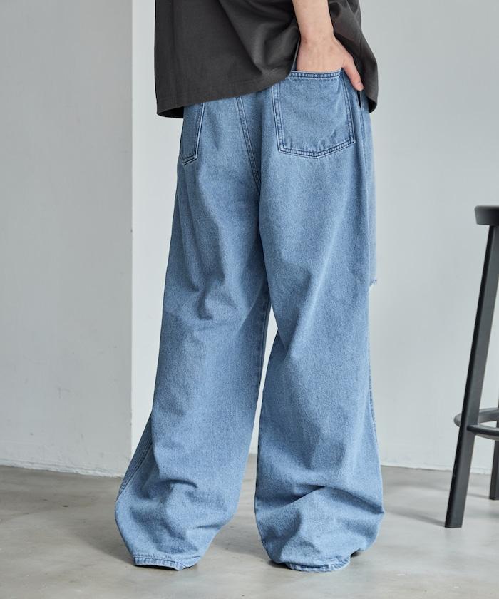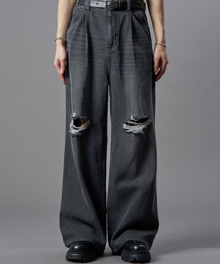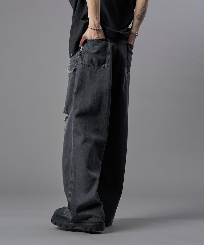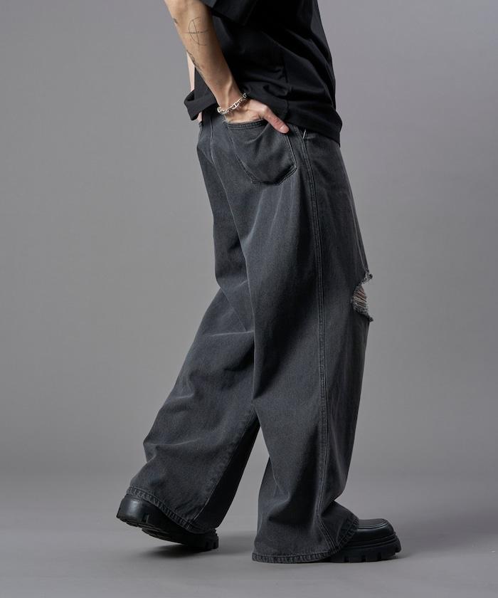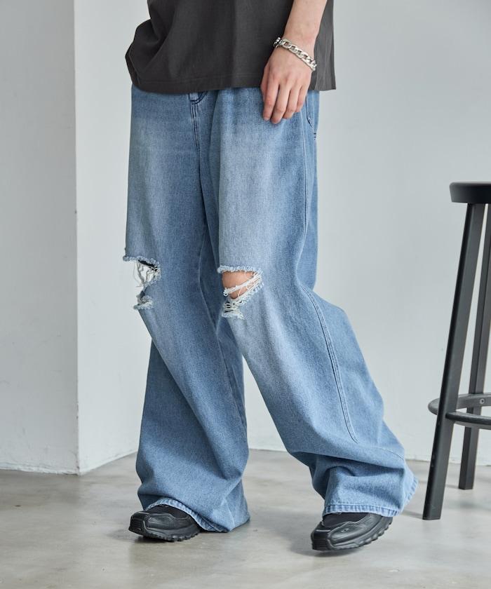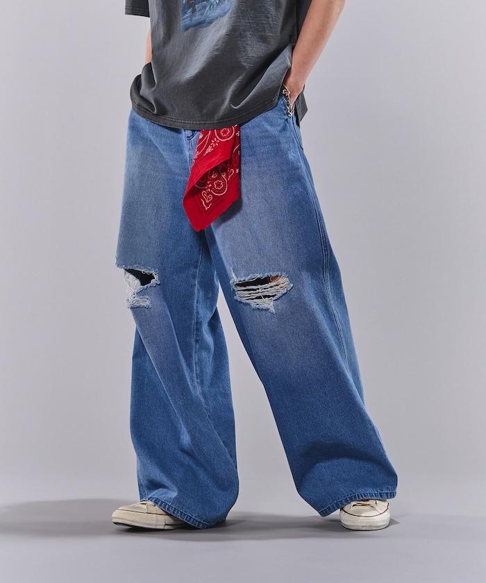 寬鬆的剪裁,膝蓋部位的破損處理更顯點睛之筆。