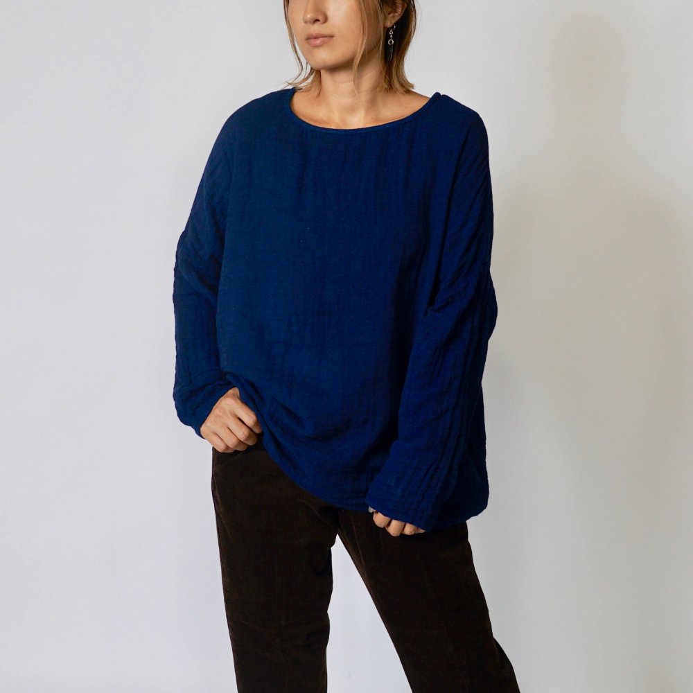 寬鬆紗布圓領T恤/海軍藍色/知多棉 3層紗布