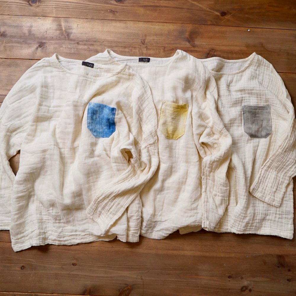 寬鬆紗布短袖T恤/斑點口袋3色/知多棉 3層紗布
