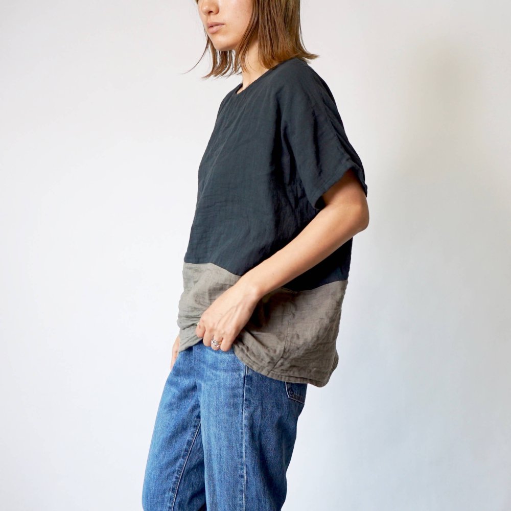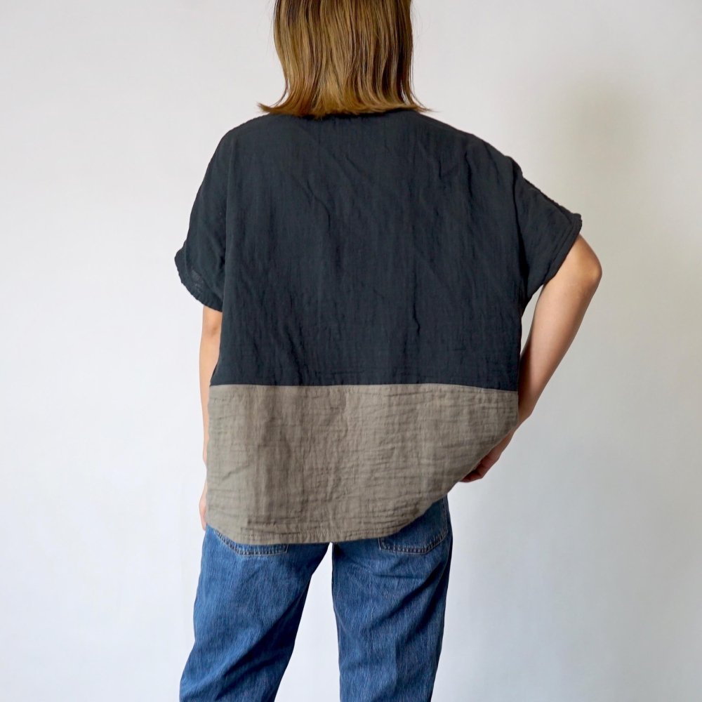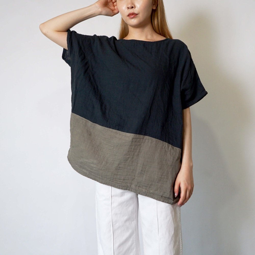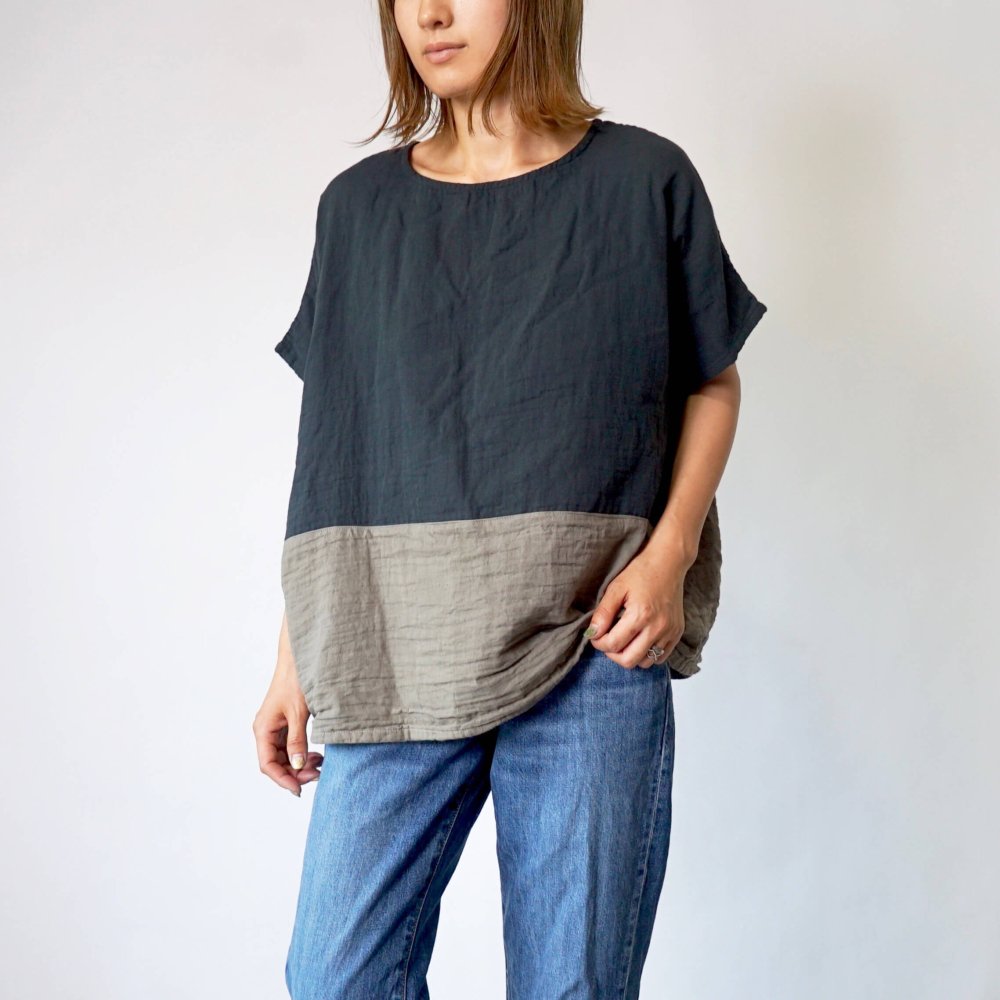 寬鬆紗布T恤/雙色黑/知多棉 雙層紗布