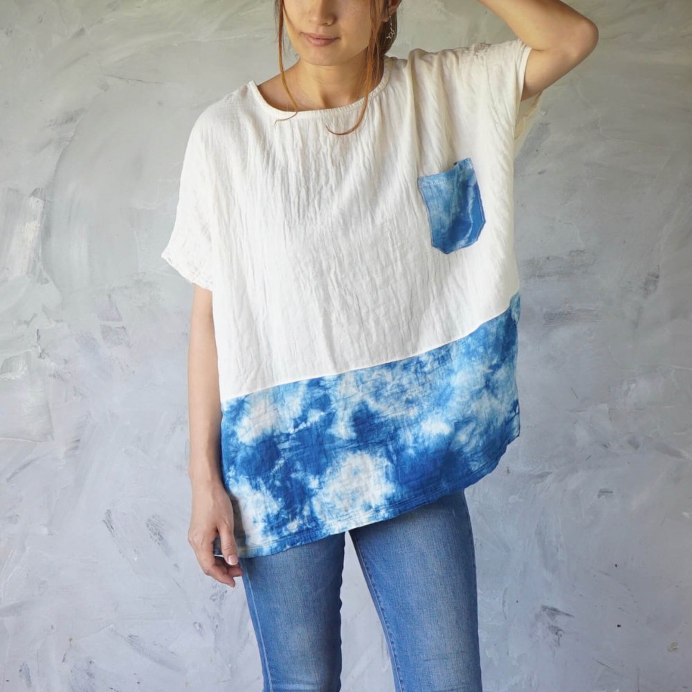 寬鬆紗T恤/雙色斑點靛藍/知多棉 雙層紗