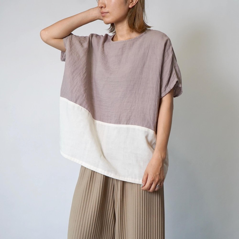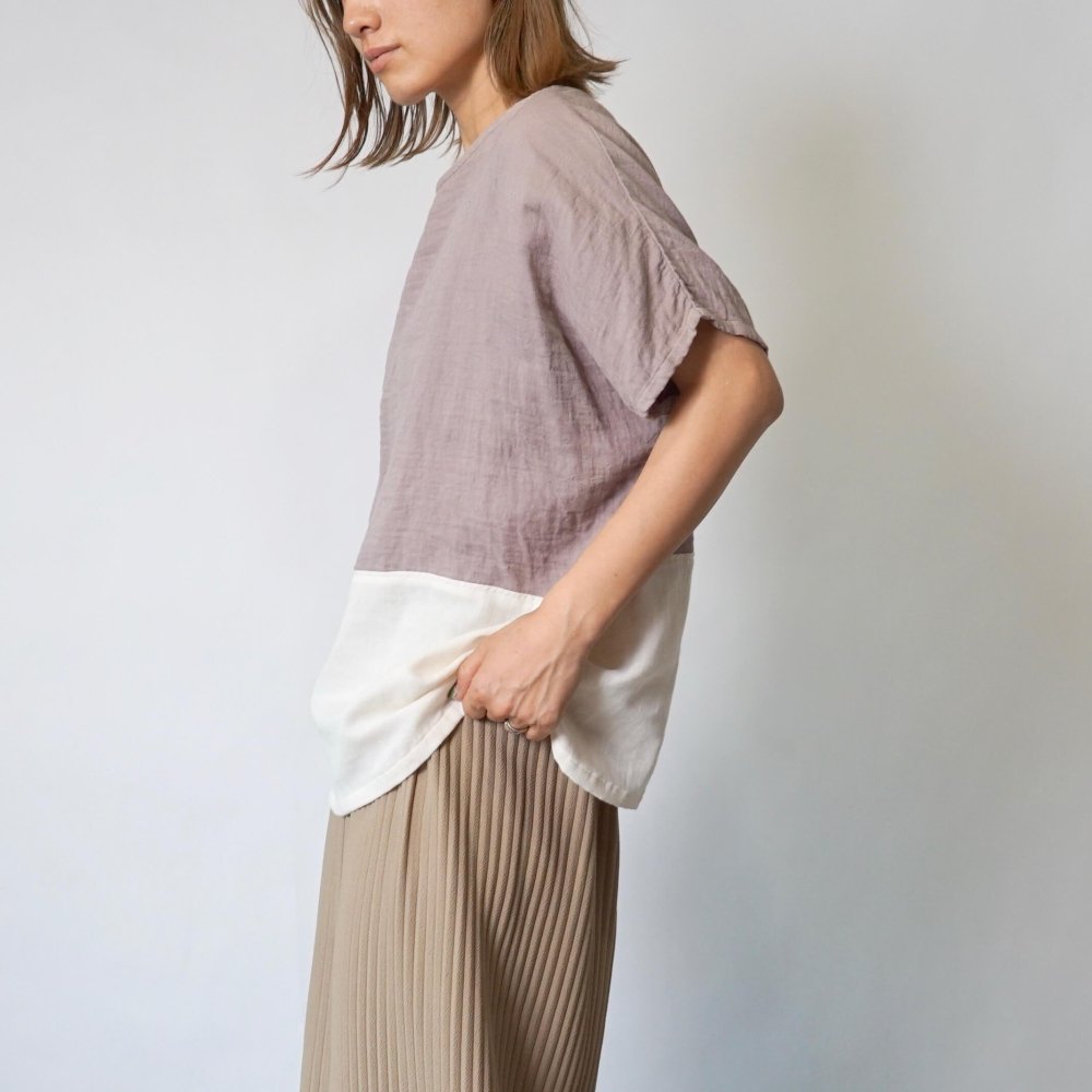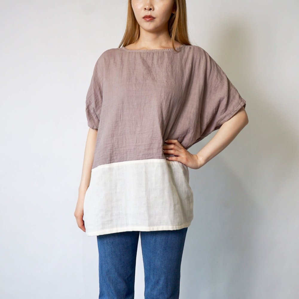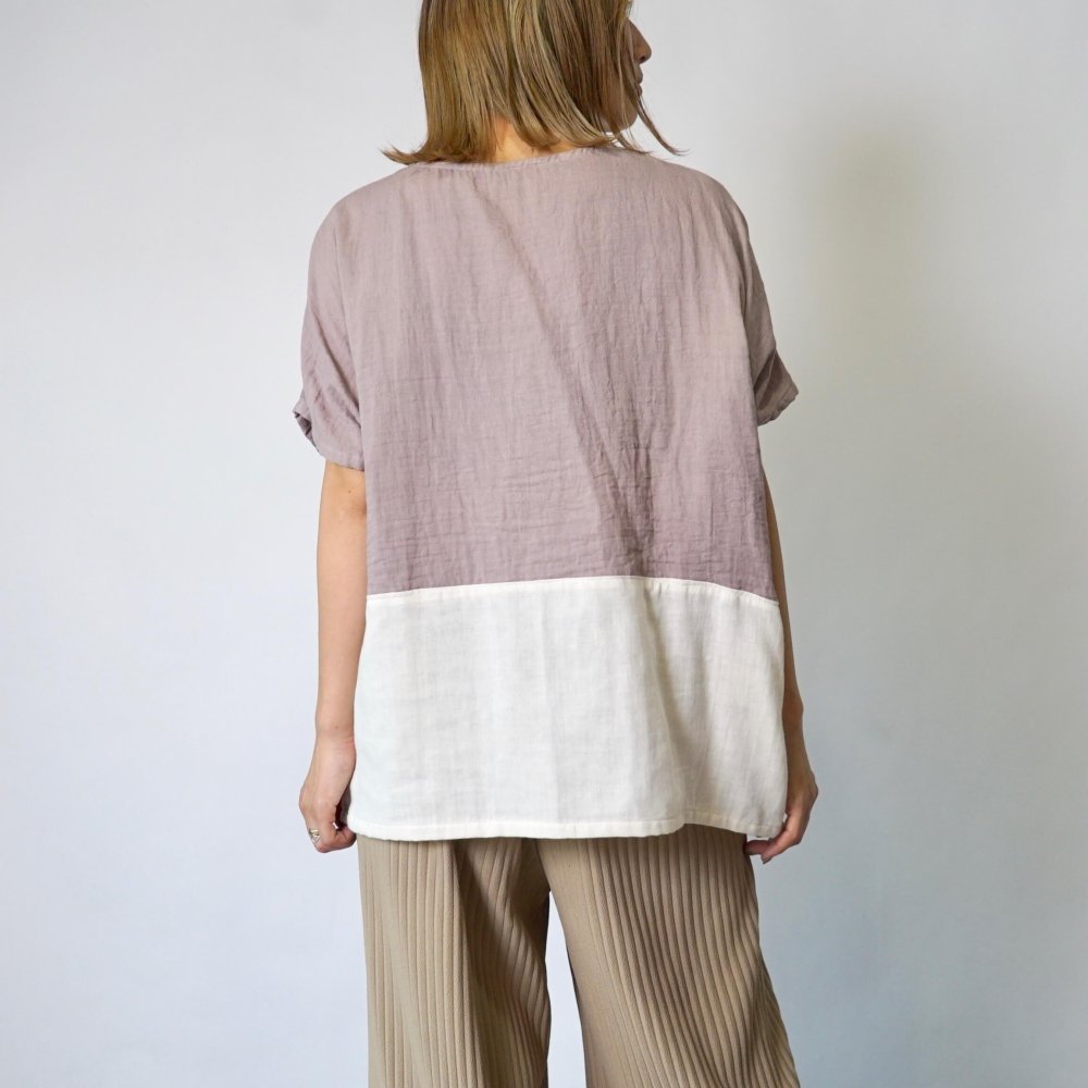 寬鬆紗T恤/雙色粉米色/知多棉 雙層紗