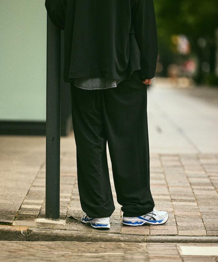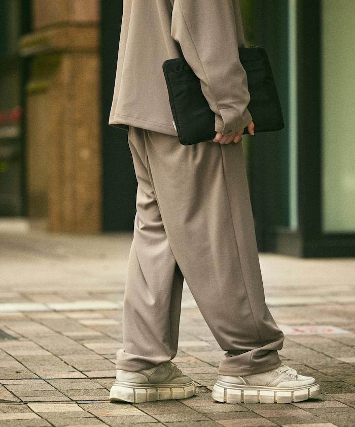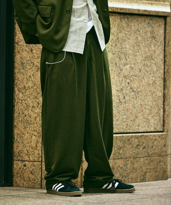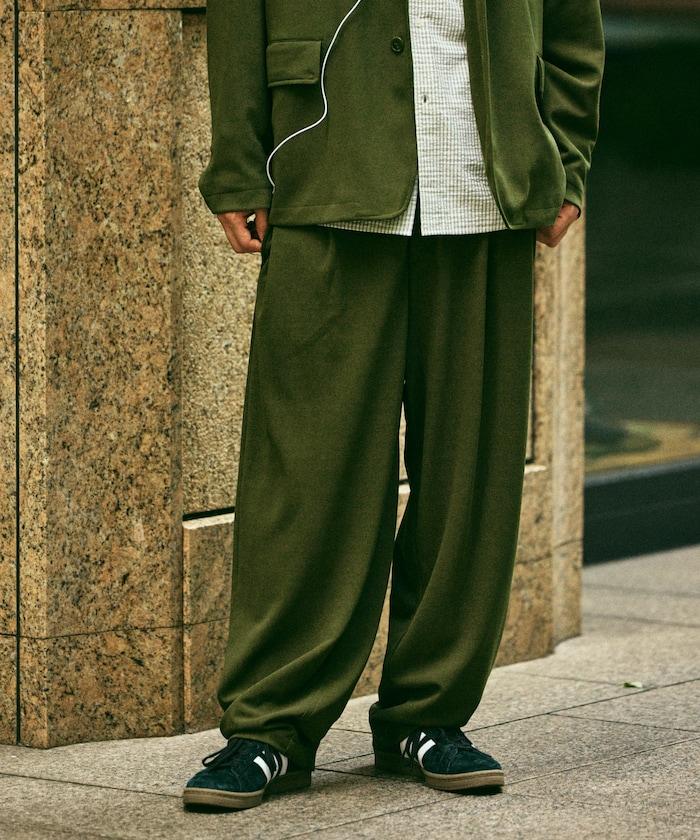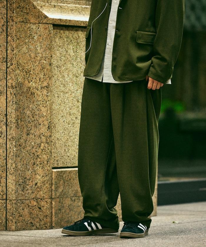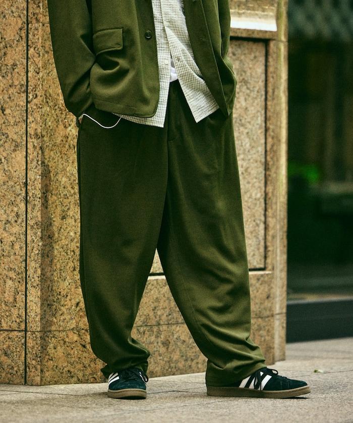 褲子是寬大的收腰簡便長褲--均衡的廓形不僅適合搭配套裝穿著,也適合單獨穿著。