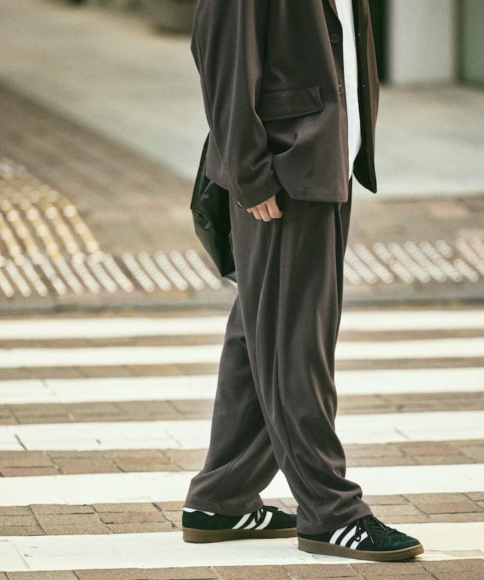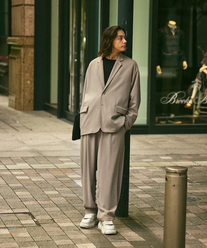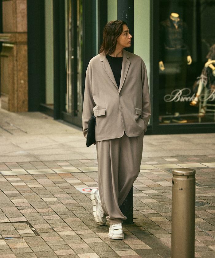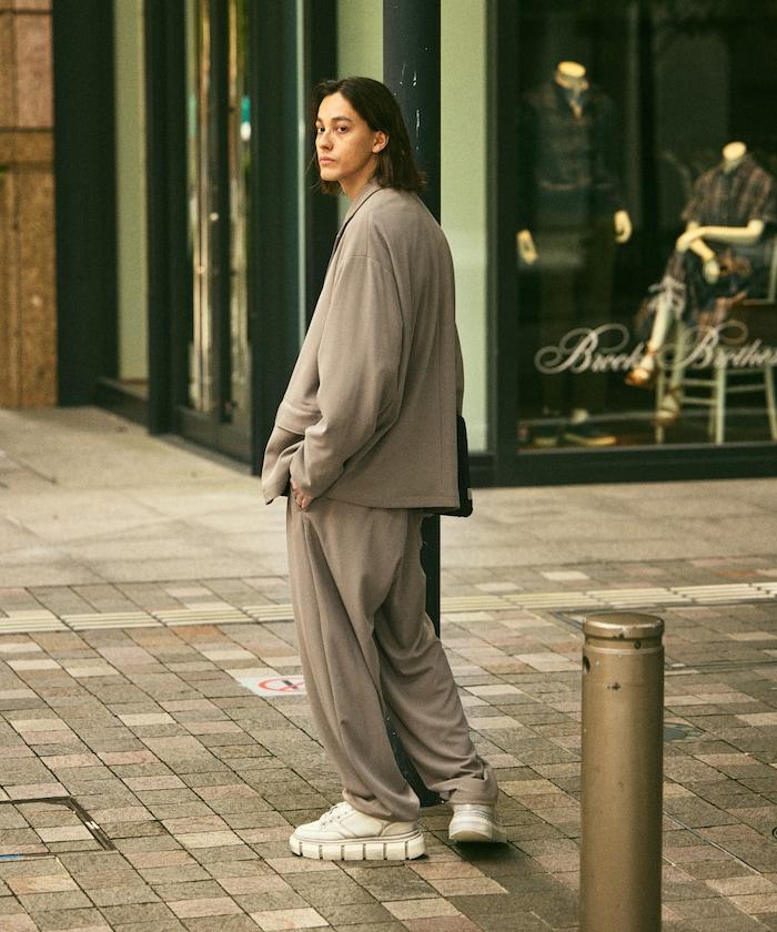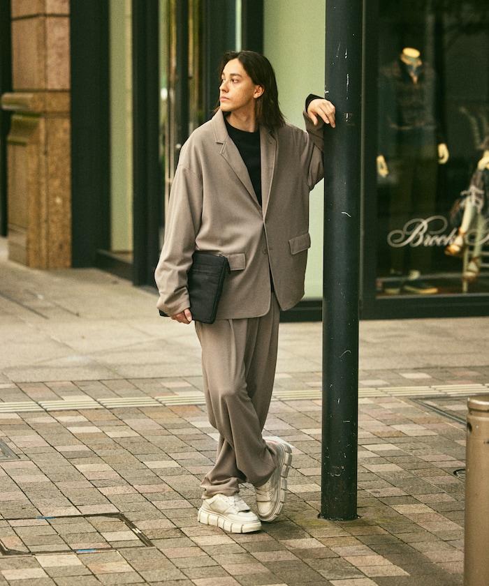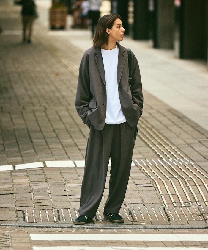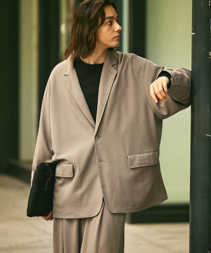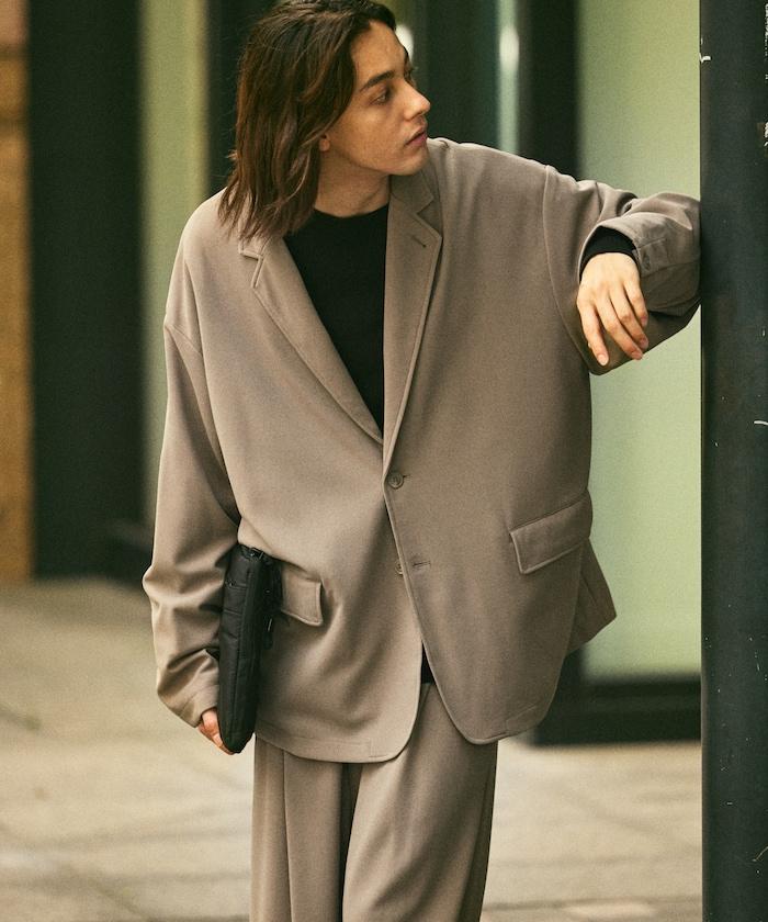 這款套裝是經典男裝單品的升級版,採用了寬鬆的廓形和材質感。