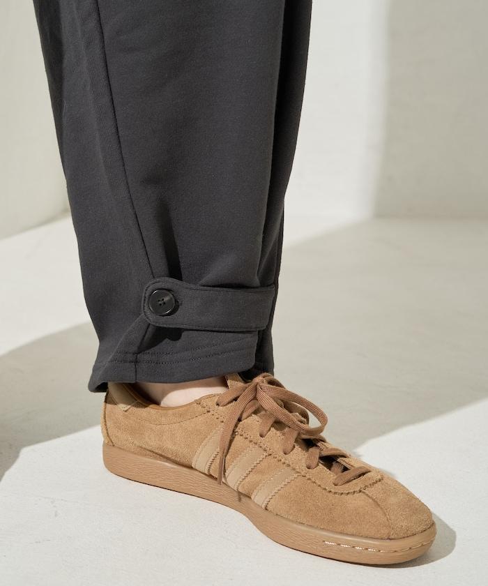 下襬處的紐扣可以擠壓腳踝,營造出利落的輪廓。