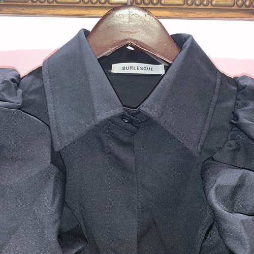 寬鬆長袖襯衫 黑色 [特賣] (CT5810BK)