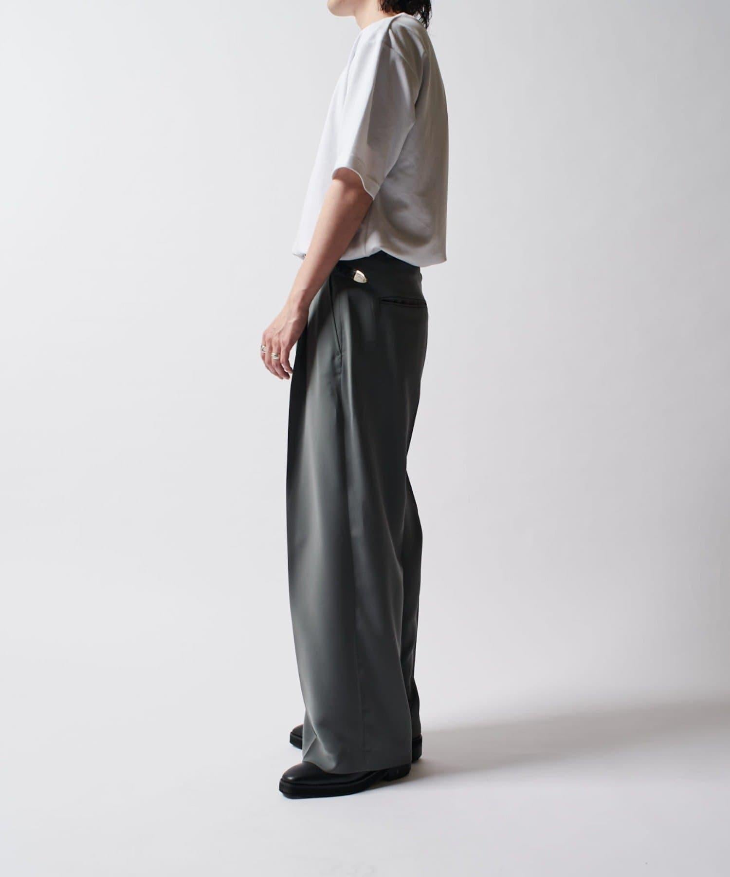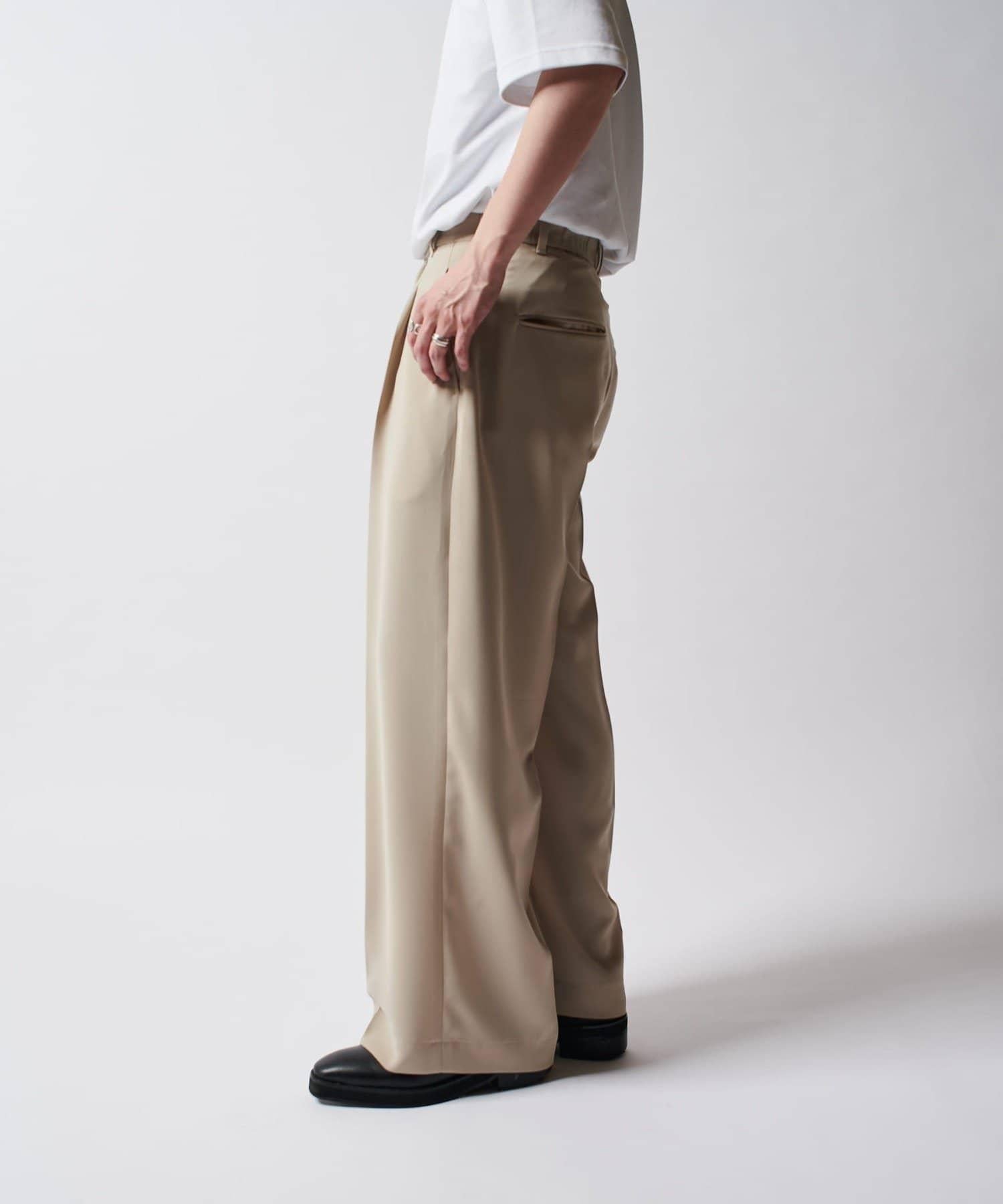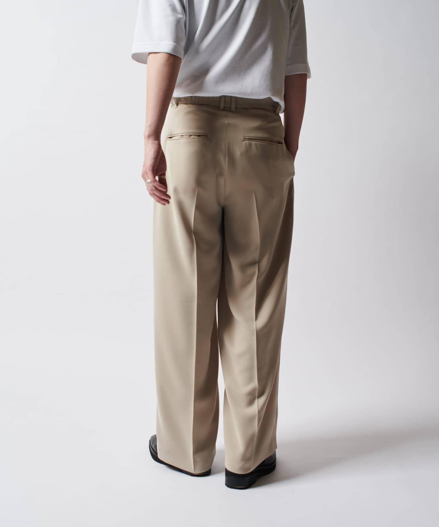 所使用的面料具有表面感,使這款長褲具有明顯的奢華感。