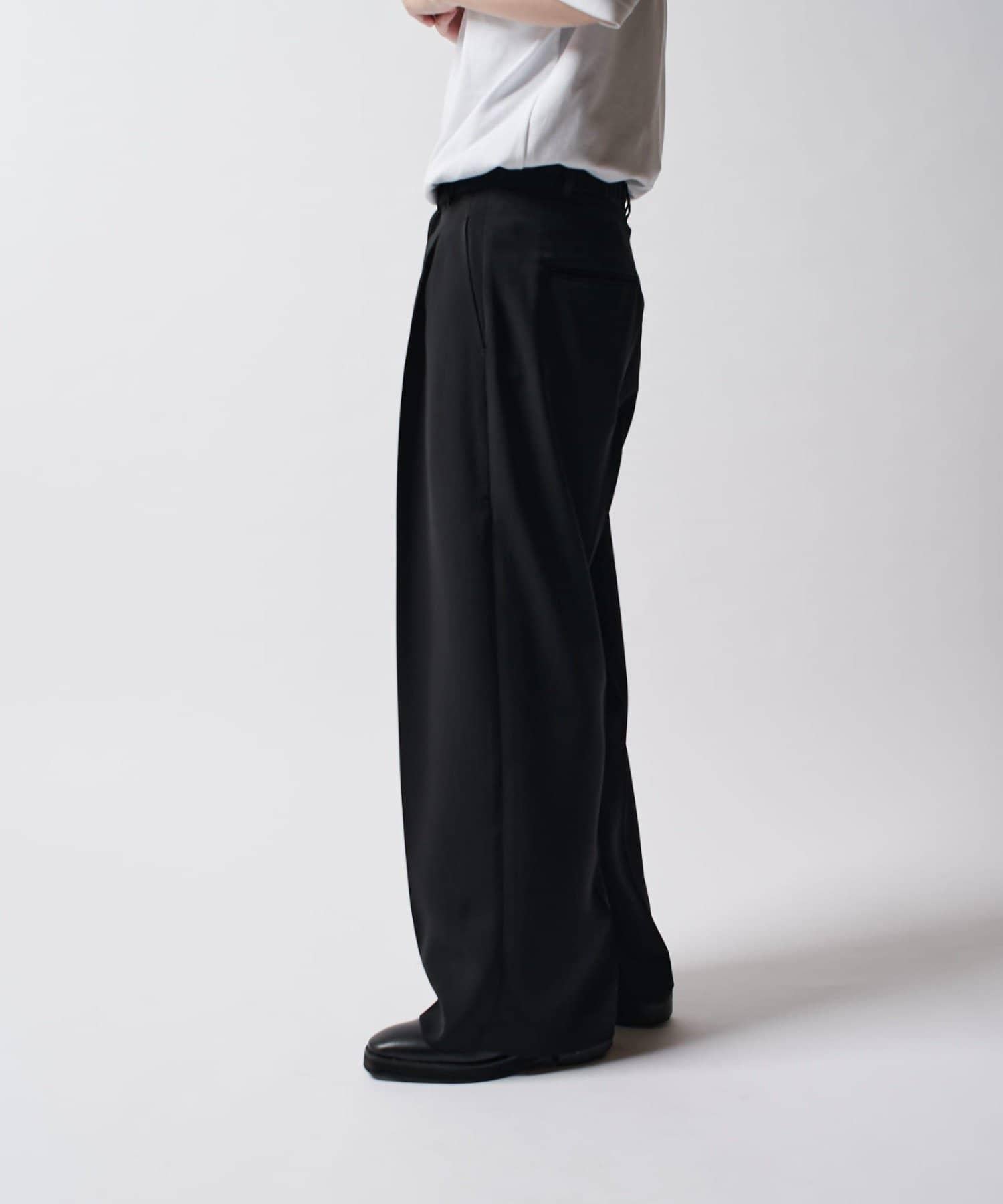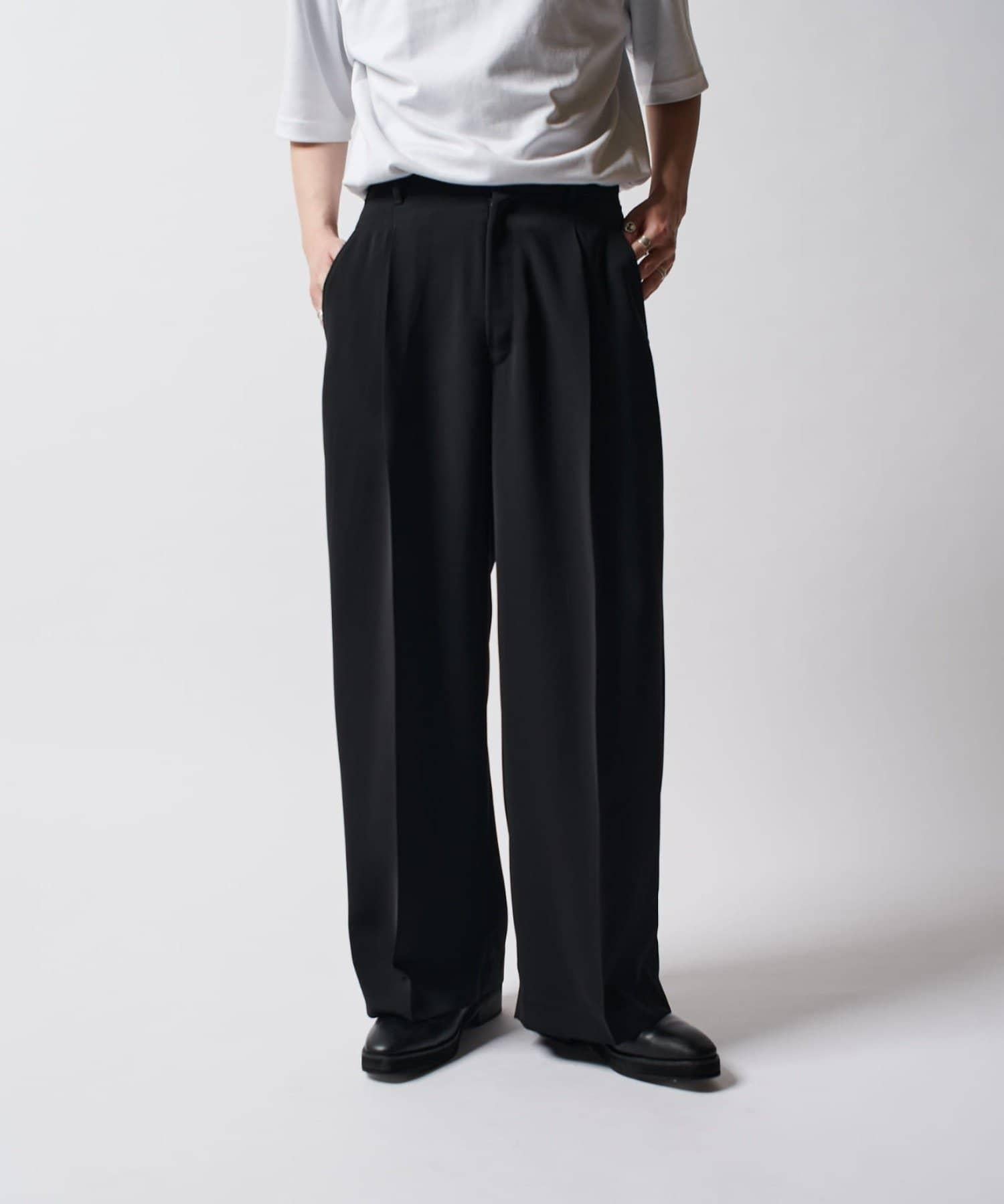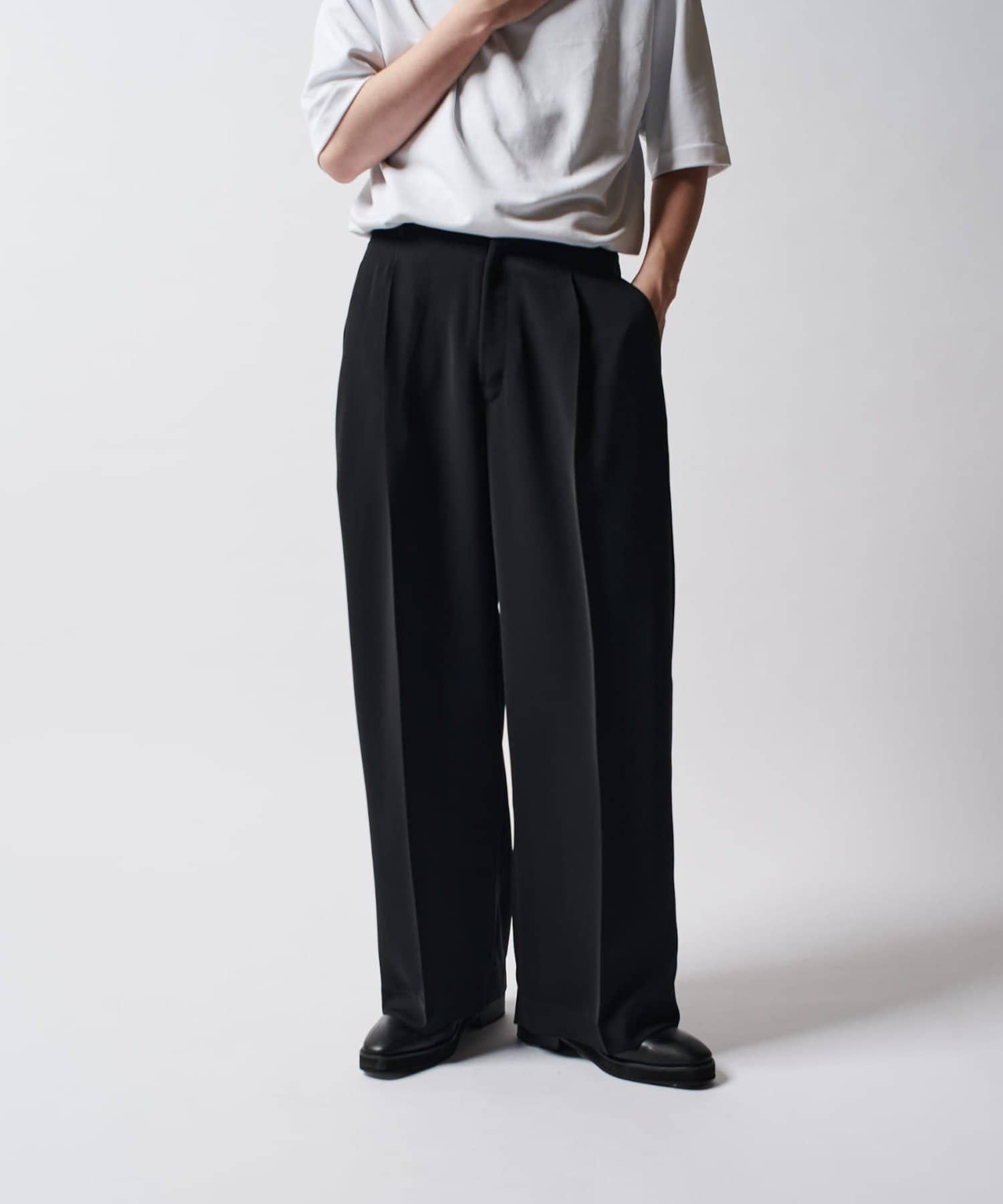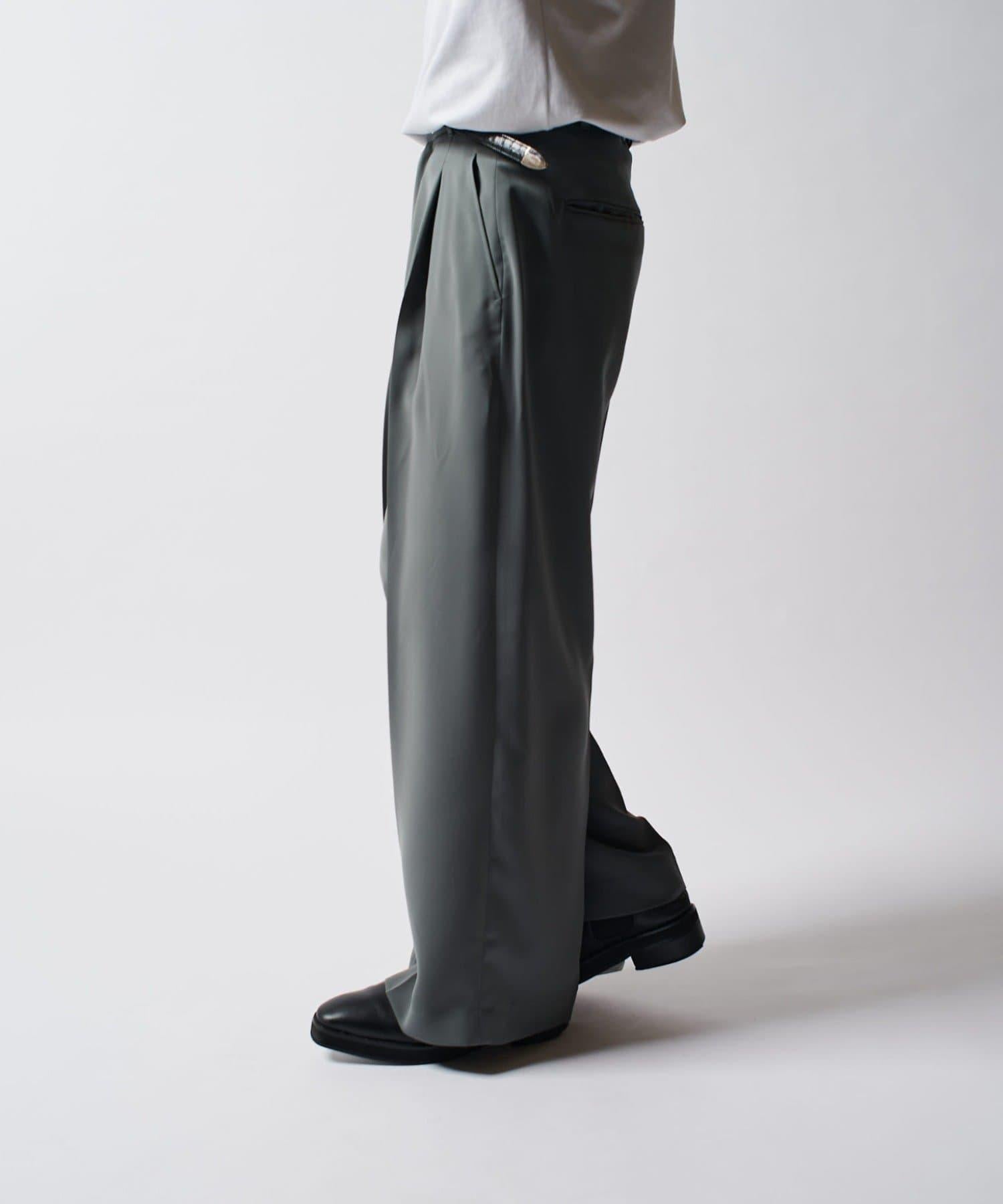 所使用的面料具有表面感,使這款長褲具有明顯的奢華感。