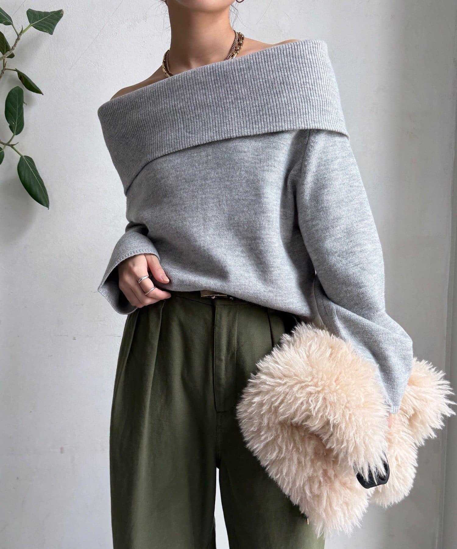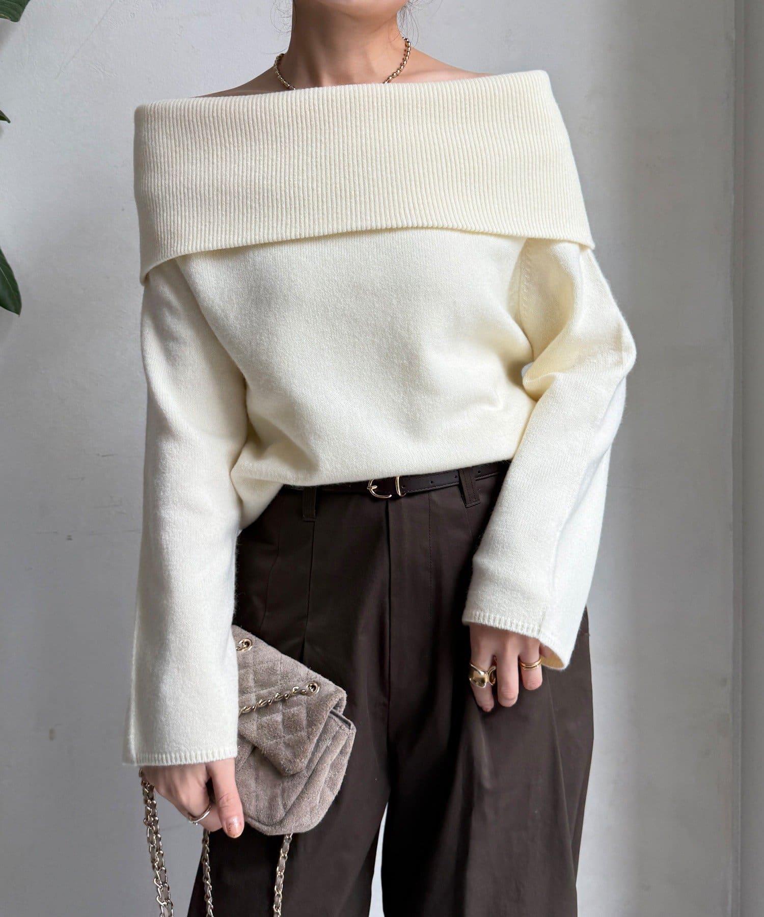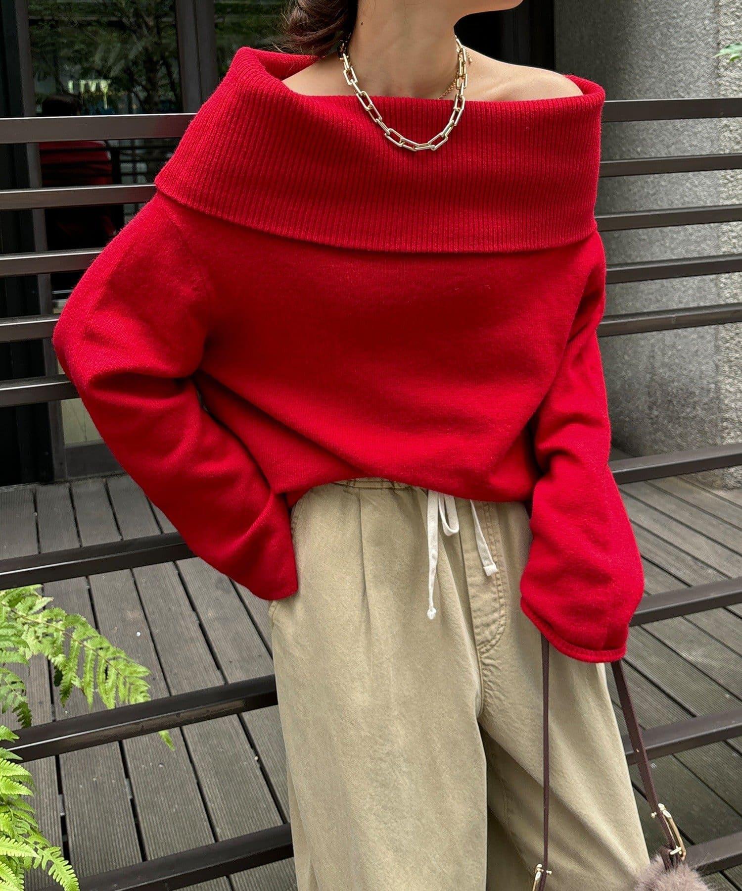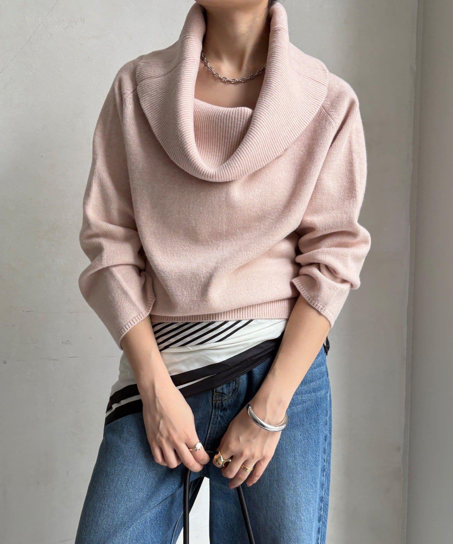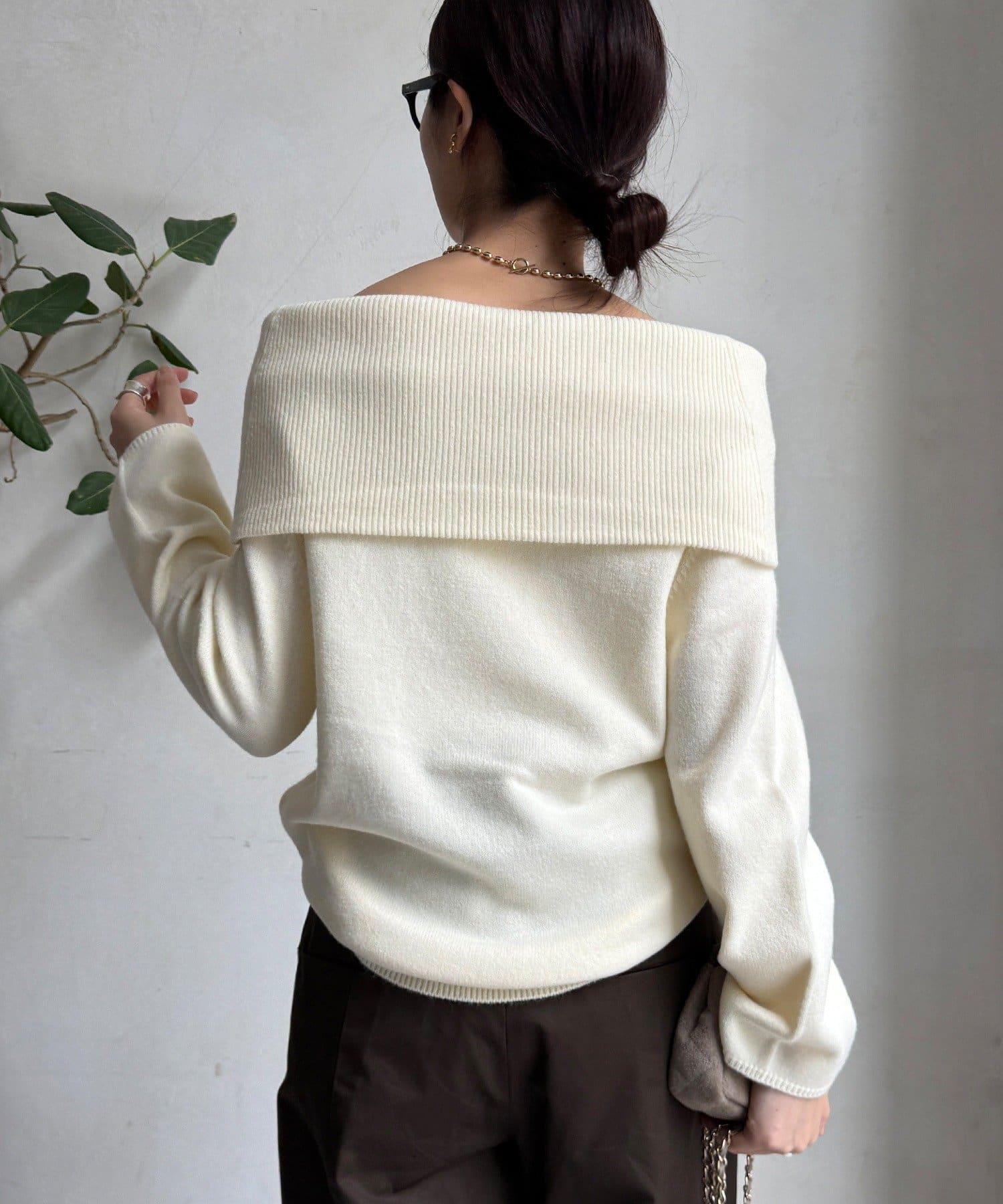領口的穿著方式不同,針織衫給人的感覺也不同。