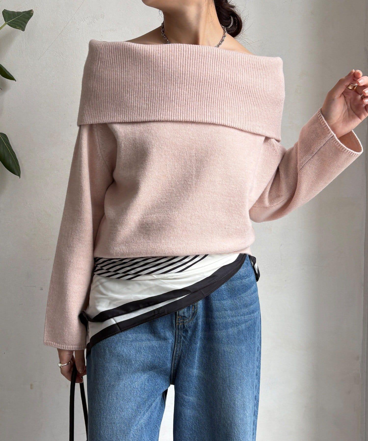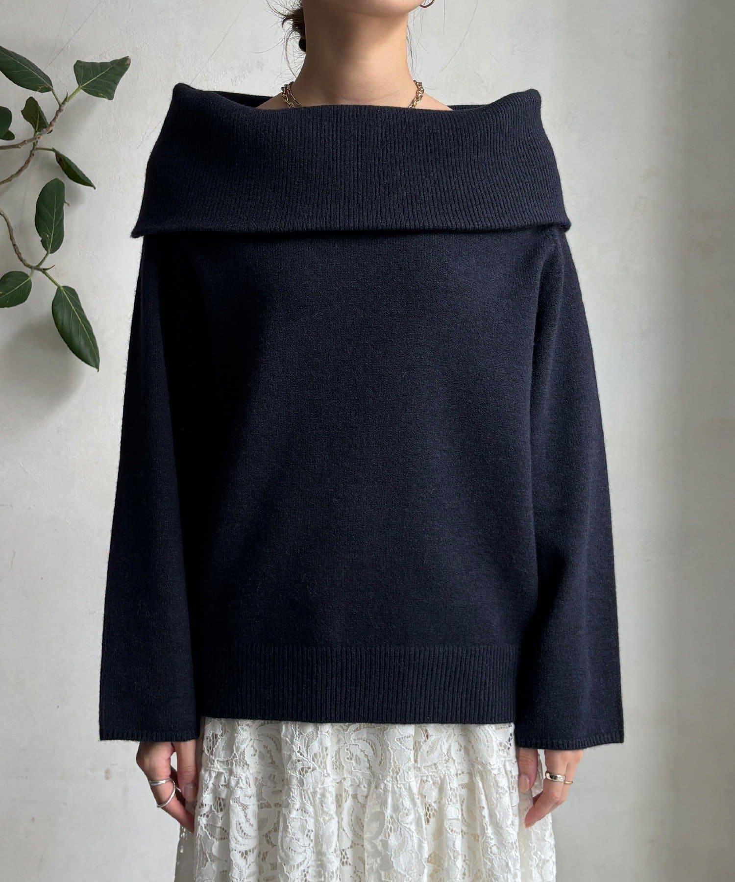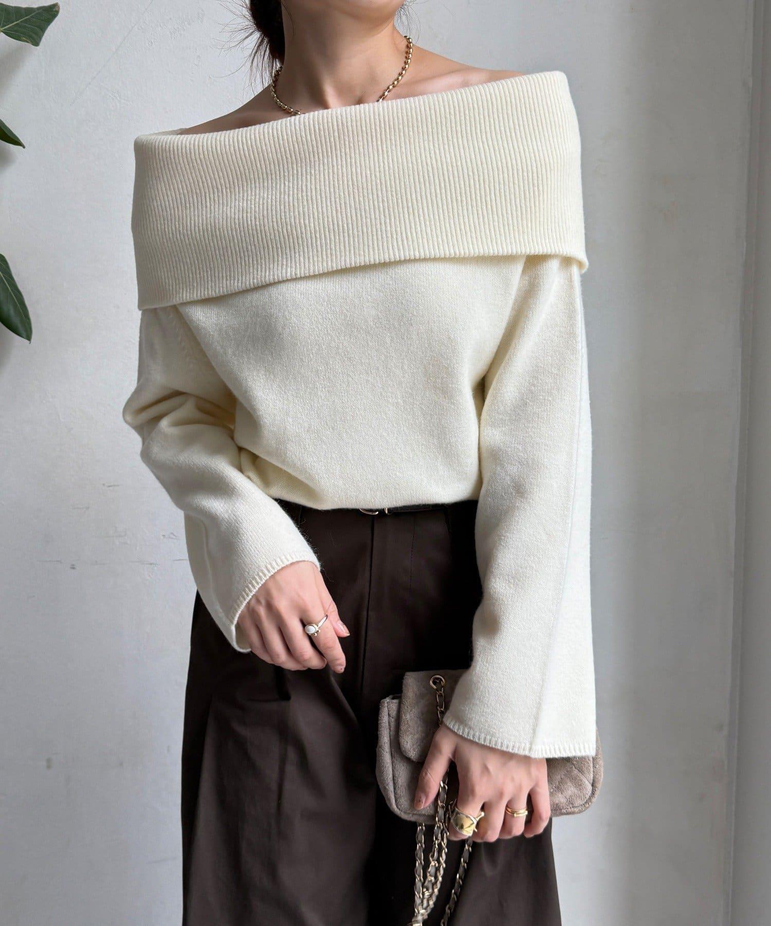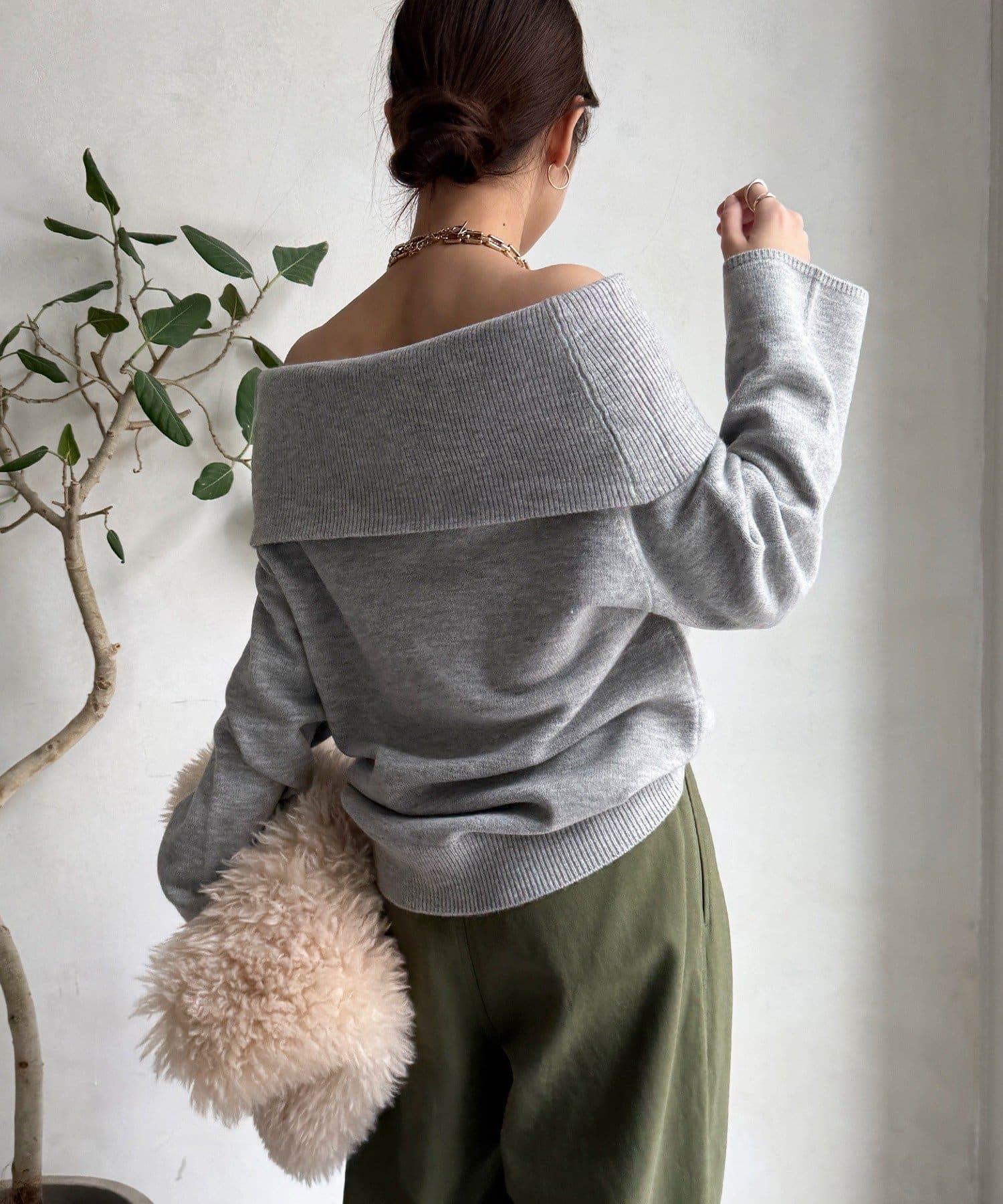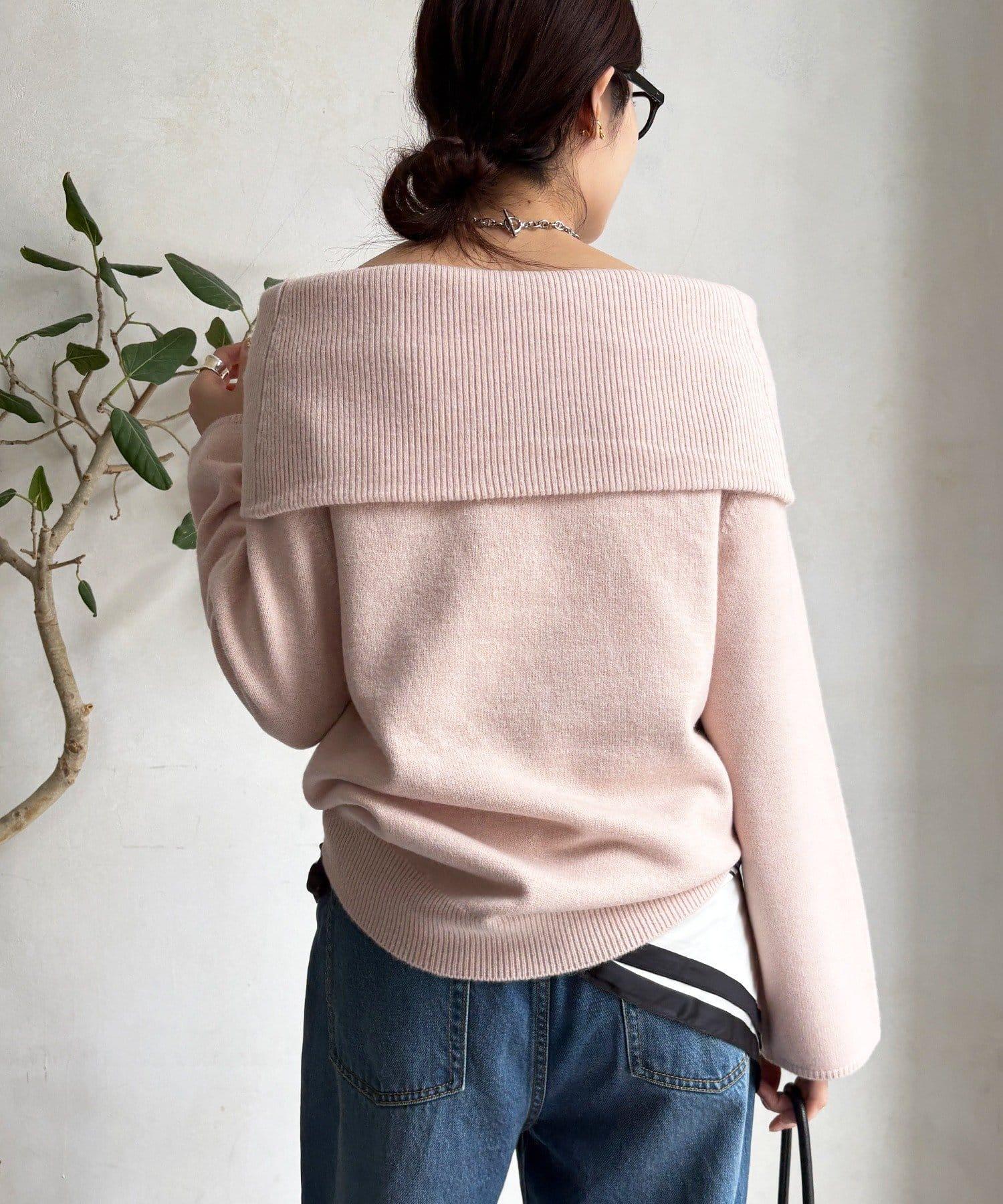 領口的穿著方式不同,針織衫給人的感覺也不同。