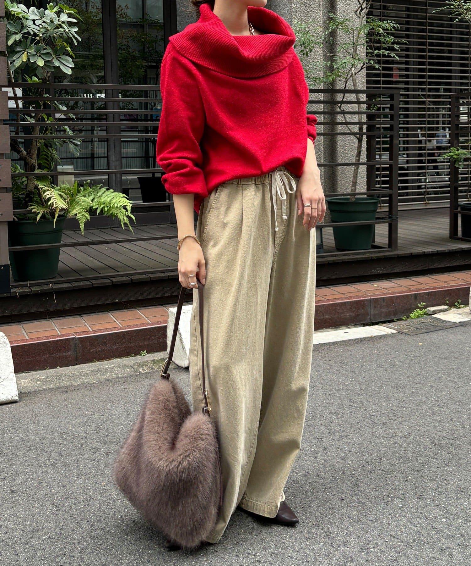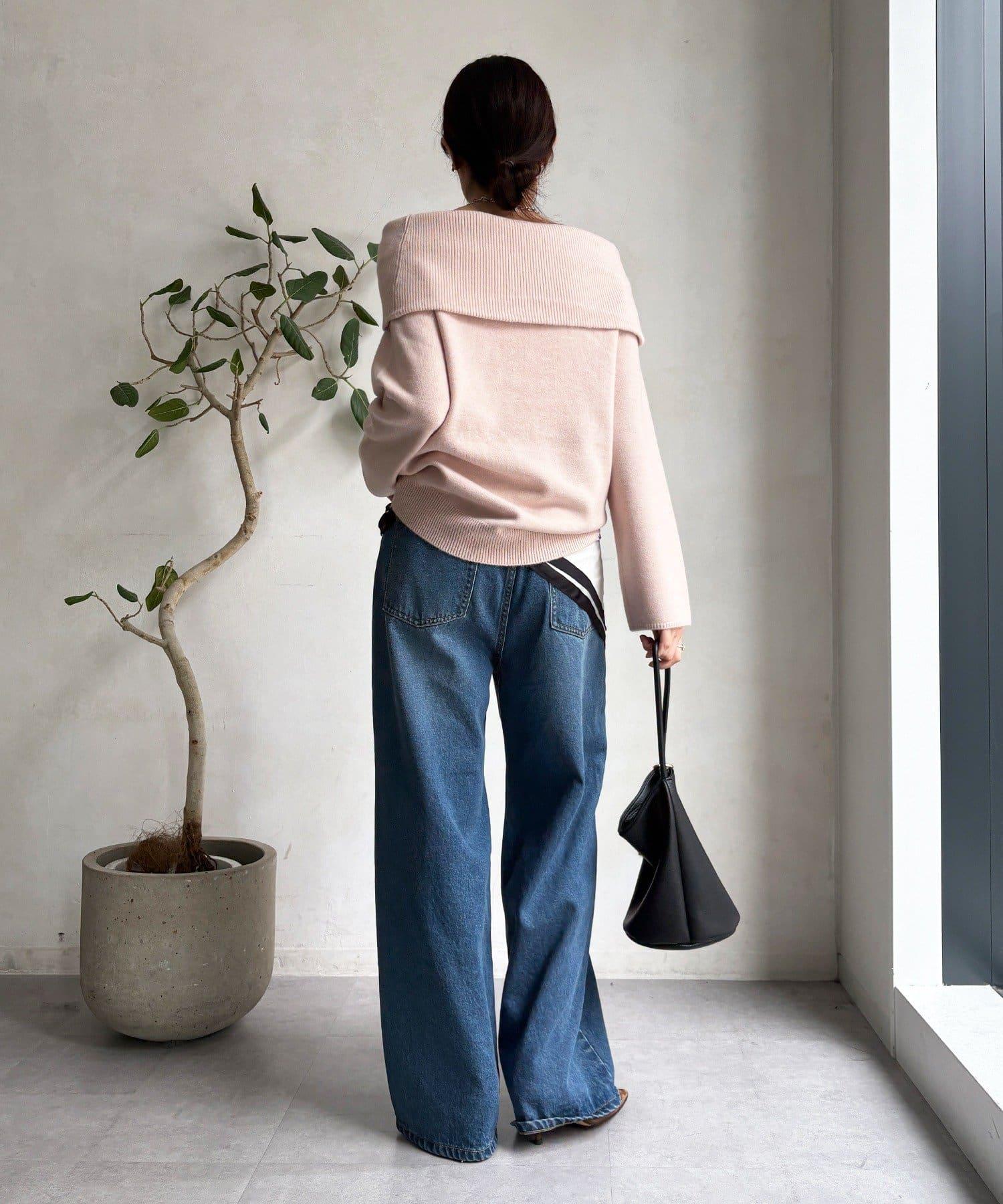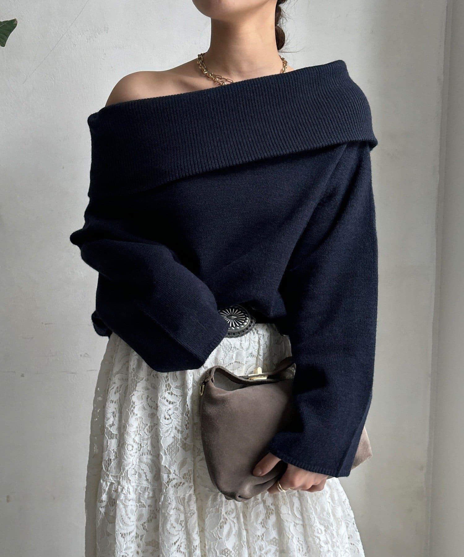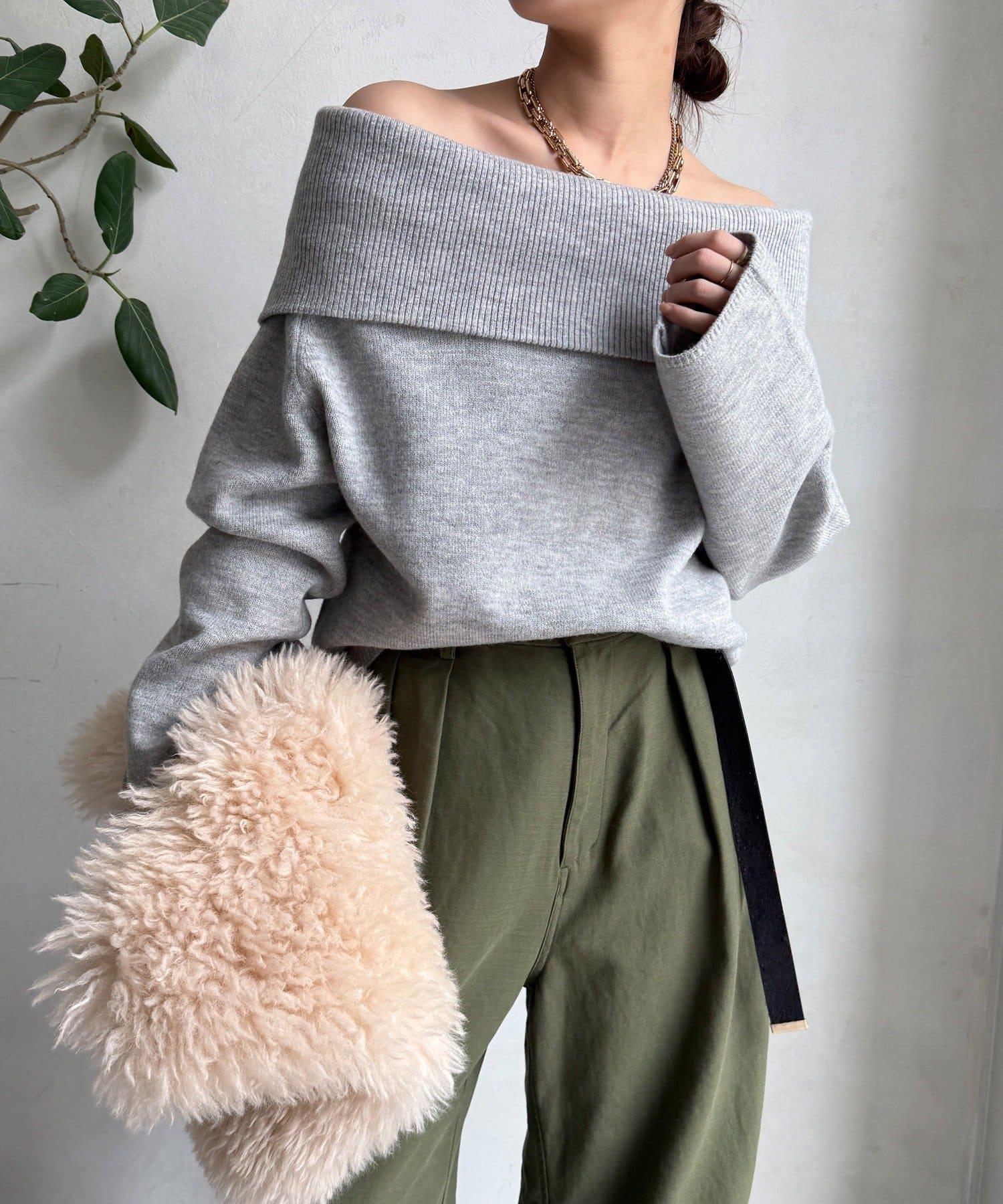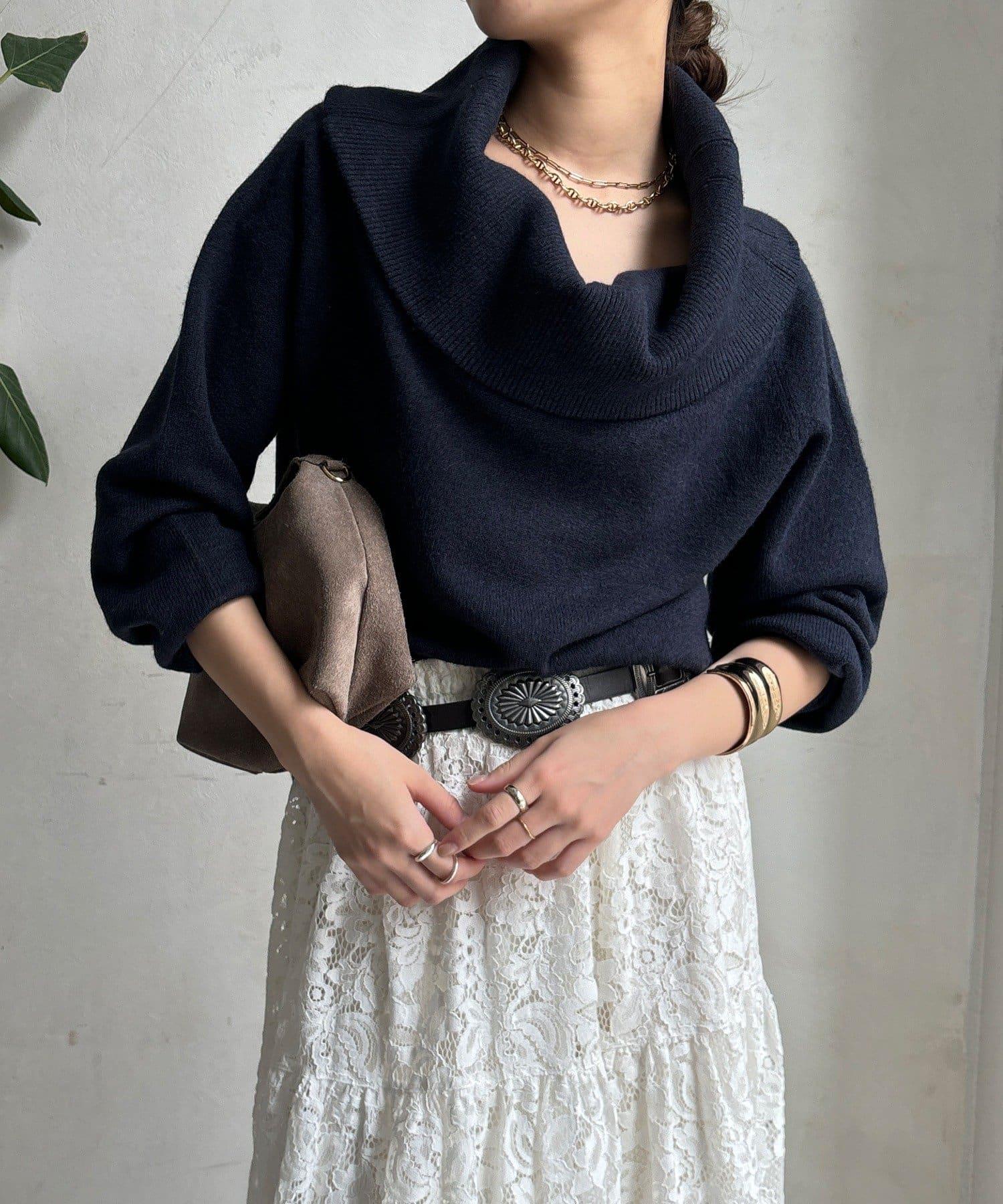 領口的穿著方式不同,針織衫給人的感覺也不同。