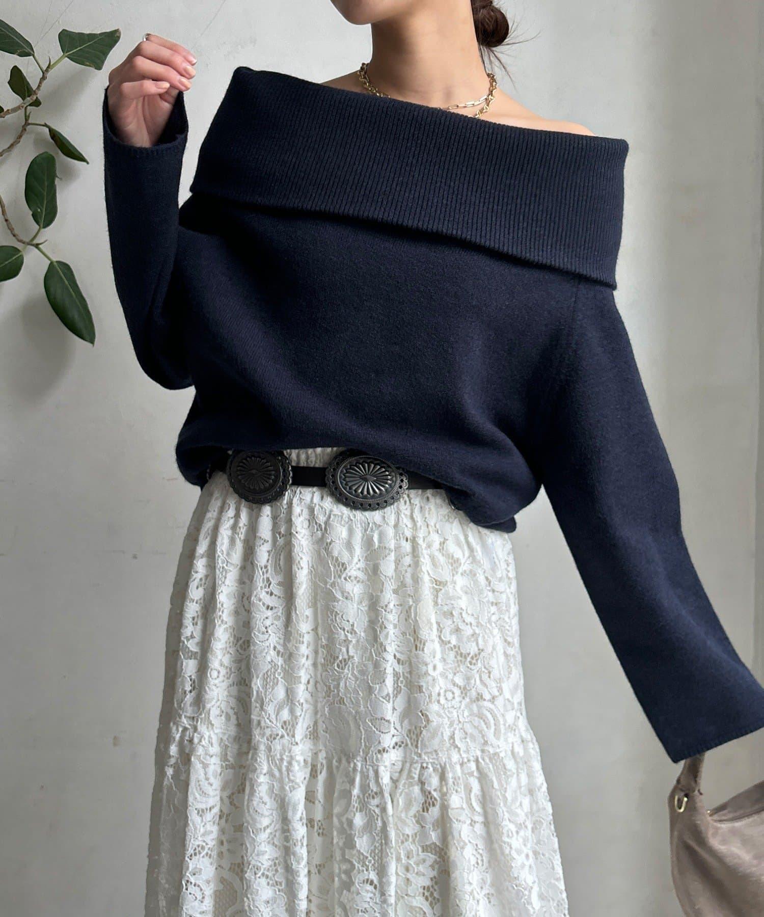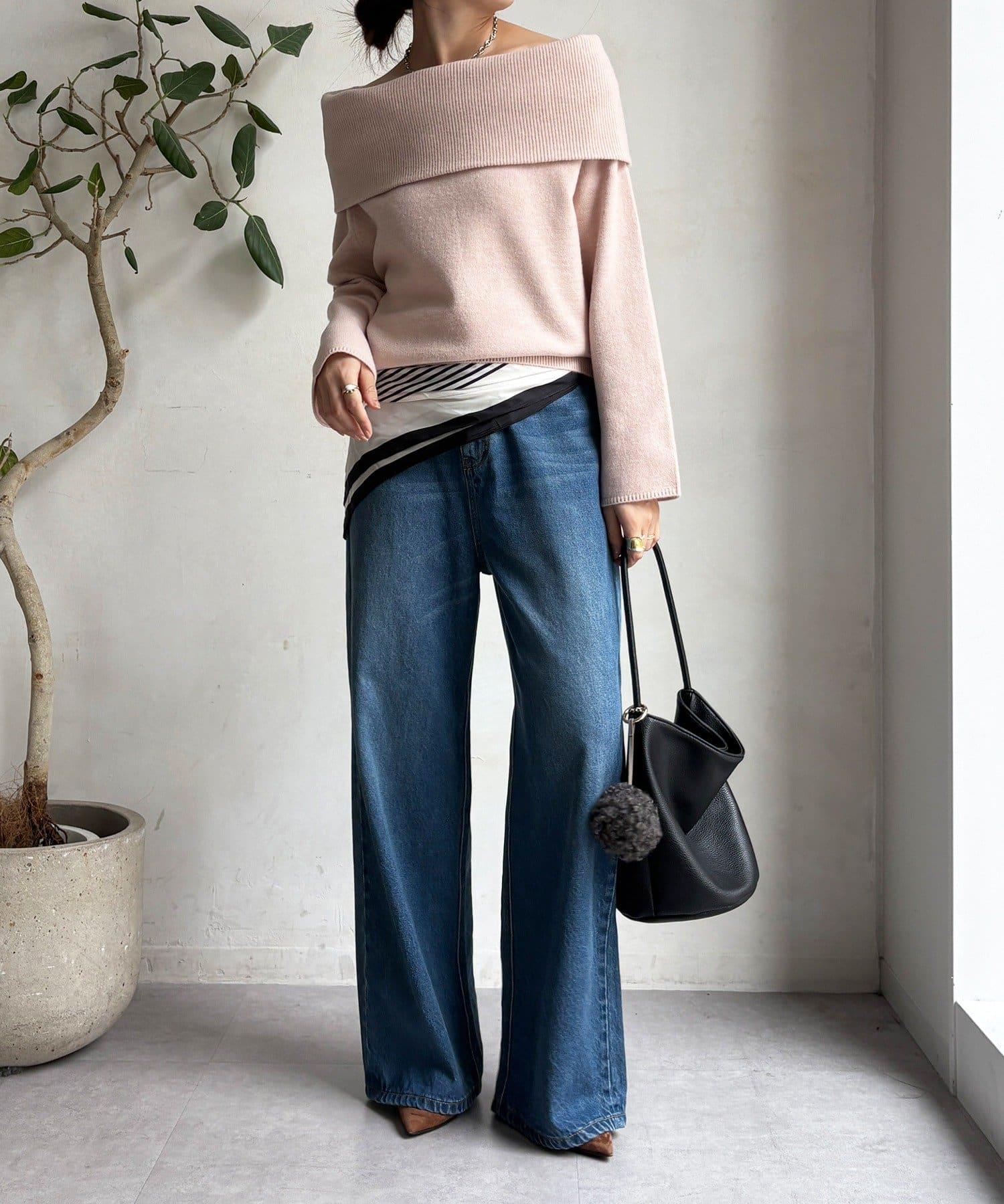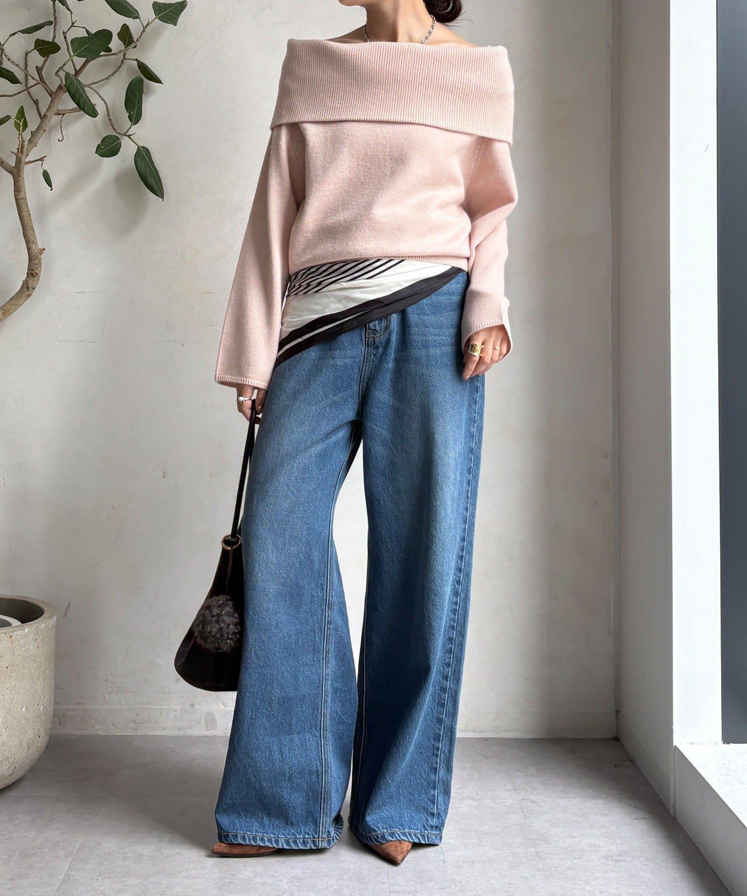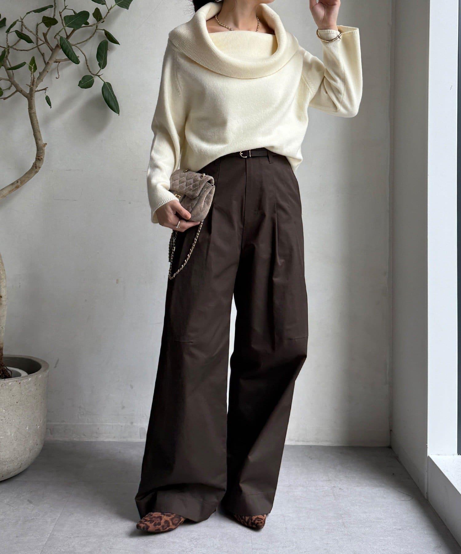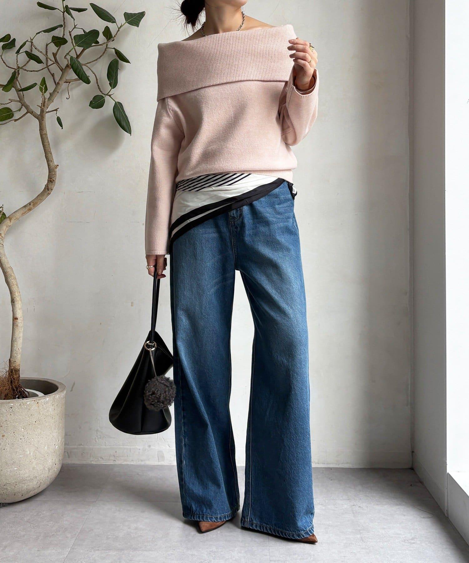 領口的穿著方式不同,針織衫給人的感覺也不同。