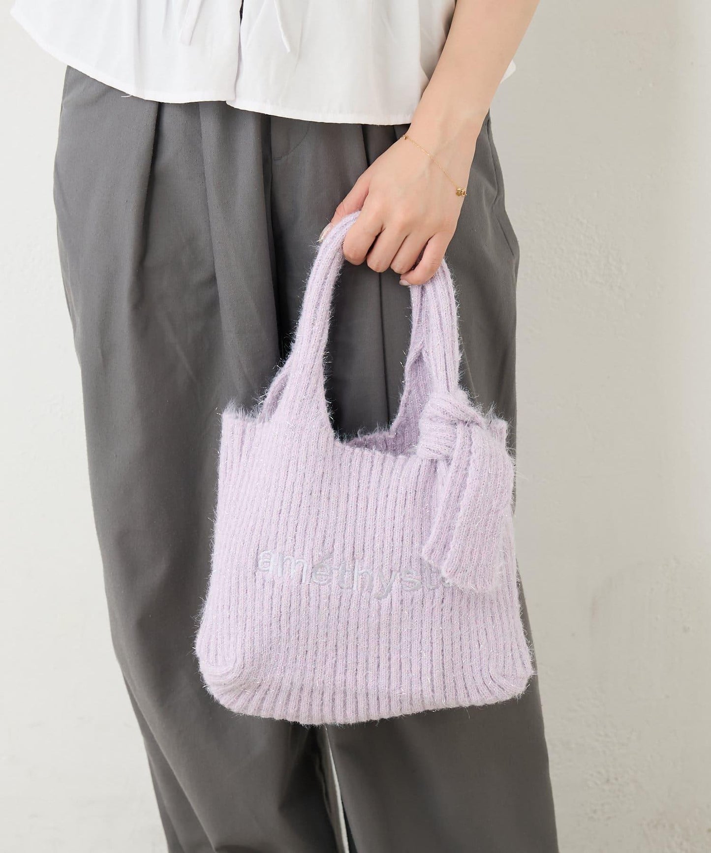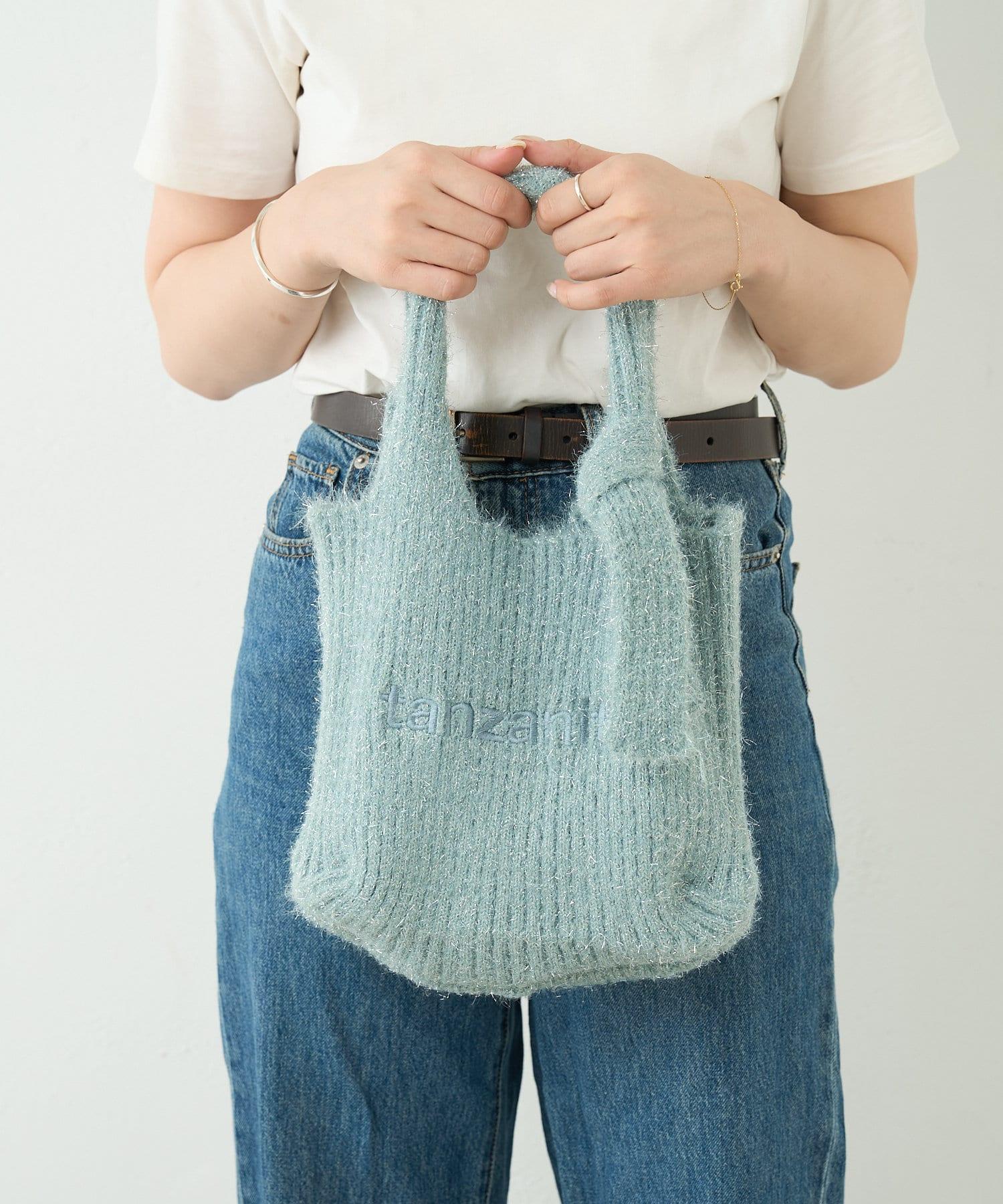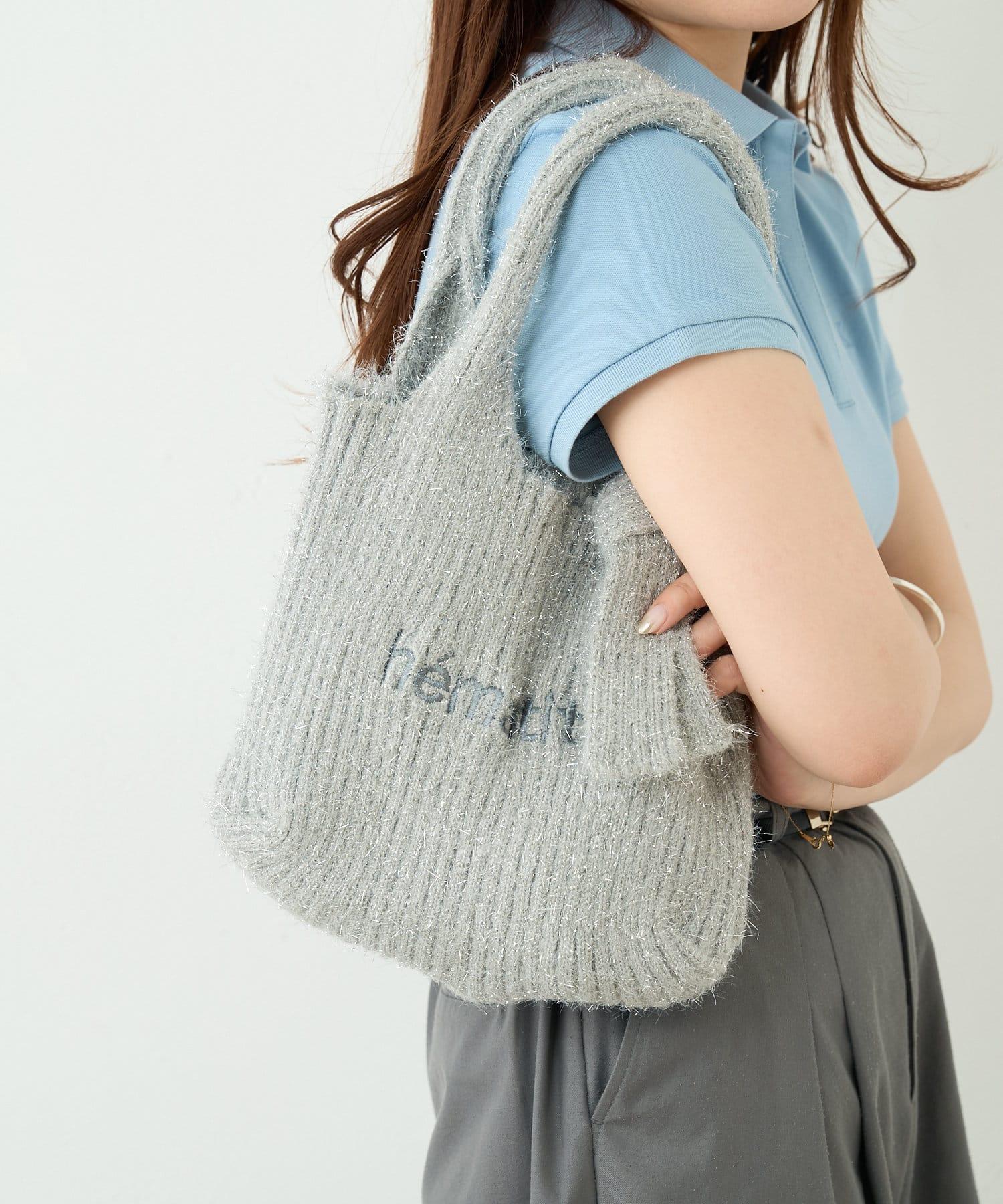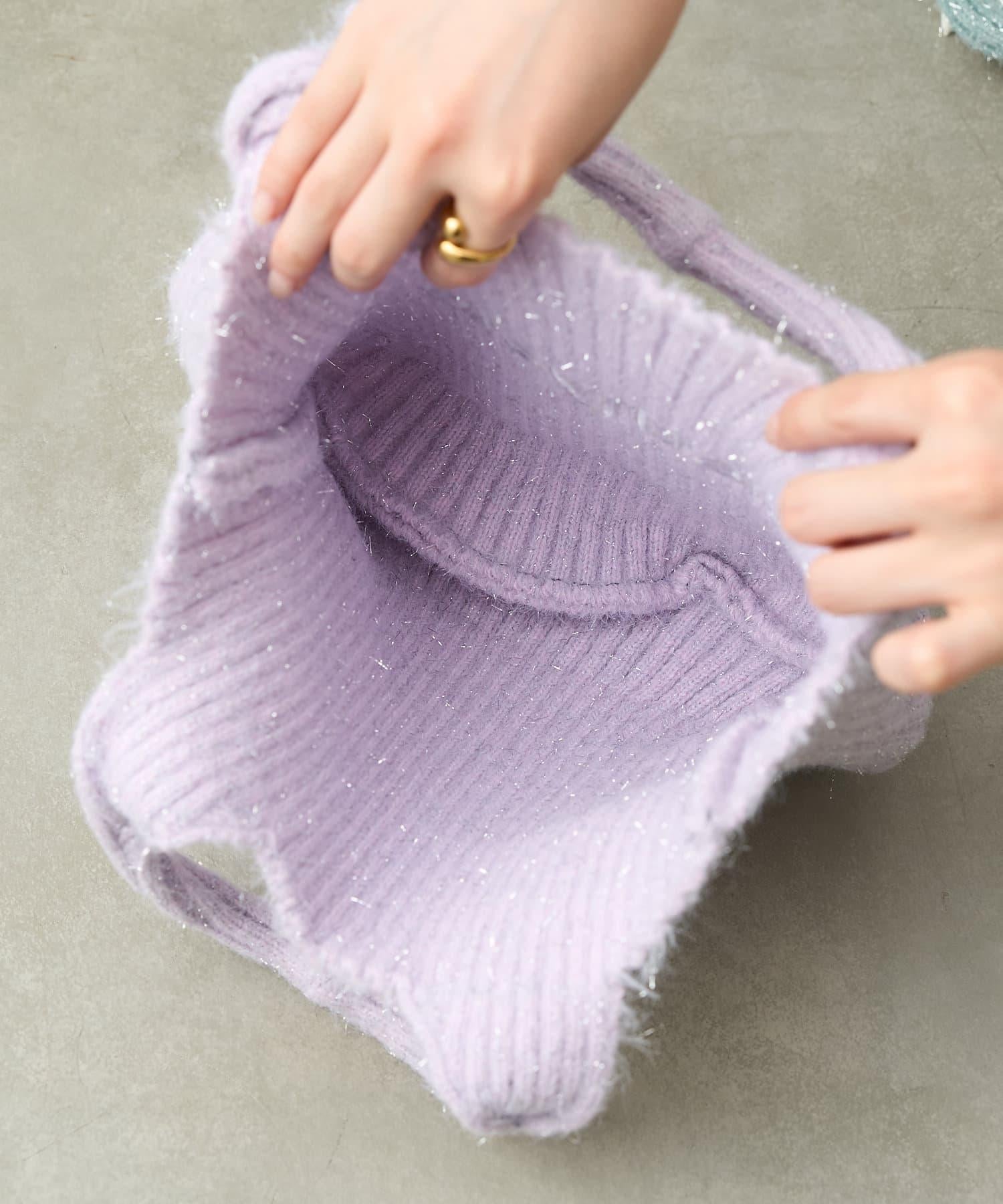 羅紋拉莫爾針織紗蓬鬆手袋。