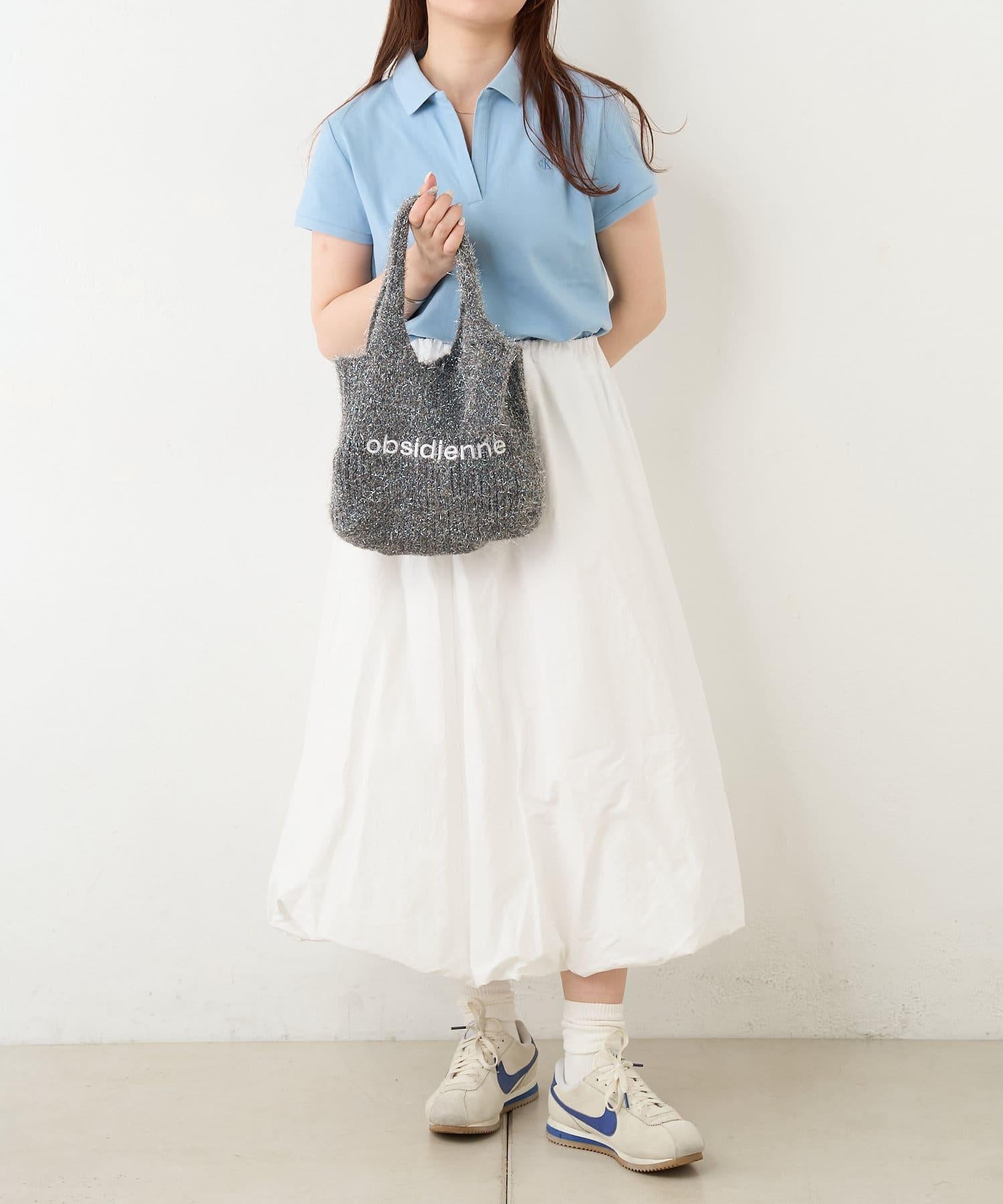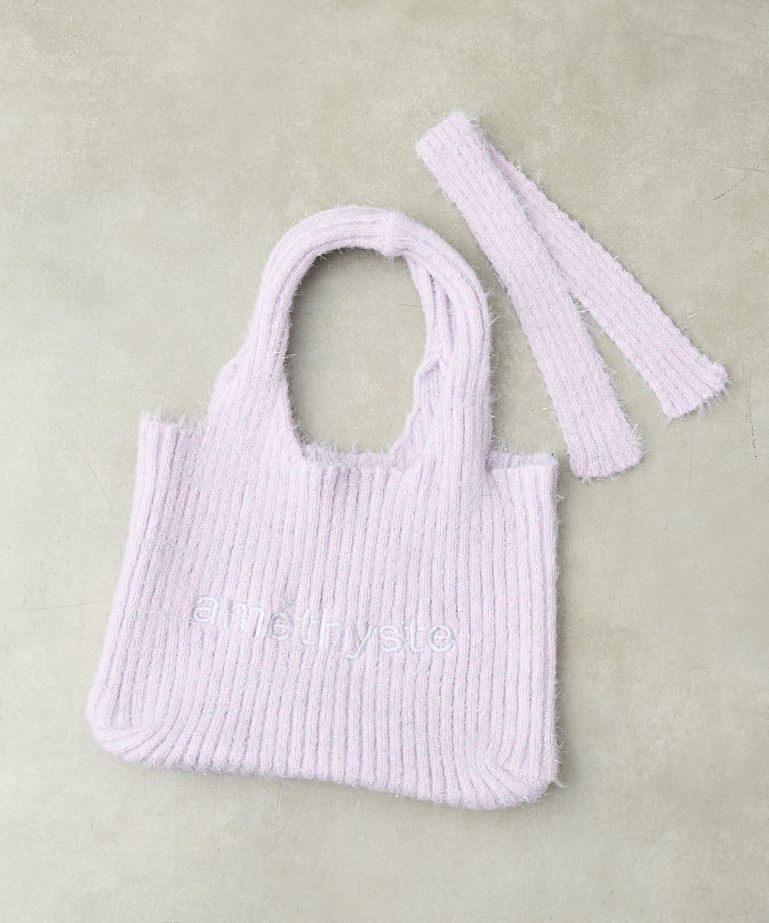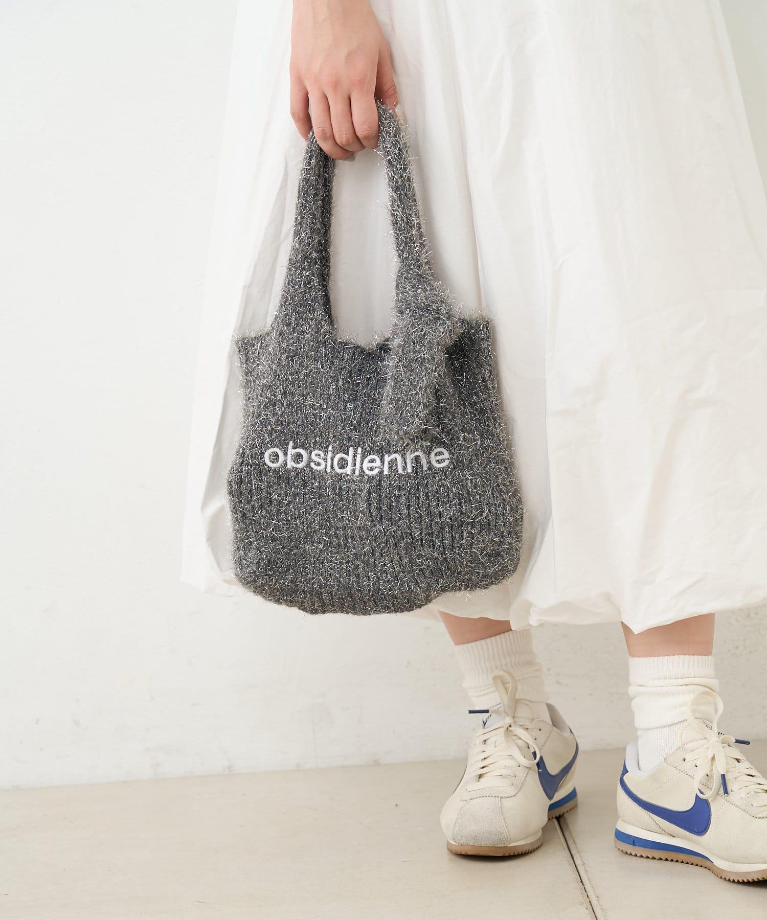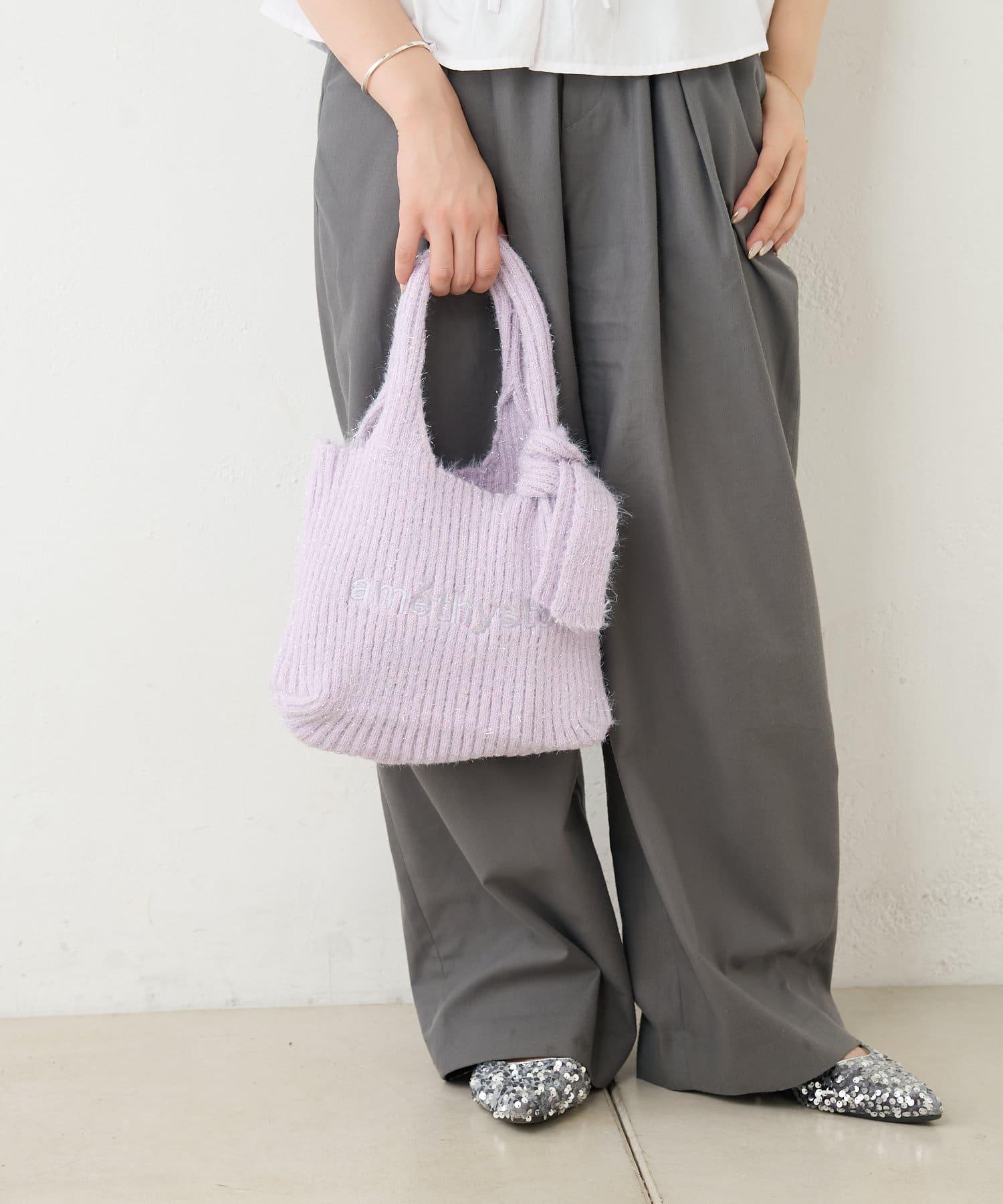 羅紋拉莫爾針織紗蓬鬆手袋。