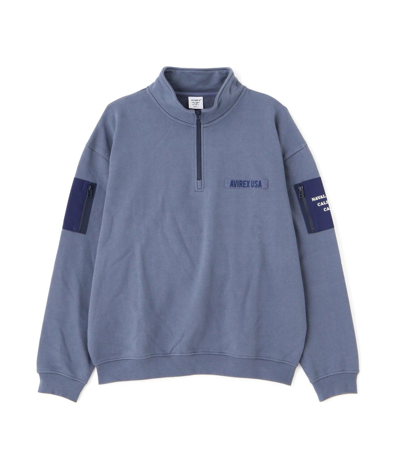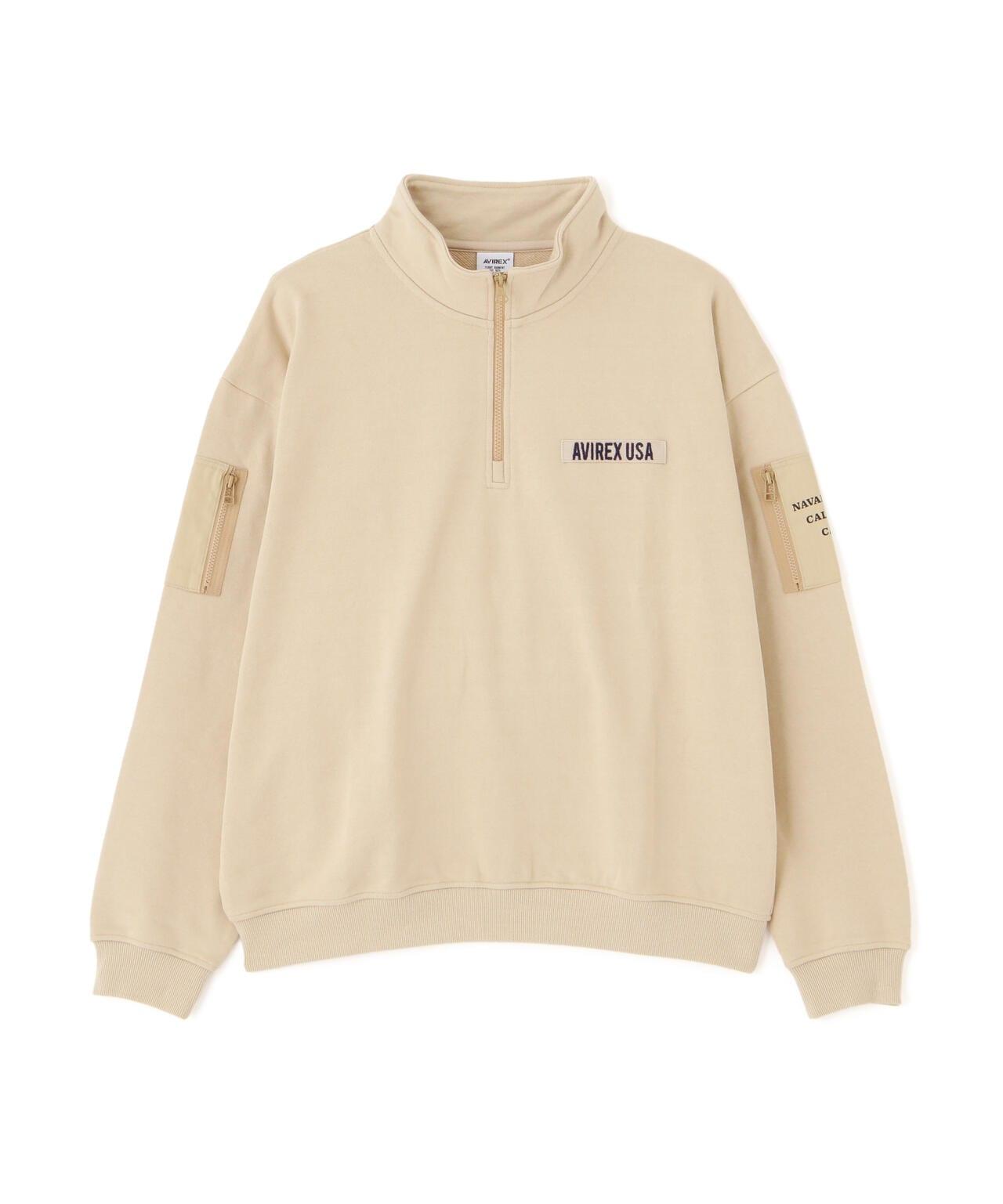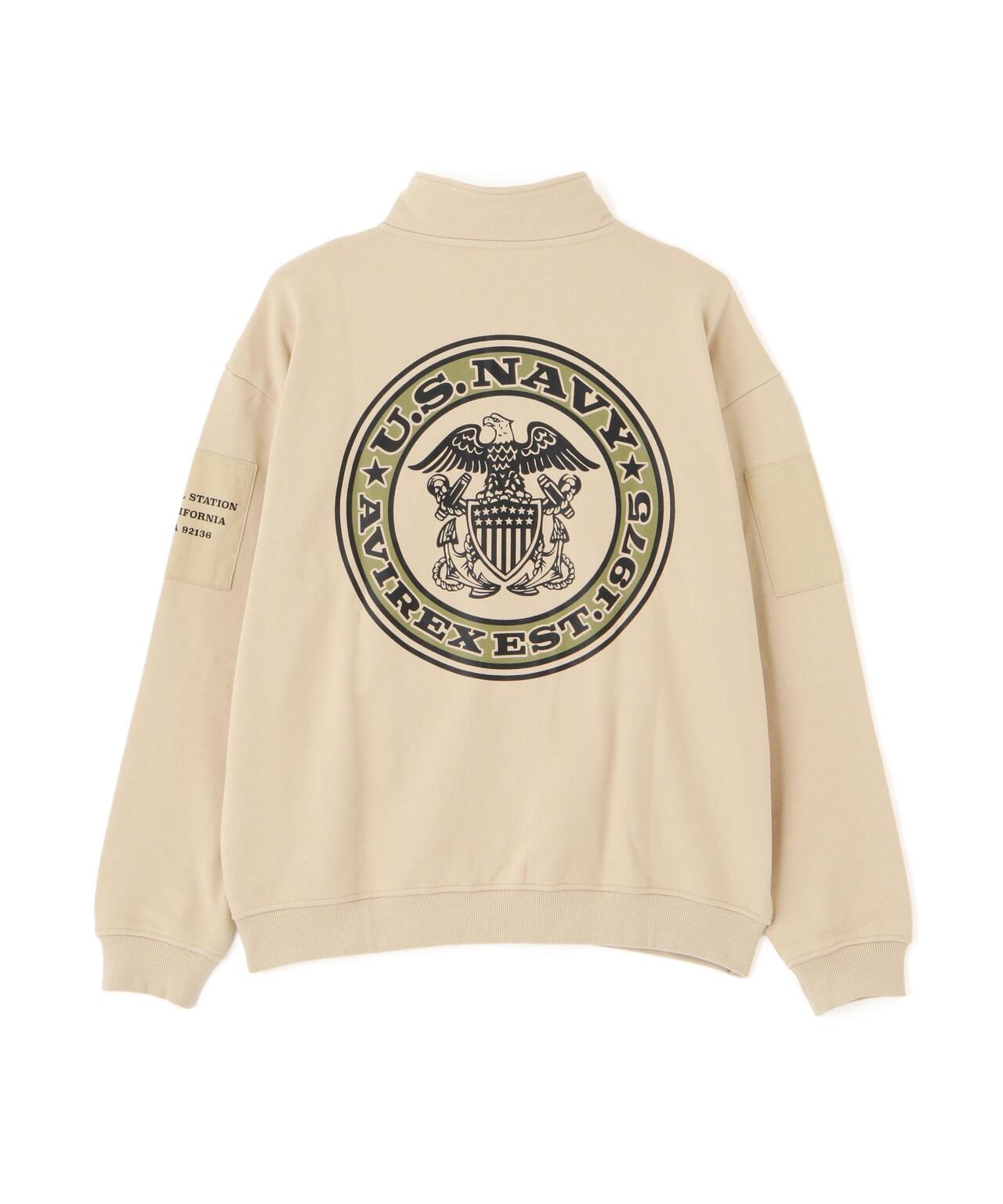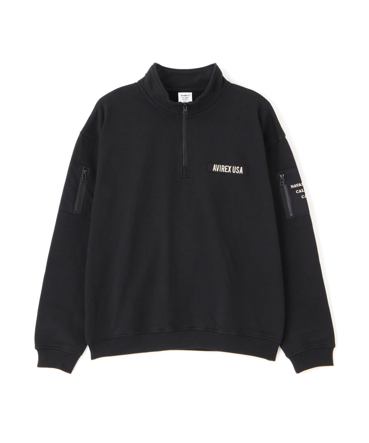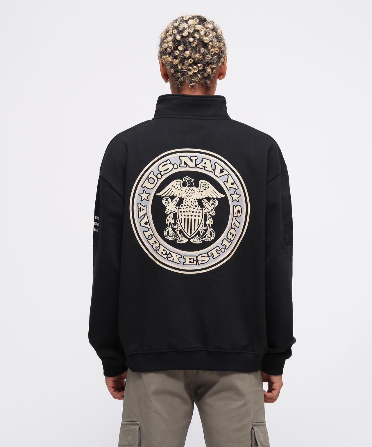 AVIREX 官方旗艦店] 商品名稱:《WEB Limited》HALF ZIP FATIGUE SWEAT <商品詳情> - WEB Limited,易穿半拉鍊衛衣 - 左胸口膠帶上繡有品牌logo - 後背徽章和圓圈logo排列並有圖案印花 - 雙袖有不同材質口袋 - 左袖口袋上印有 "NAVY STATION "字樣 - 內裡採用起毛襯裡 - 易疊穿圖形印花,兩袖有不同材質的口袋,左袖口袋印有 "NAVY STATION "字樣,內襯採用毛襯(起絨),規格易於疊穿,質感良好,寬鬆廓形 [AVIREX / AVIREX] 成立於 1975 年,是美國空軍的承包商。該公司成立於 1975 年,是美國空軍的承包商,並通過提供飛行夾克極大地提高了其知名度。Avirex 公司起源於軍事領域。
