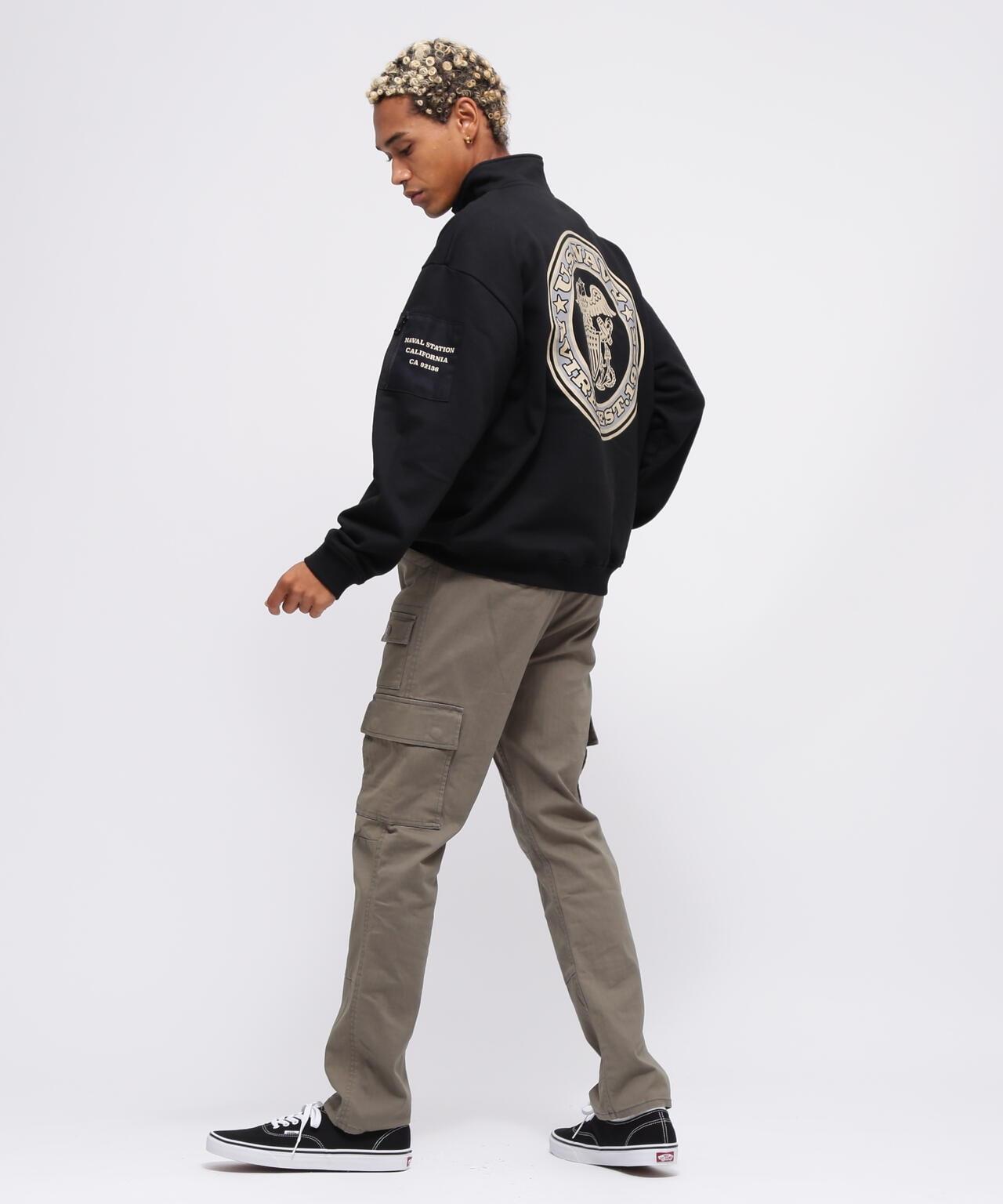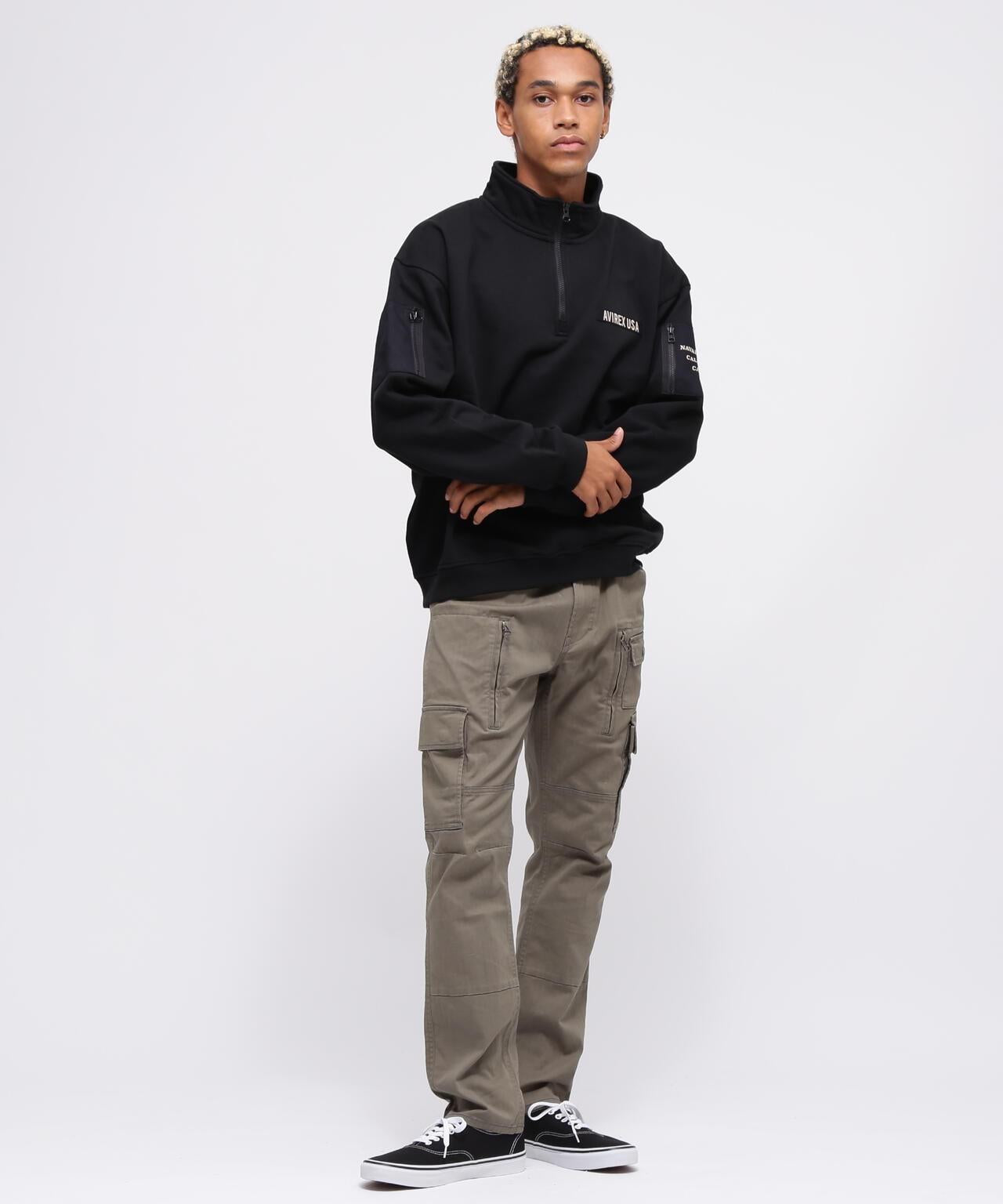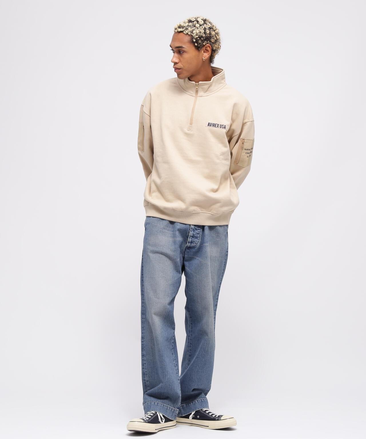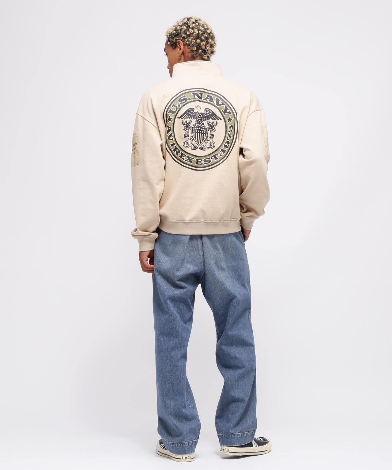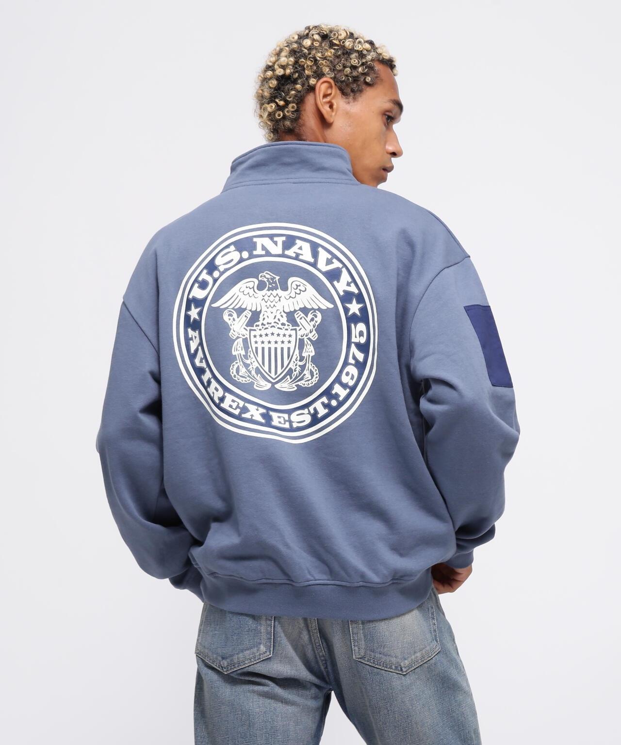 AVIREX 官方旗艦店] 商品名稱:《WEB Limited》HALF ZIP FATIGUE SWEAT <商品詳情> - WEB Limited,易穿半拉鍊衛衣 - 左胸口膠帶上繡有品牌logo - 後背徽章和圓圈logo排列並有圖案印花 - 雙袖有不同材質口袋 - 左袖口袋上印有 "NAVY STATION "字樣 - 內裡採用起毛襯裡 - 易疊穿圖形印花,兩袖有不同材質的口袋,左袖口袋印有 "NAVY STATION "字樣,內襯採用毛襯(起絨),規格易於疊穿,質感良好,寬鬆廓形 [AVIREX / AVIREX] 成立於 1975 年,是美國空軍的承包商。該公司成立於 1975 年,是美國空軍的承包商,並通過提供飛行夾克極大地提高了其知名度。Avirex 公司起源於軍事領域。