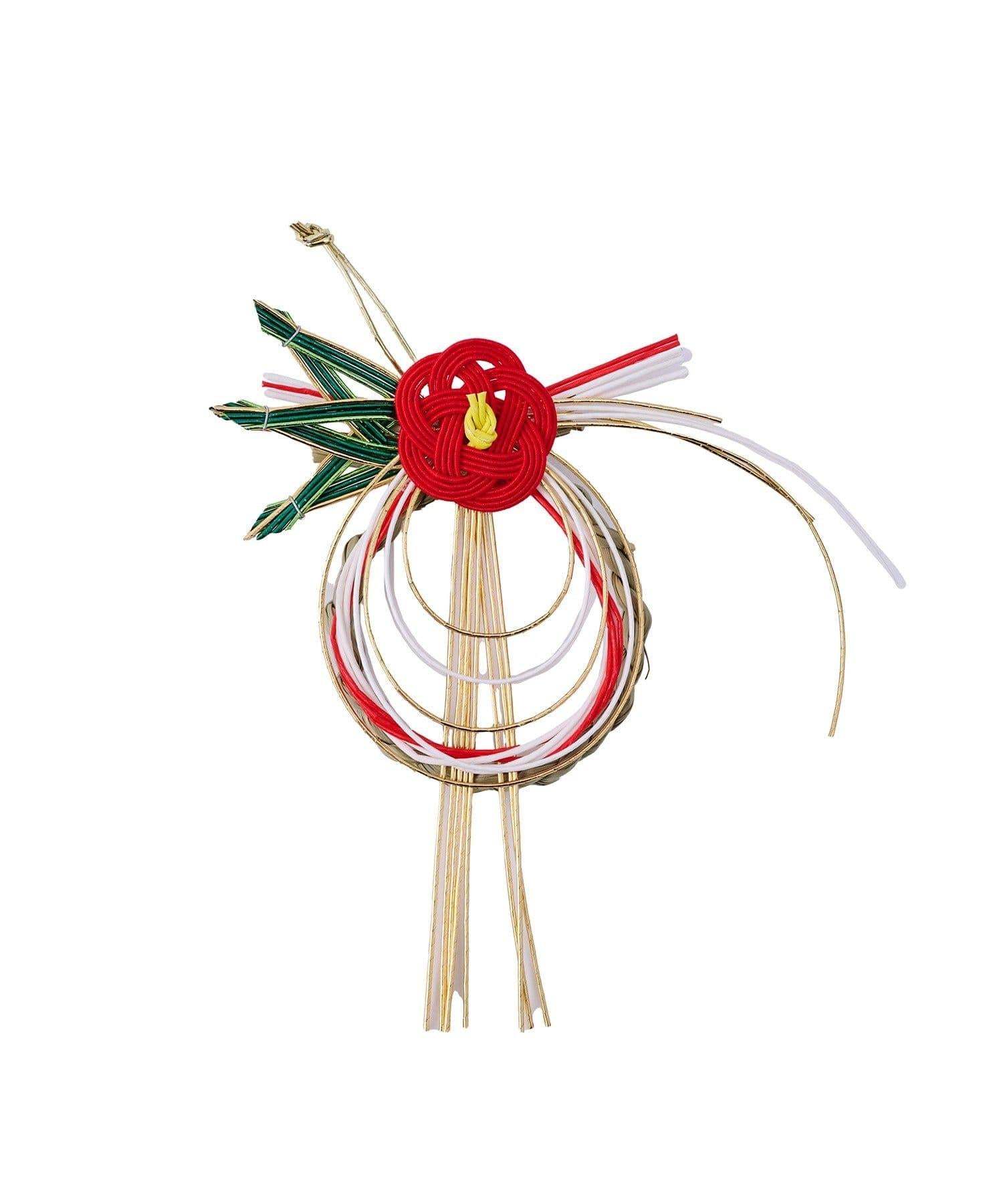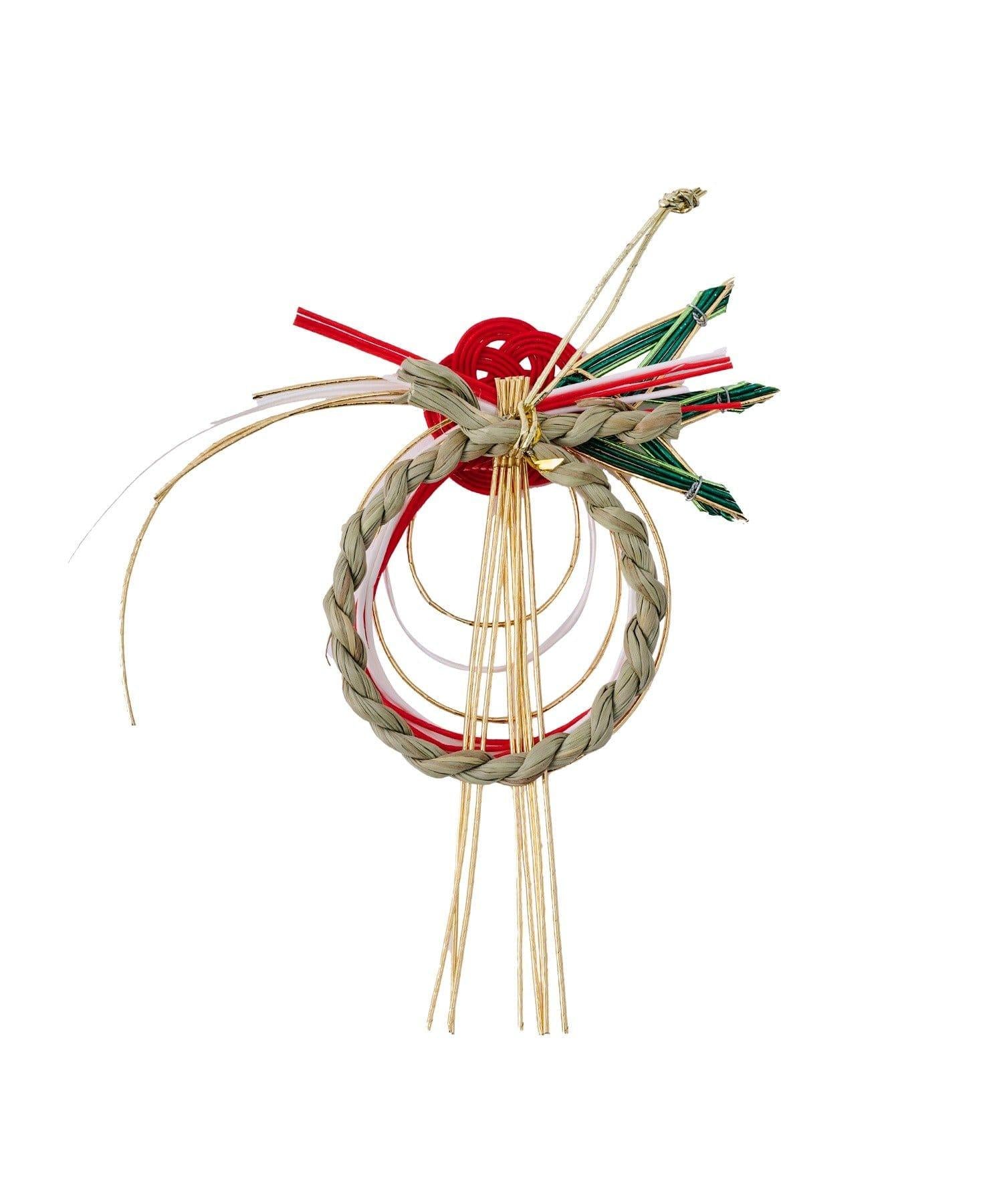 稻草狀的材料上點綴著紅色、白色和金色,設計優雅自然。