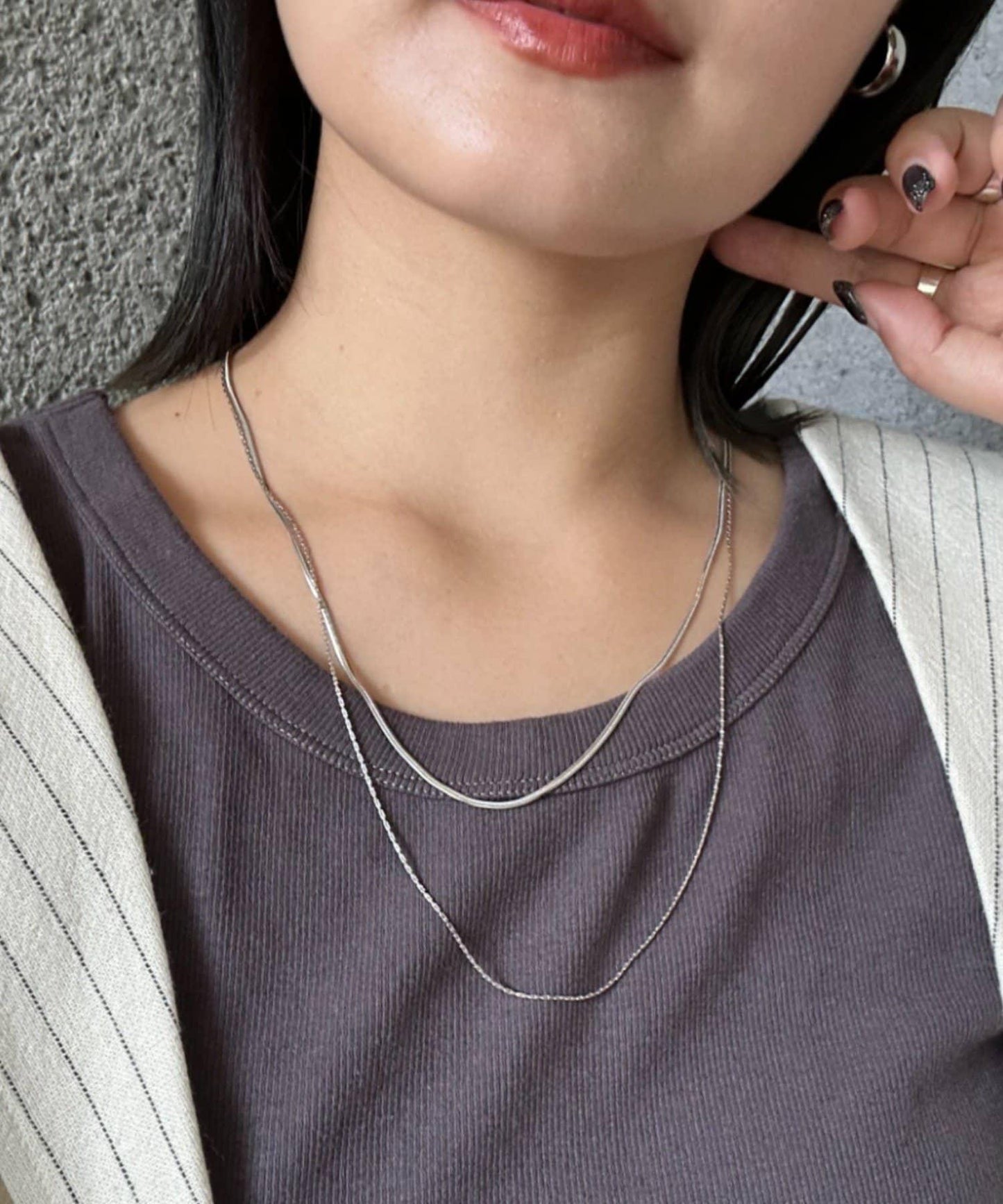 這條雙股蛇鏈項鍊為您的胸前增添了精緻的光彩。