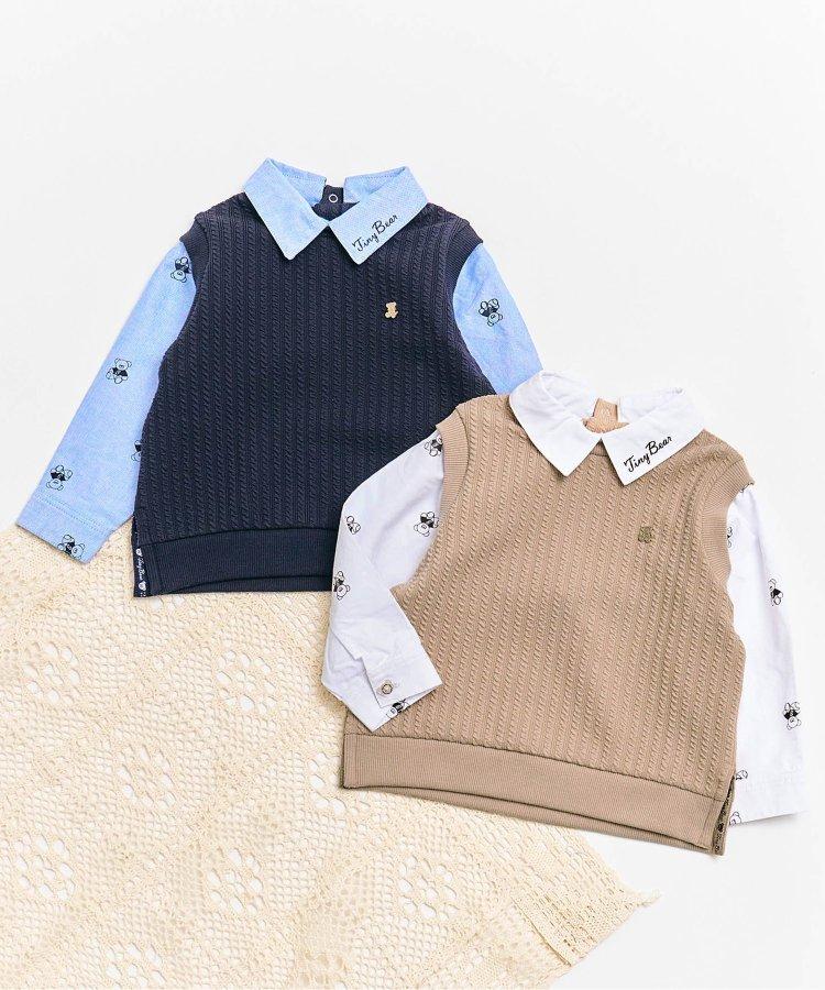 襯衫上有小熊圖案,馬甲上有小熊圖案*。