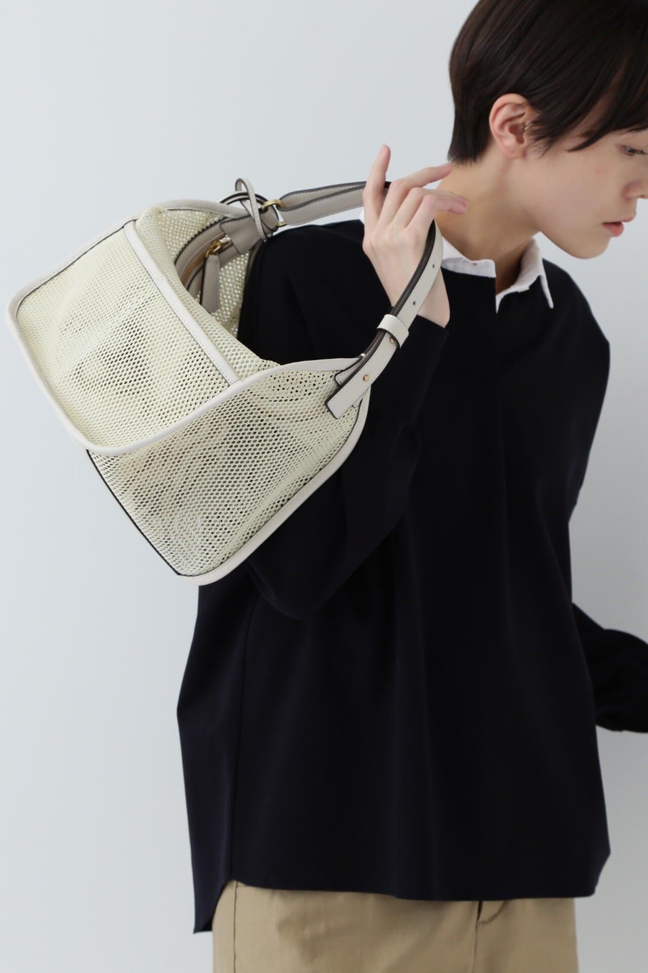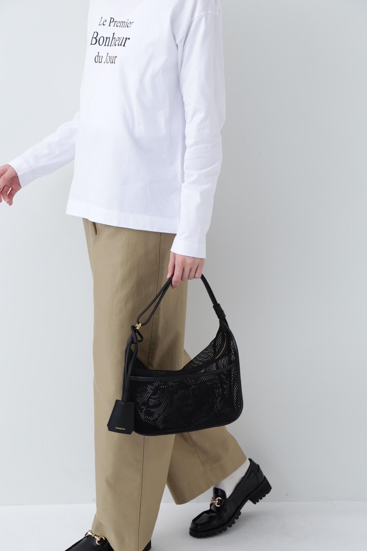 透明網袋輕便涼爽。抽繩可以很好地隱藏包內物品。ORSETTO]這款手袋簡約而不失質感,是採用優質材料和精心縫製的結果。這款包的設計充滿日常感和時尚感。