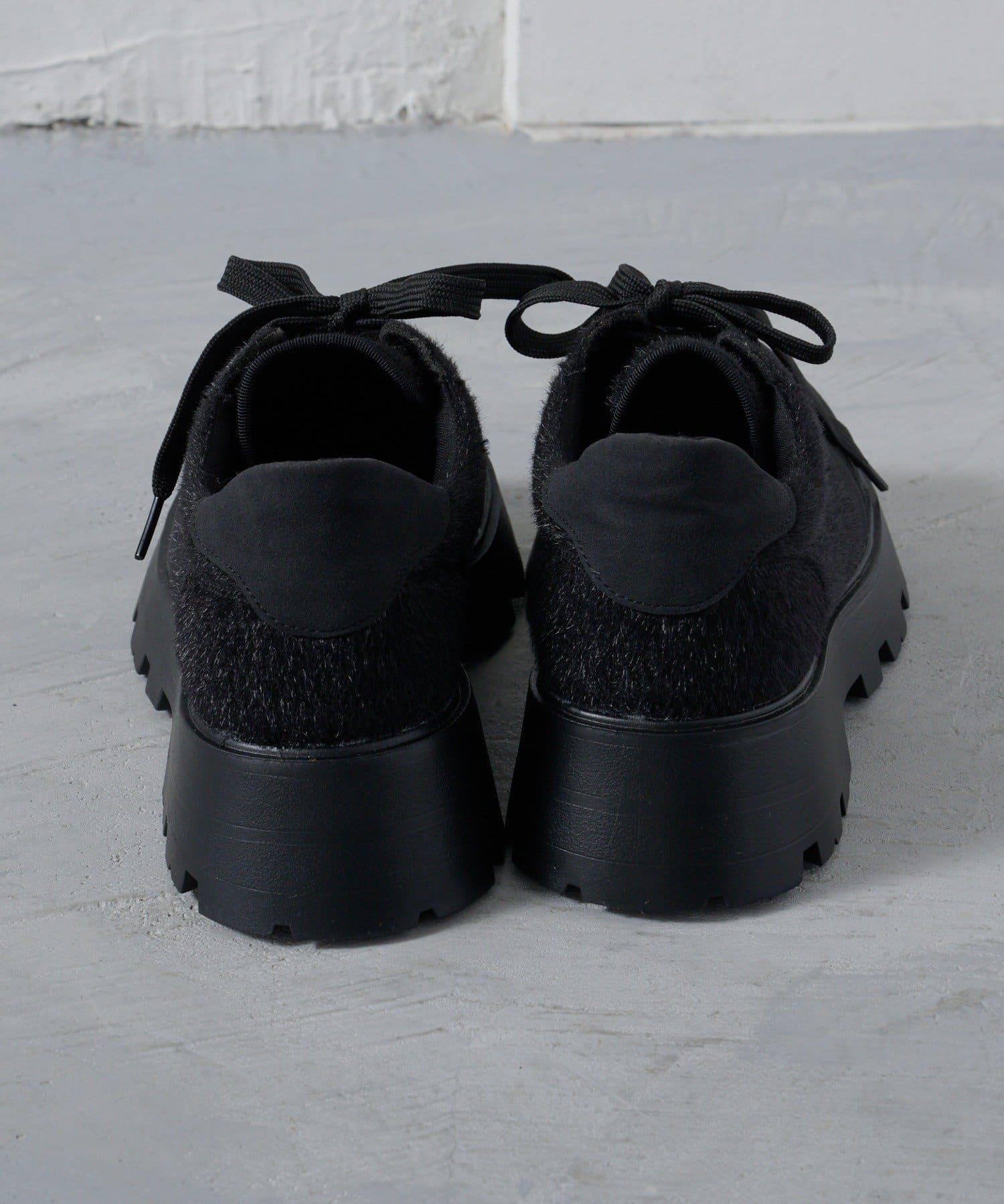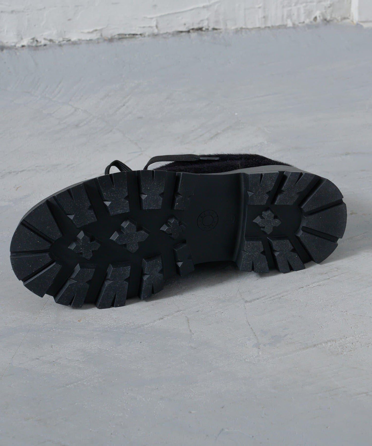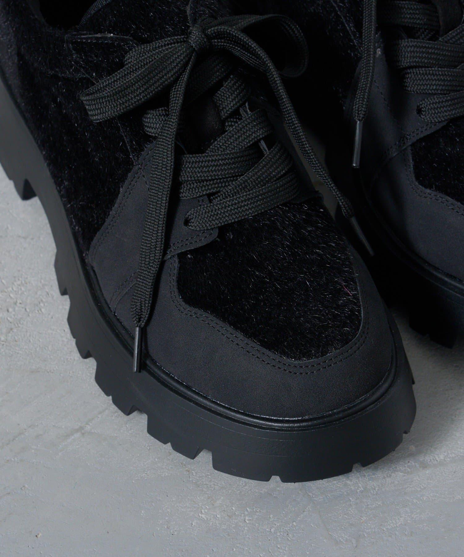 皮草襯裡的 Halaco 和麂皮絨等不同材質的混搭使其成為全場的焦點。