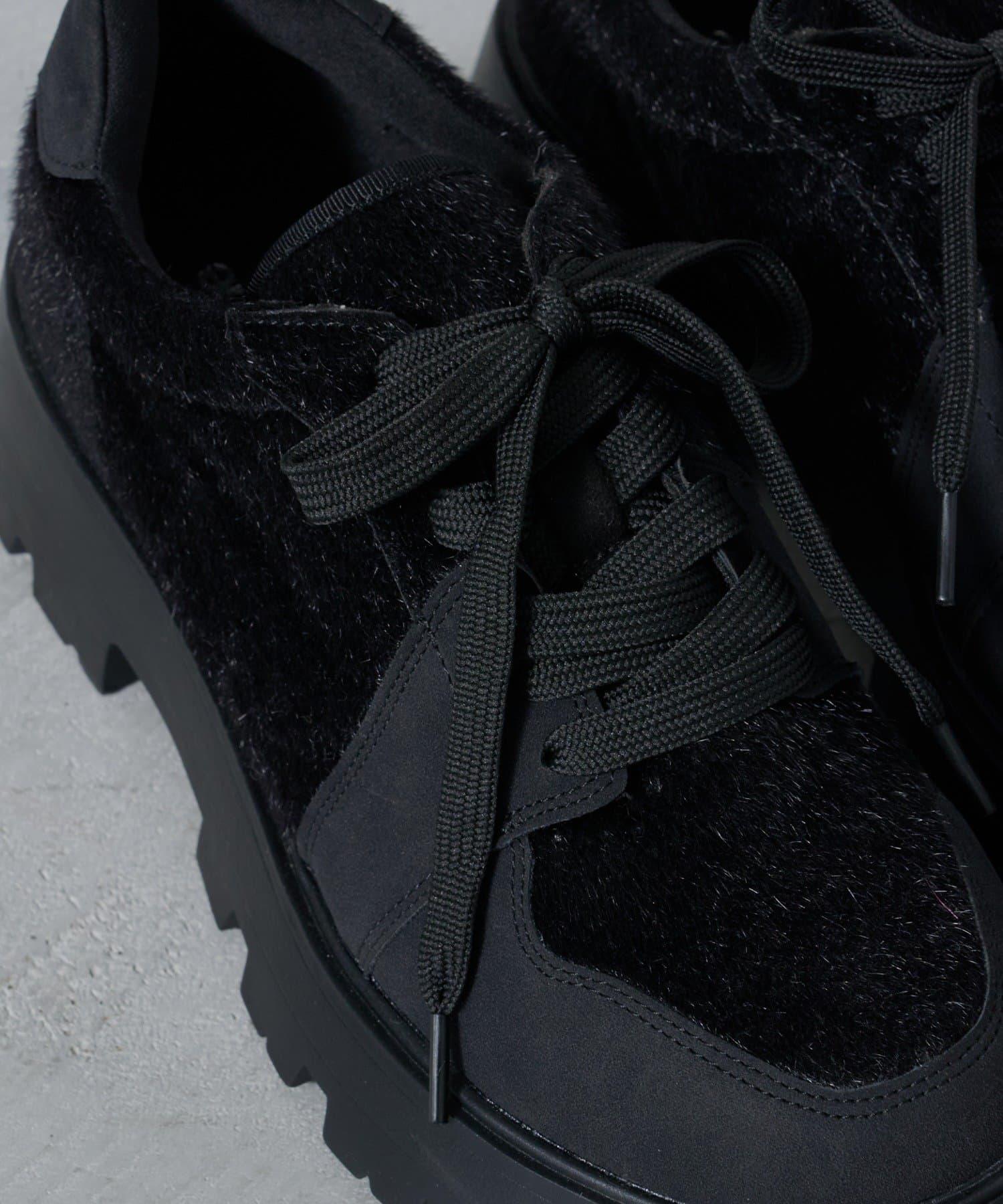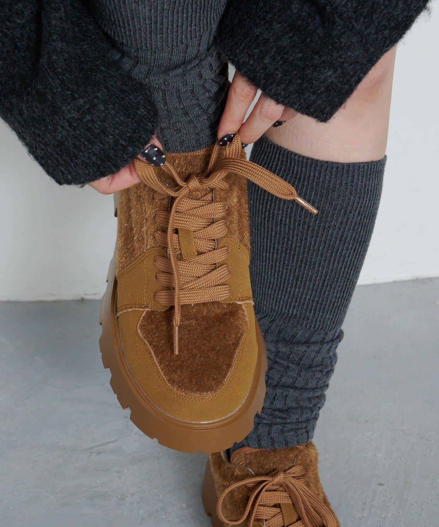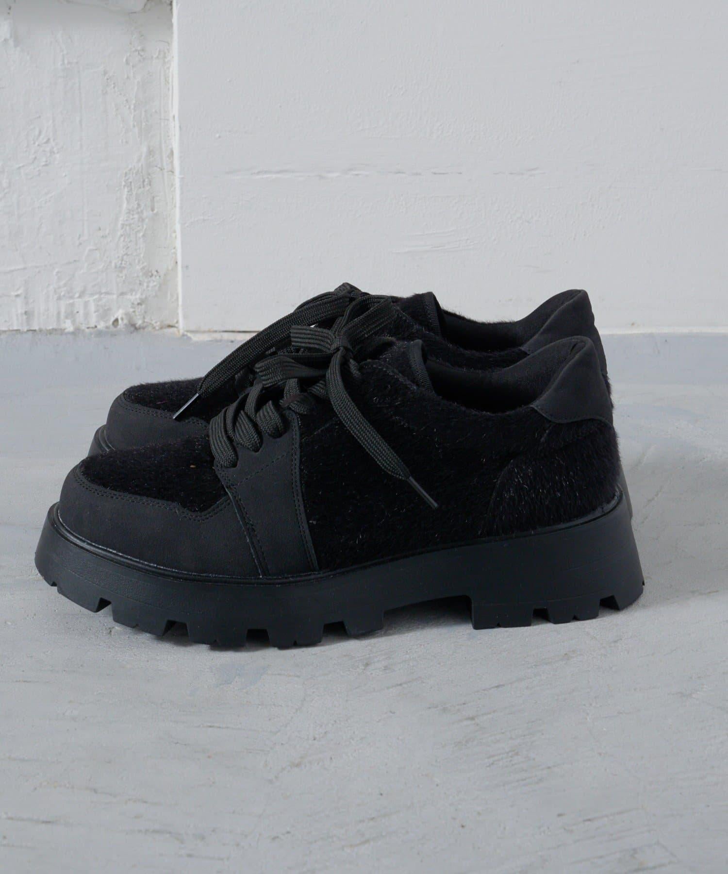 皮草襯裡的 Halaco 和麂皮絨等不同材質的混搭使其成為全場的焦點。