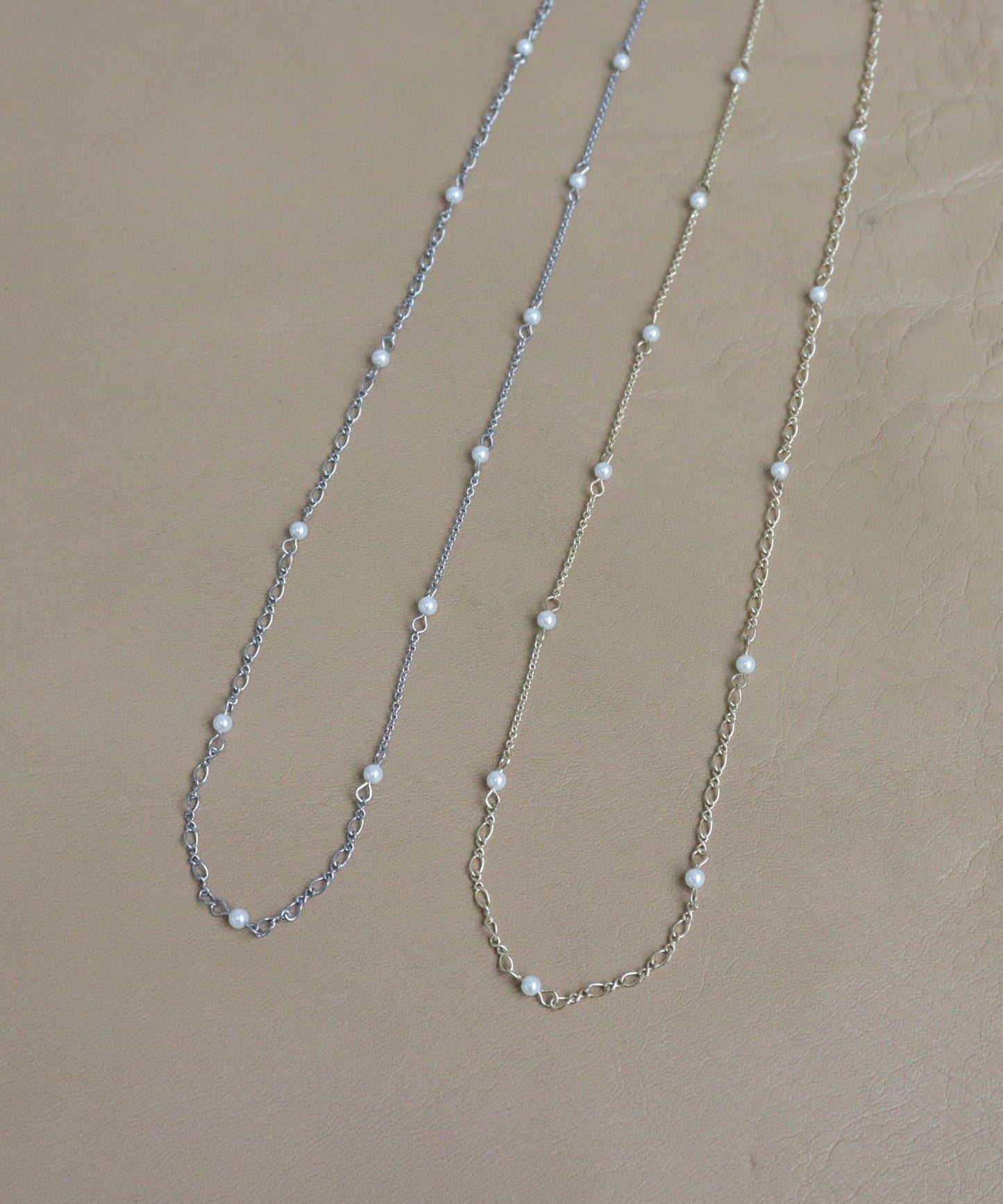 這是一條華麗典雅的長項鍊,將嬌小的珍珠與鏈條相結合。