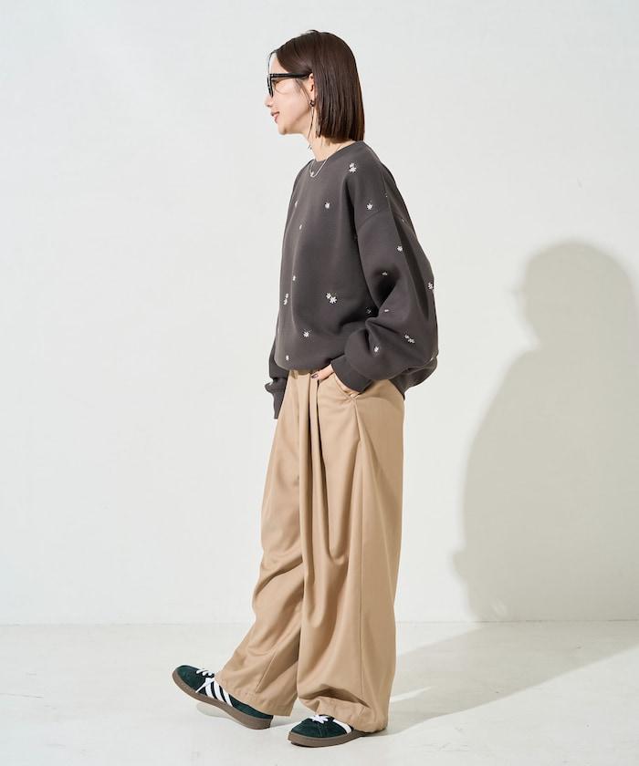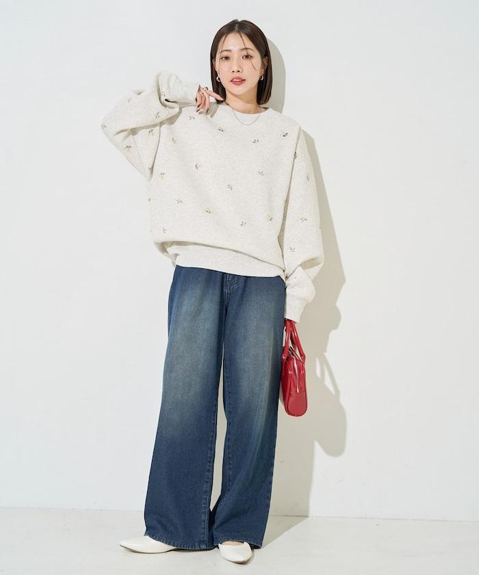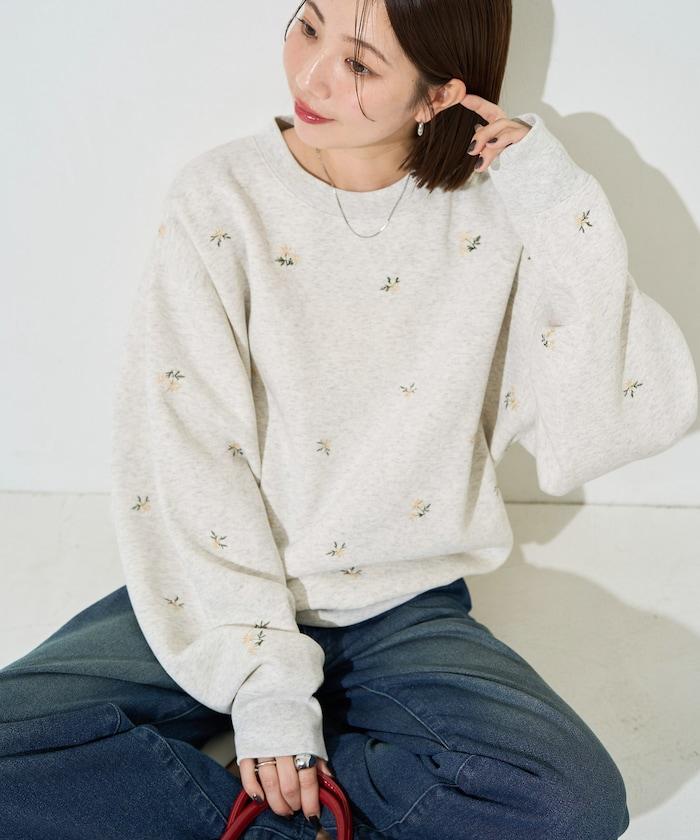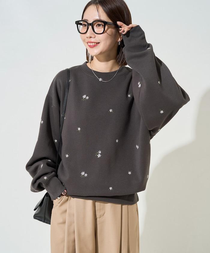 運動衫套頭衫上繡有精緻的花朵圖案,盡顯成人風範。