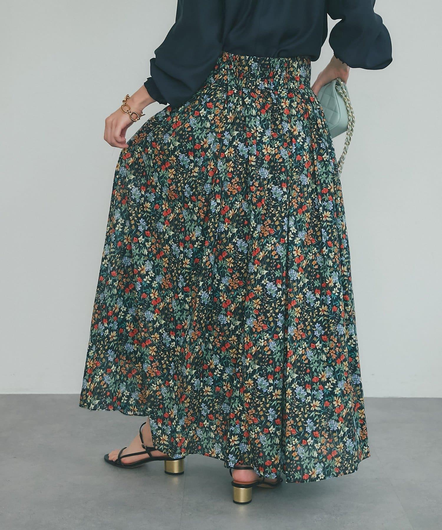 小花印花褶皺長裙