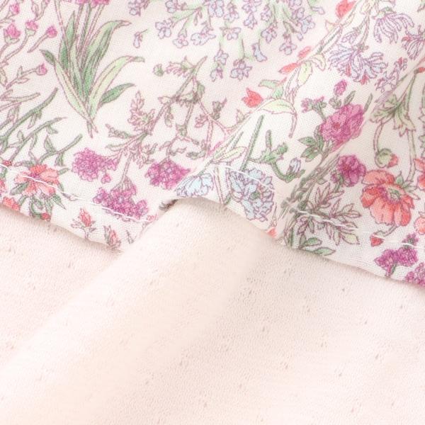 這款短褲採用了季節性花卉圖案的單面織物和針織面料。