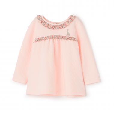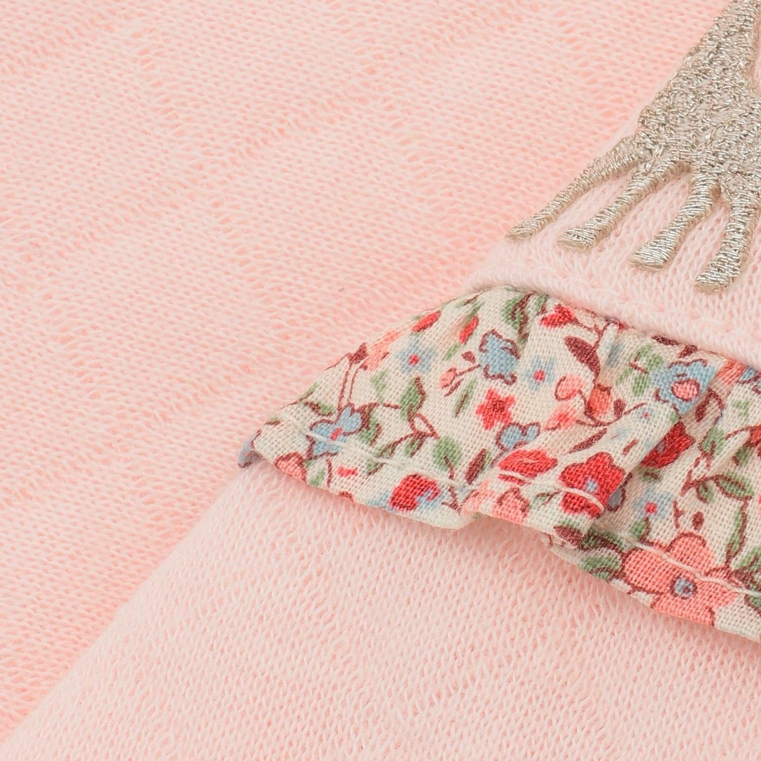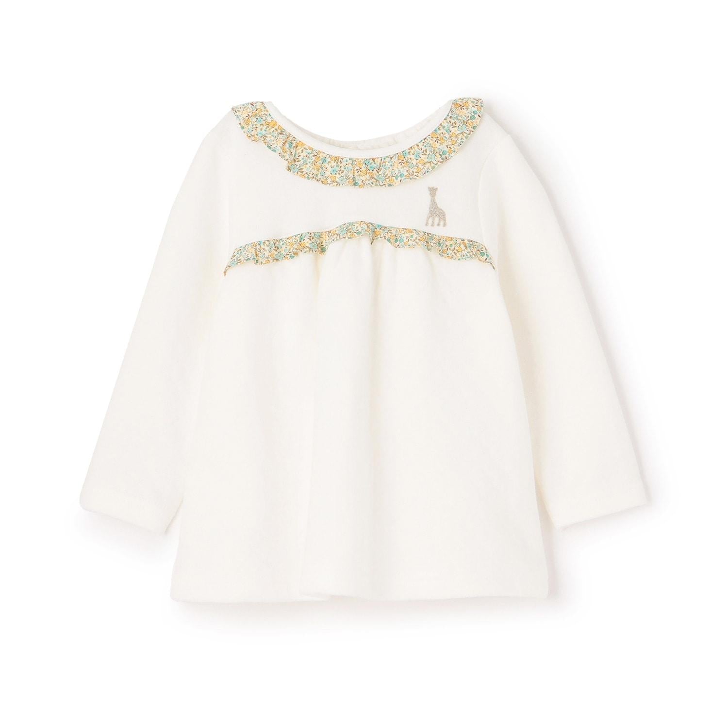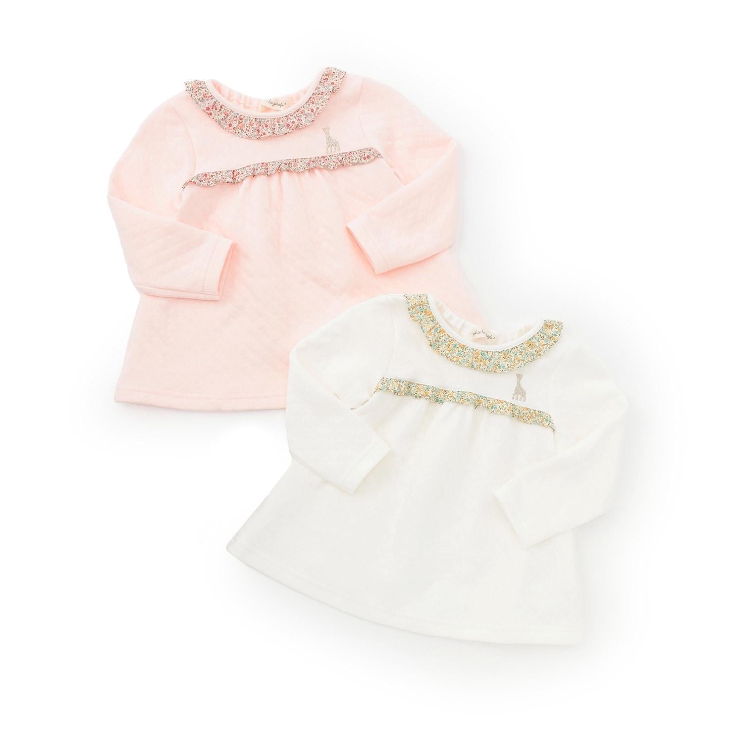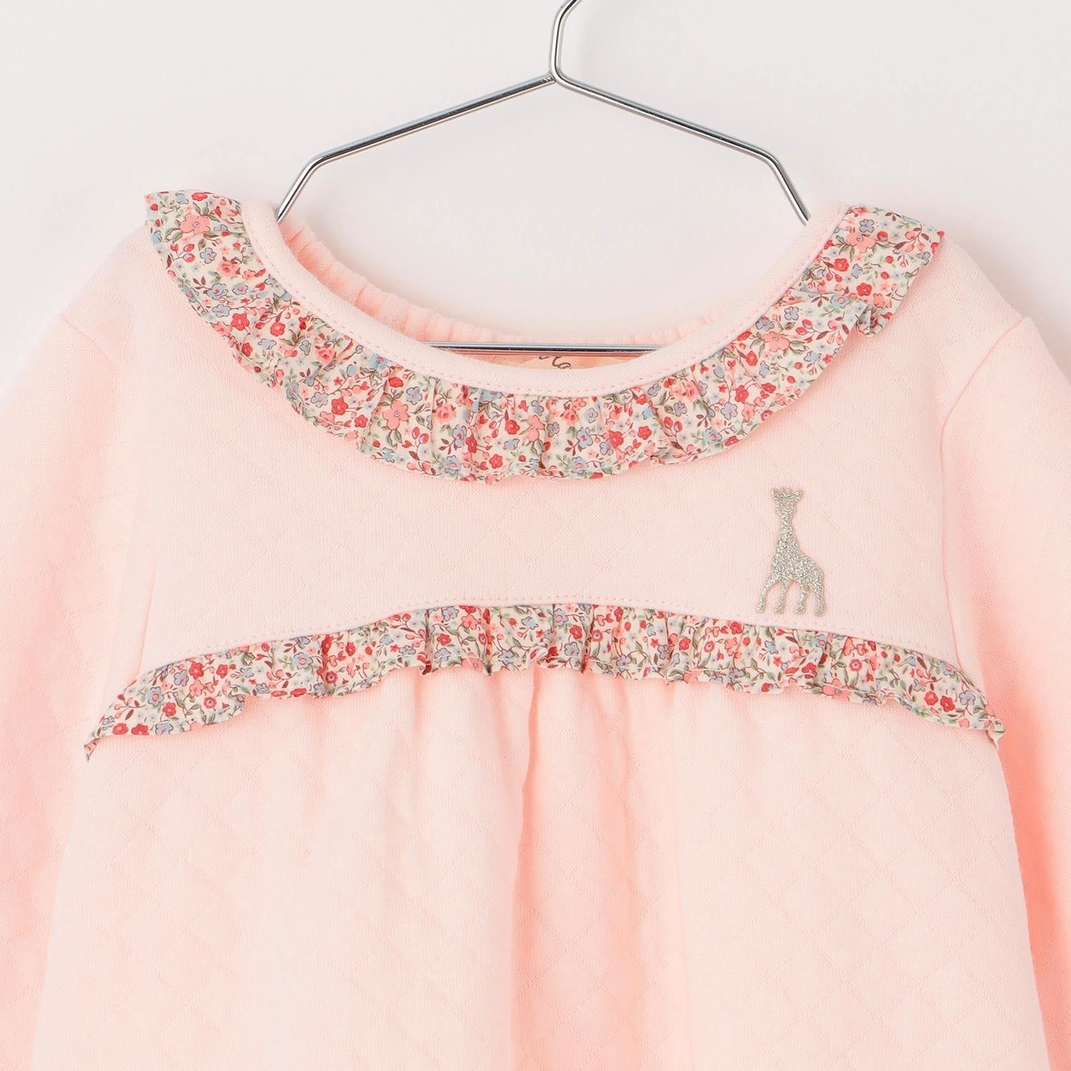 花朵圖案的華麗荷葉邊和胸前的蘇菲刺繡是可愛的點睛之筆。