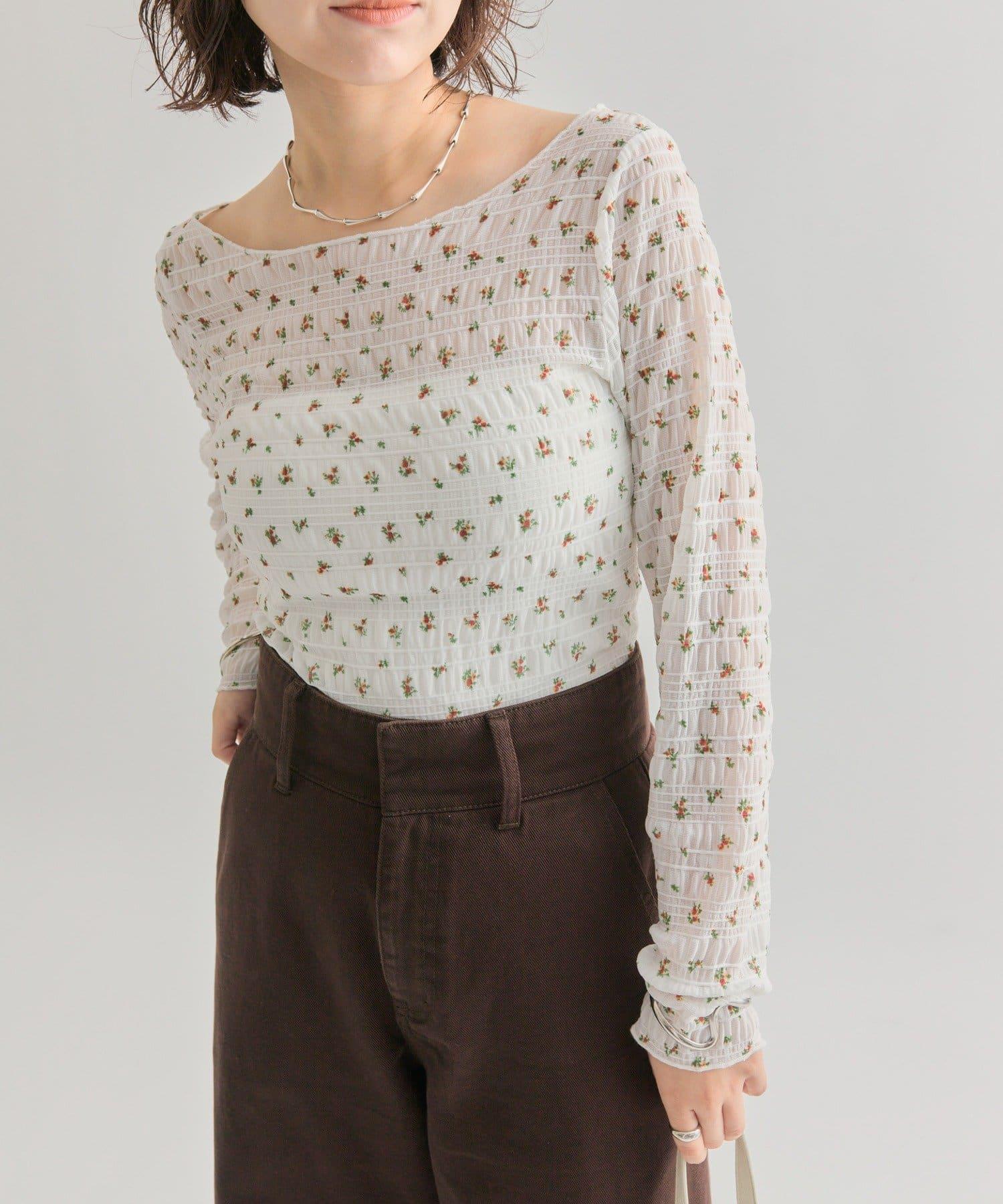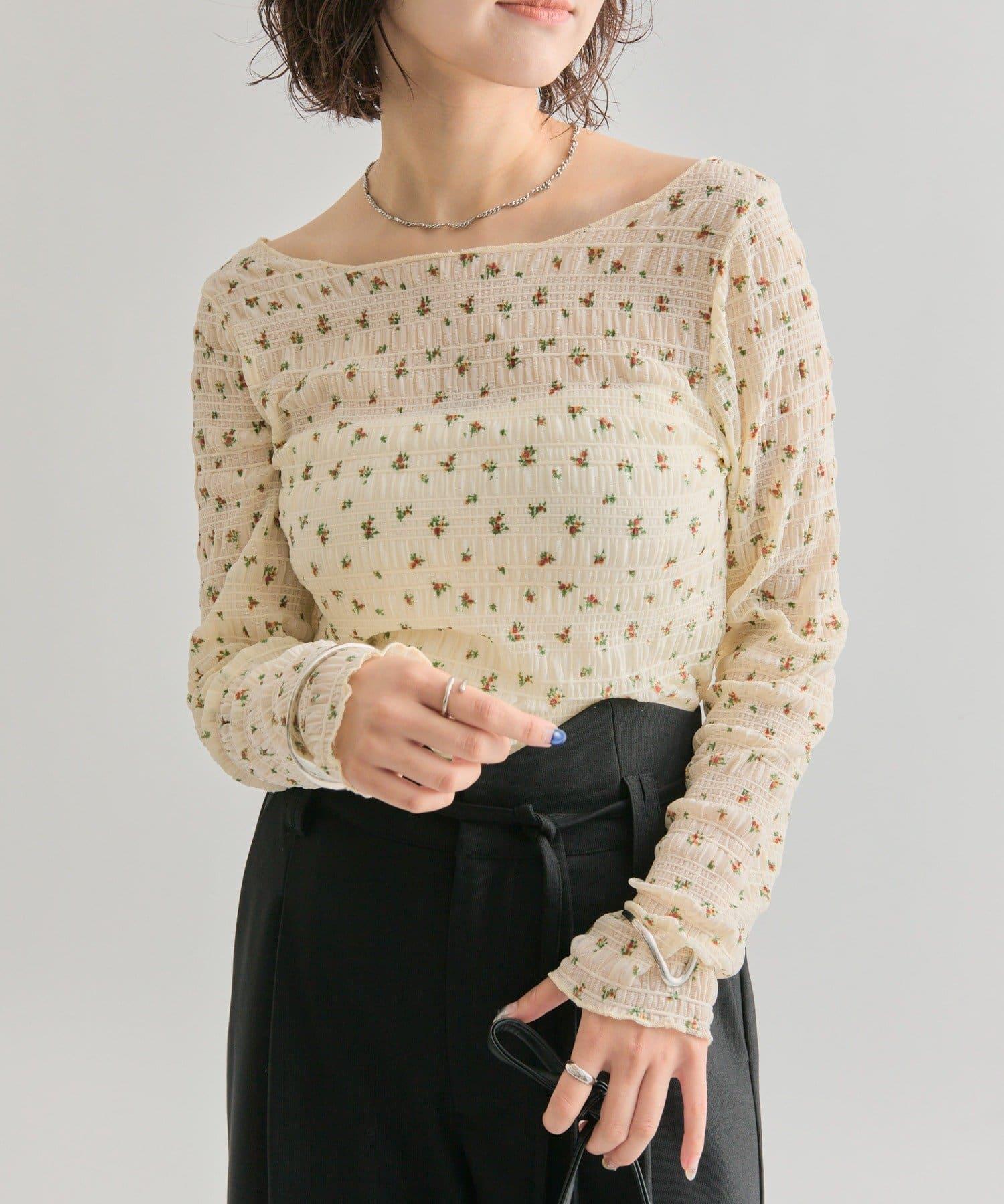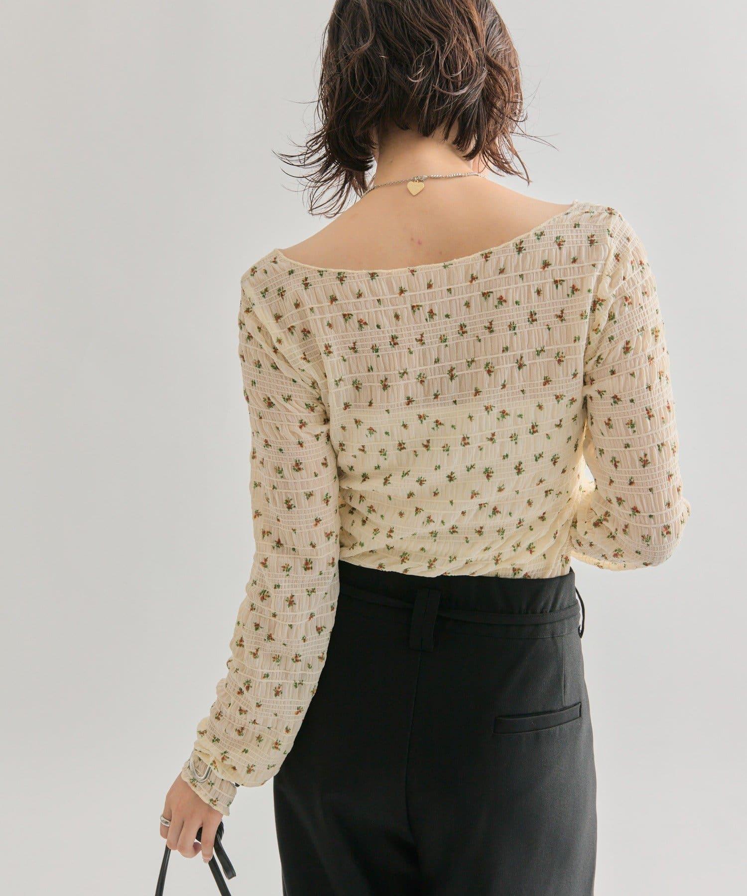 整件上衣的花邊設計輕柔地貼合身體線條,凸顯女性輪廓。