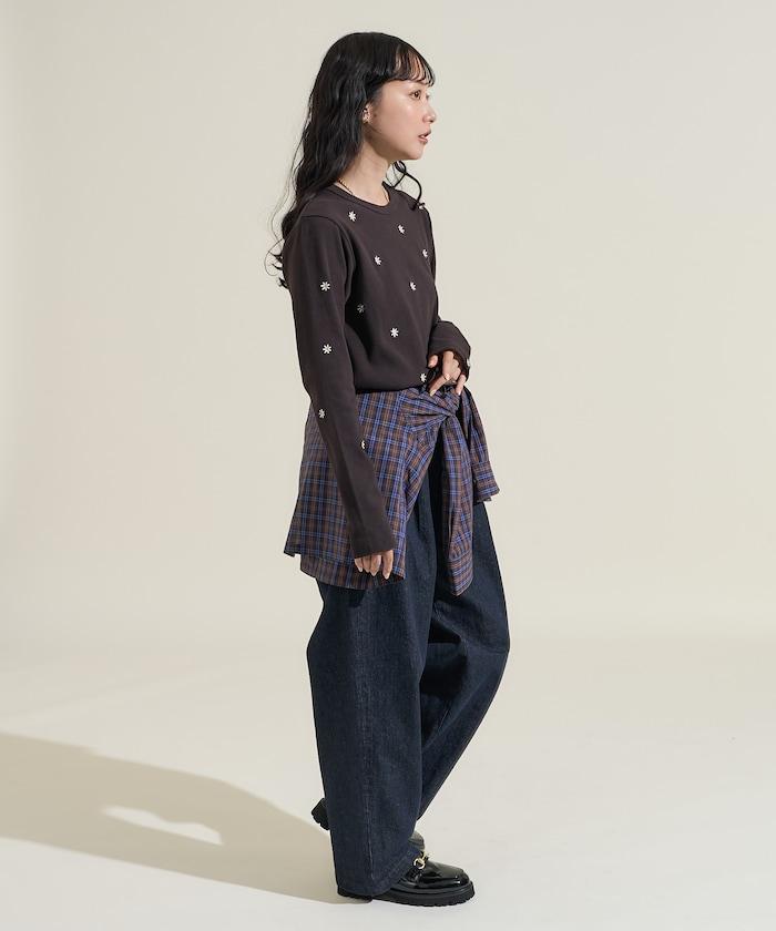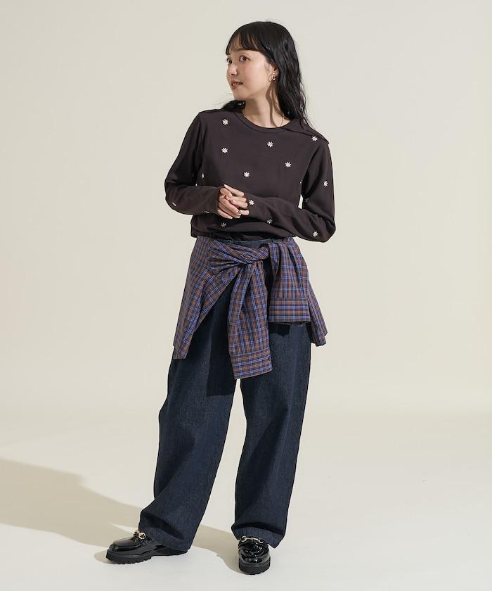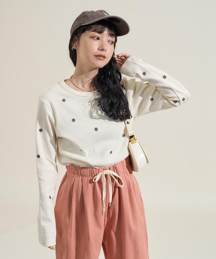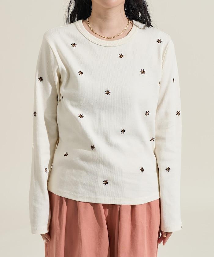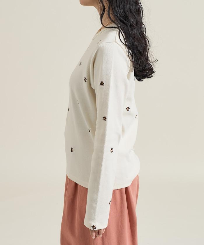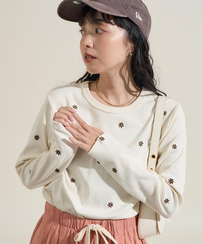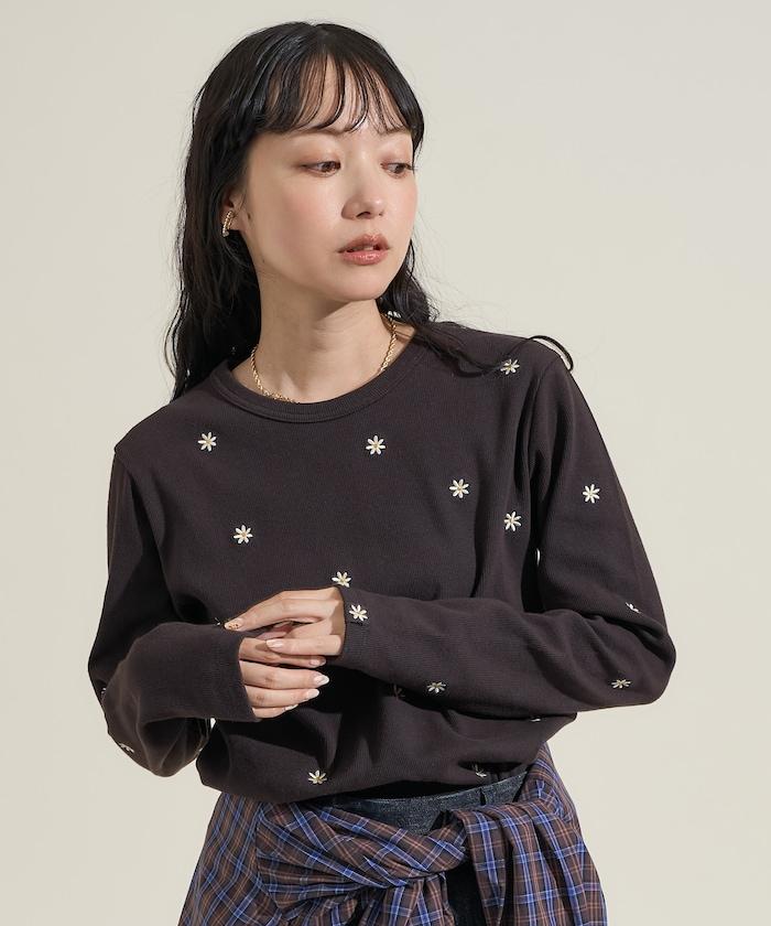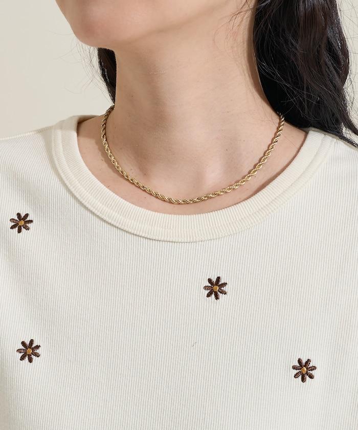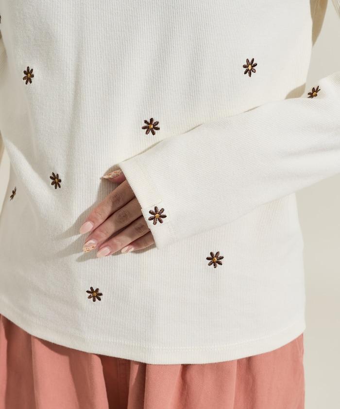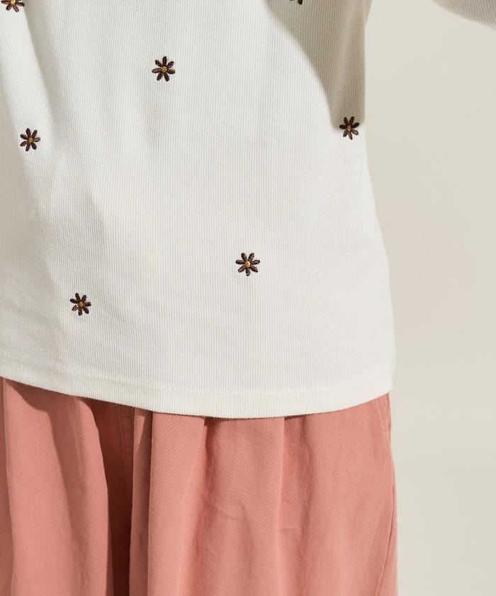可愛迷你雛菊刺繡 T 恤,繡有小花。