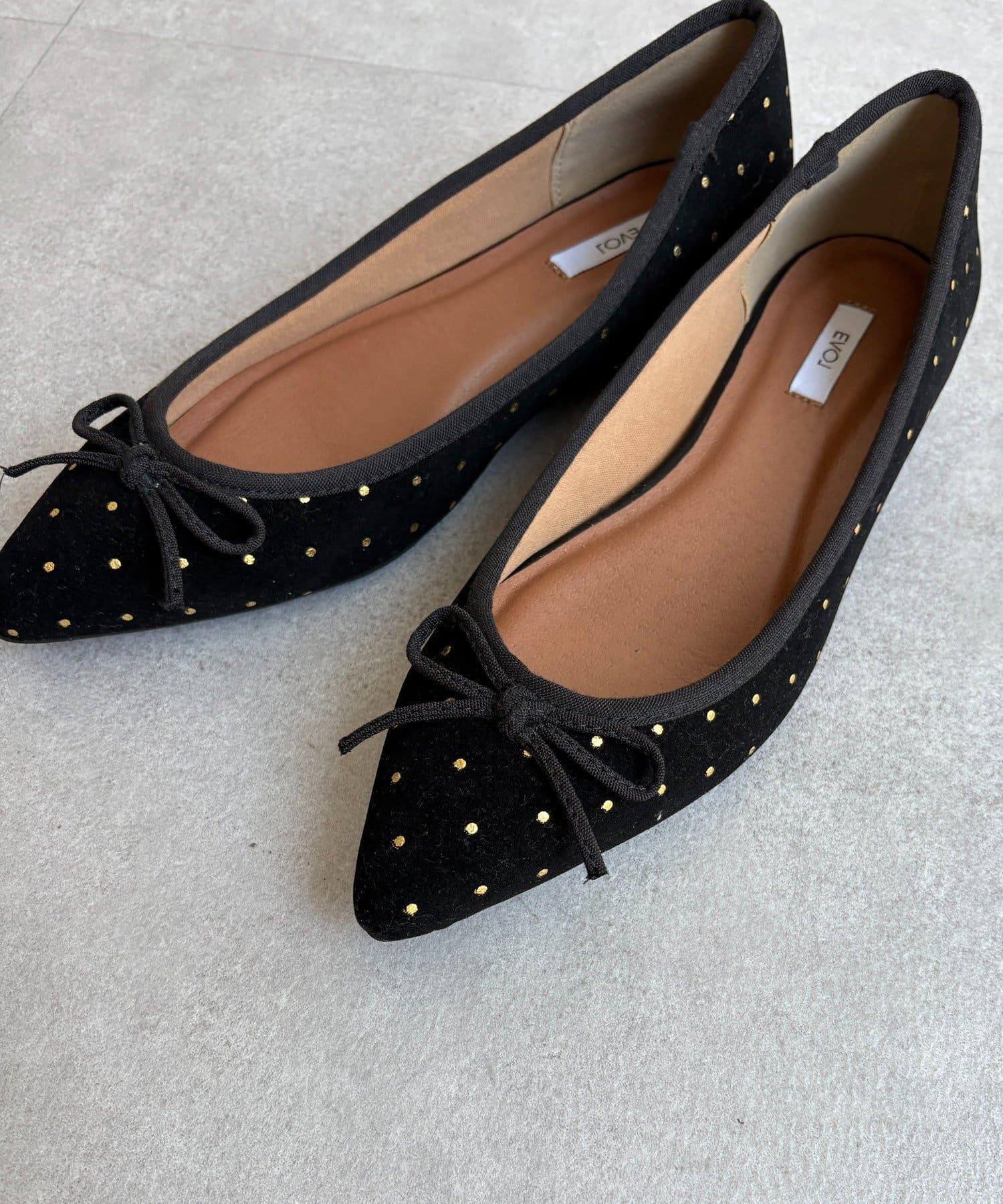新潮的絲絨材質和圓點圖案可以從腳部引入,一下子就能穿出季節感◎。