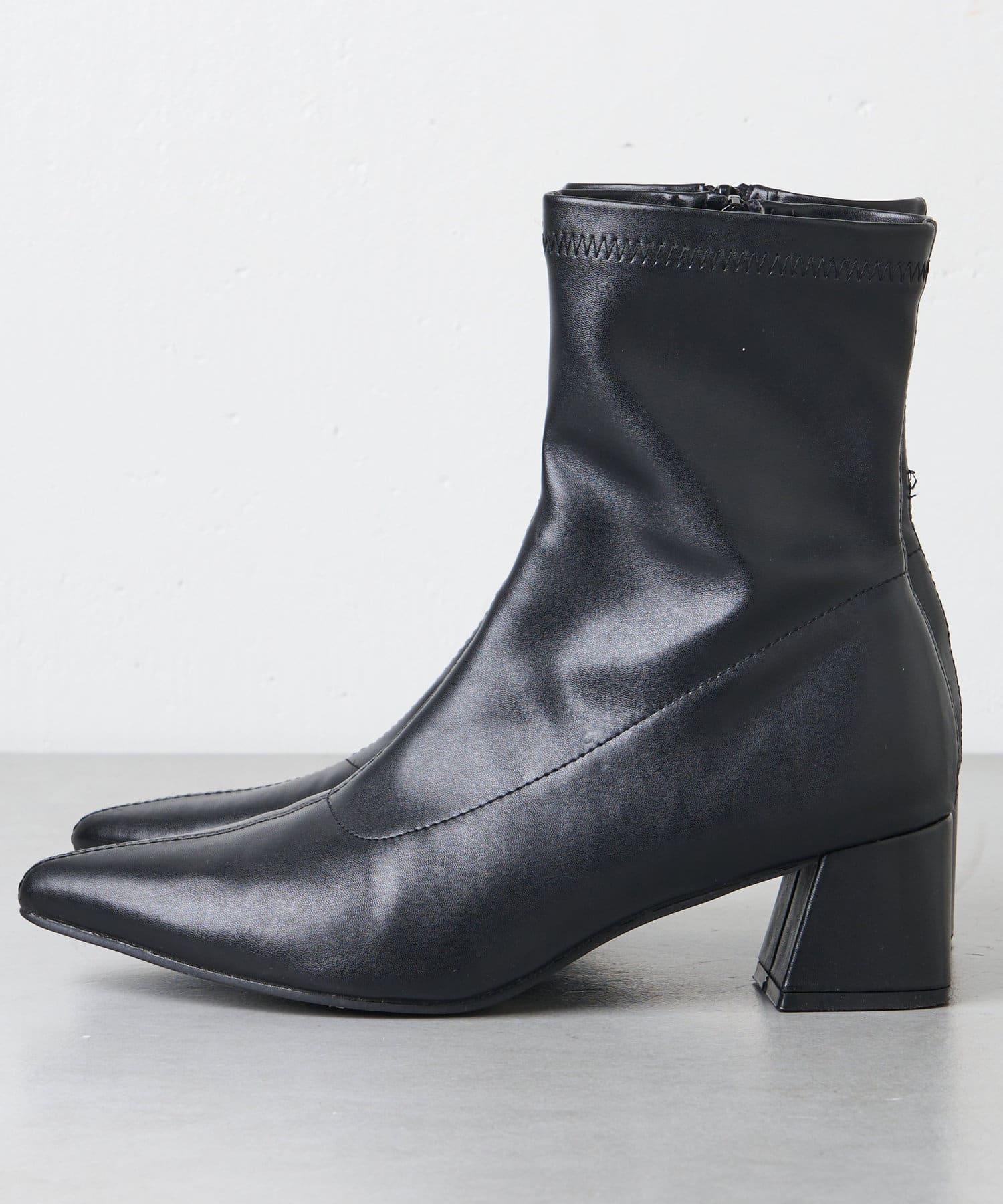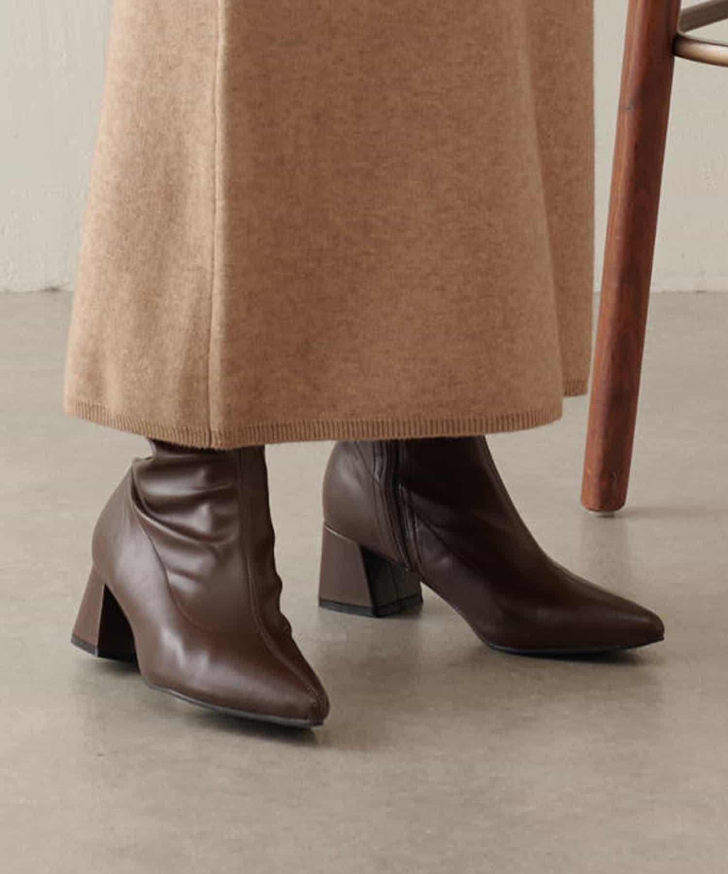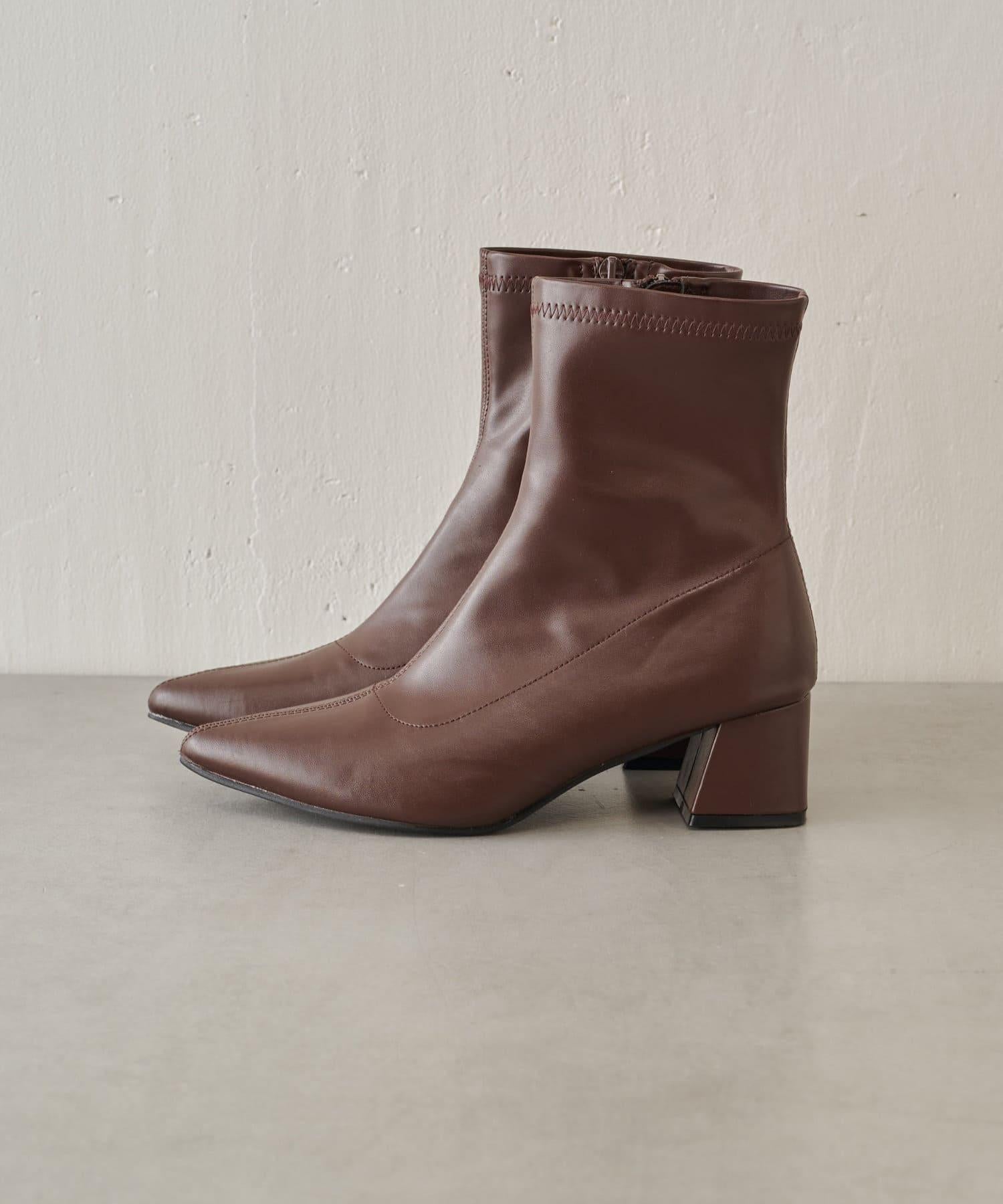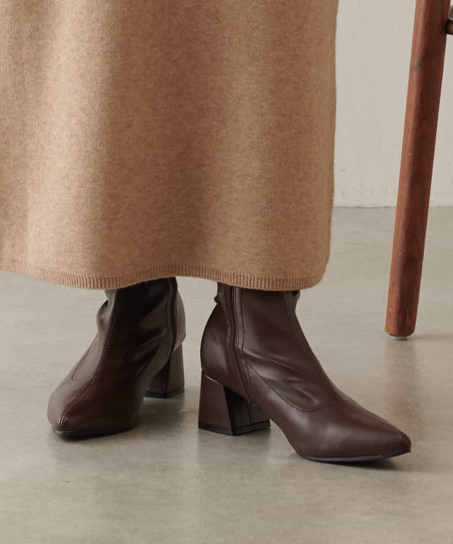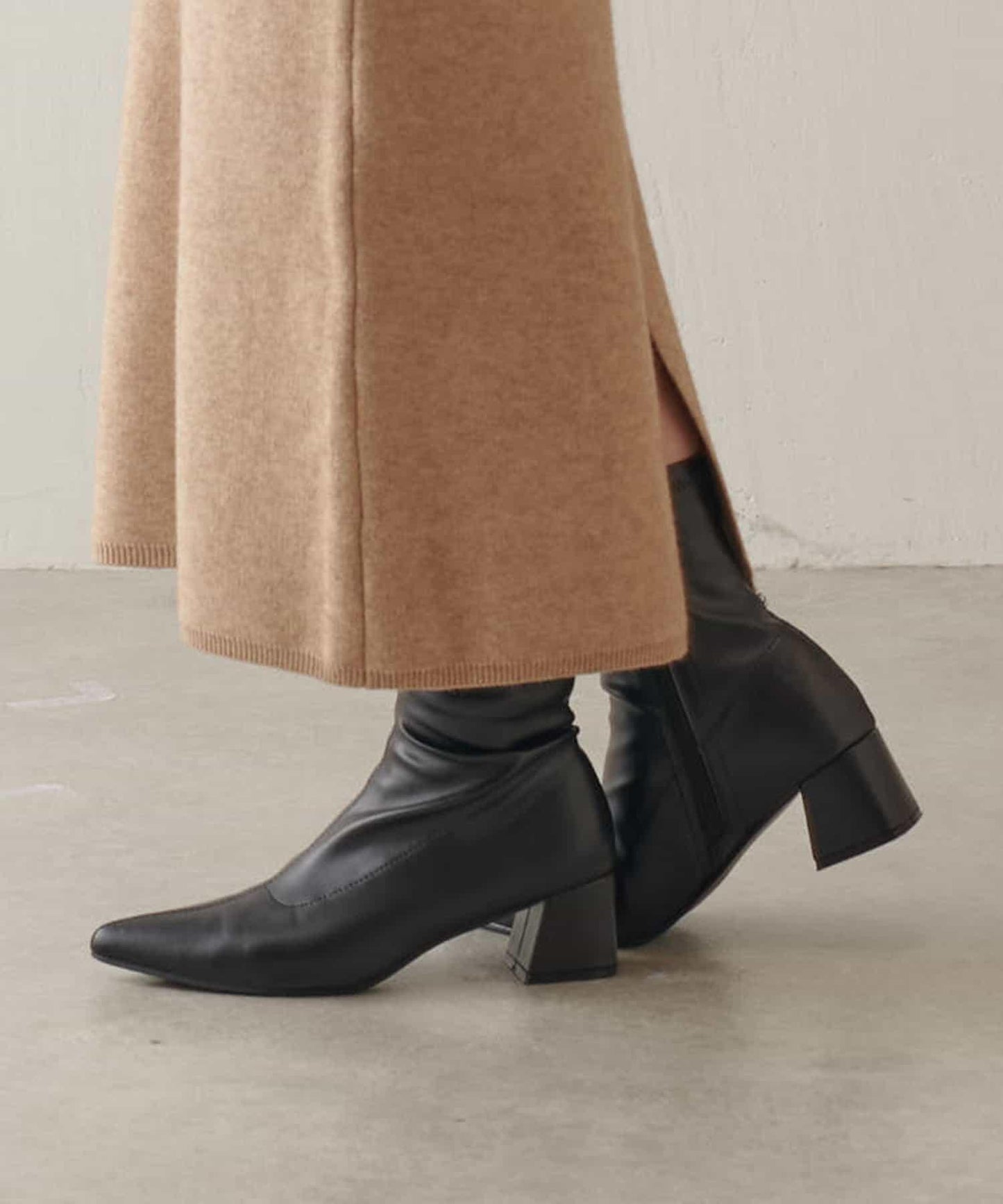 這款短靴鞋跟適中,鞋頭尖尖,腳部看起來乾淨利落。