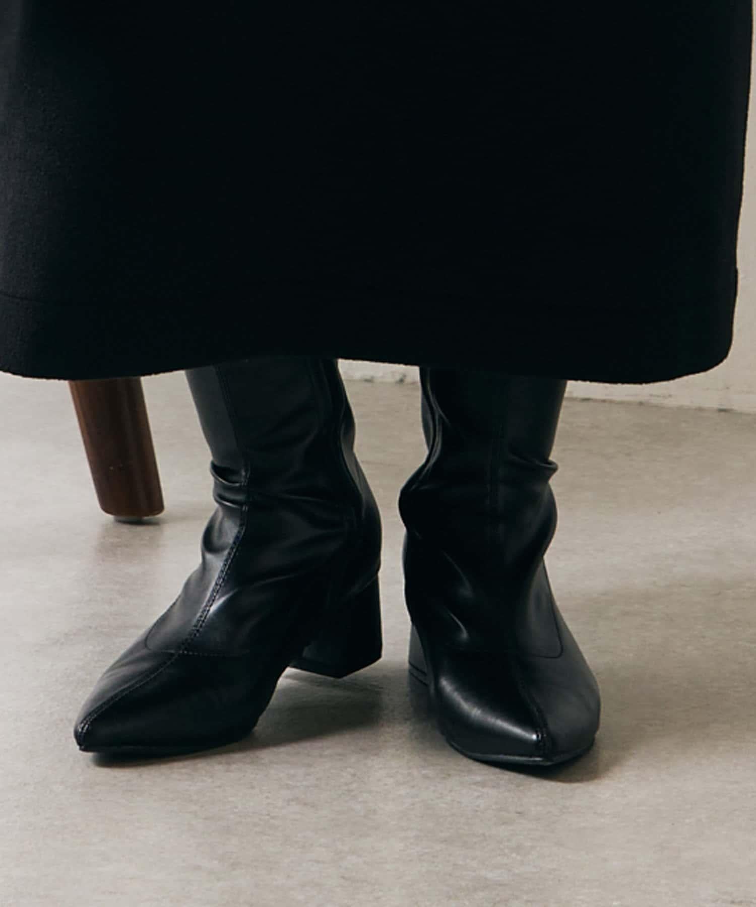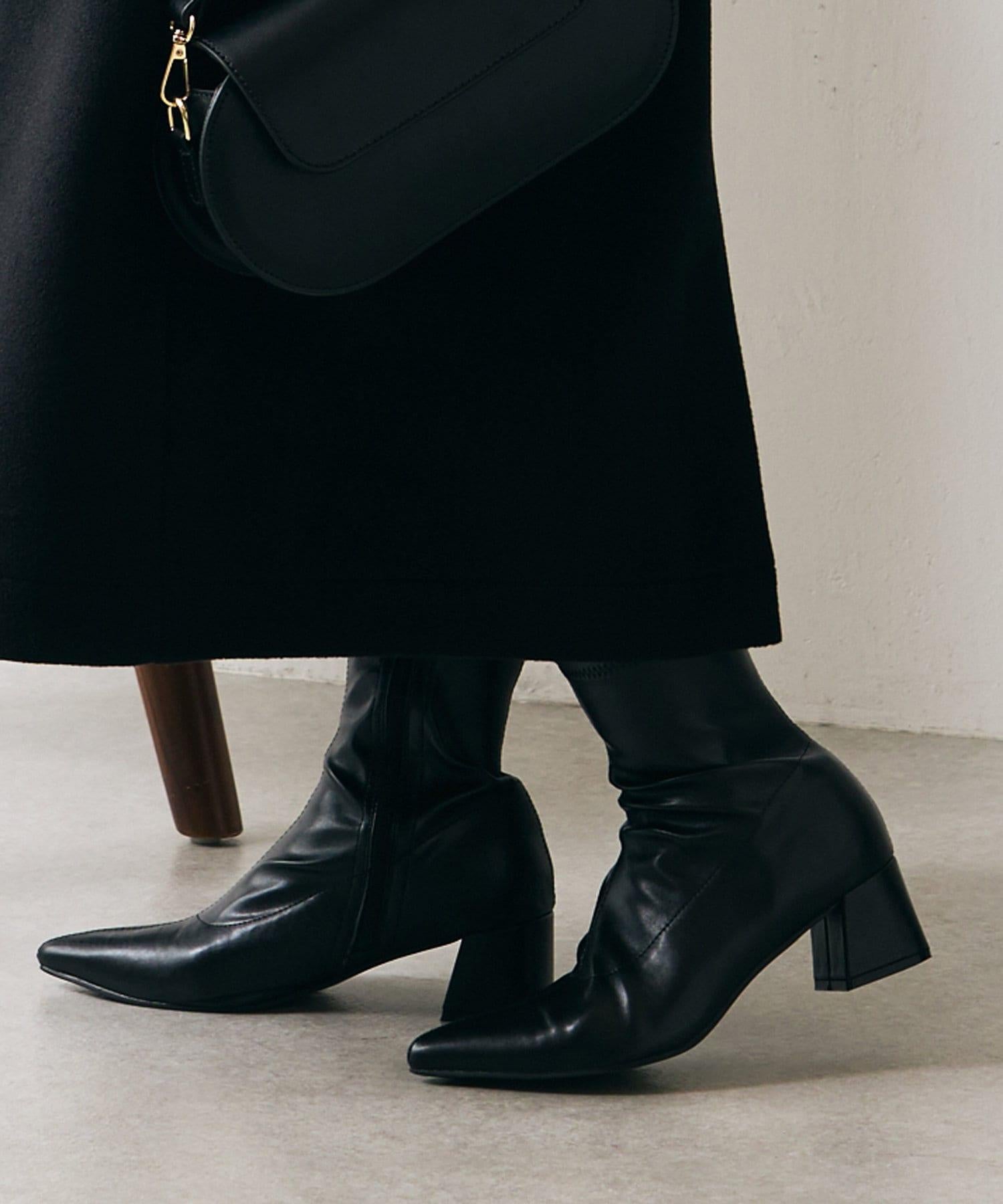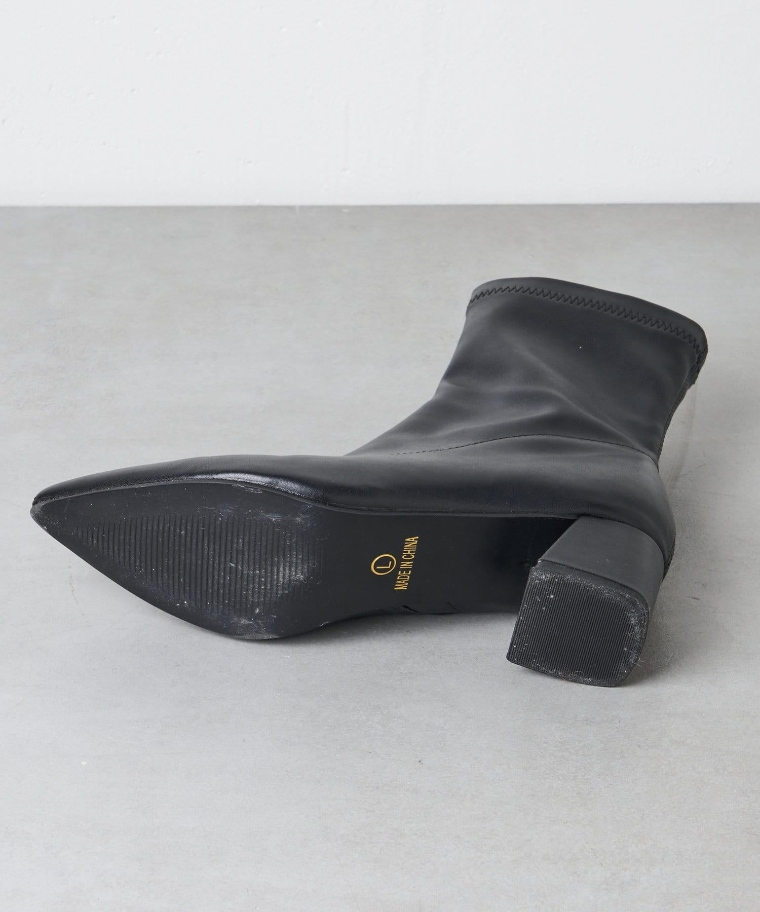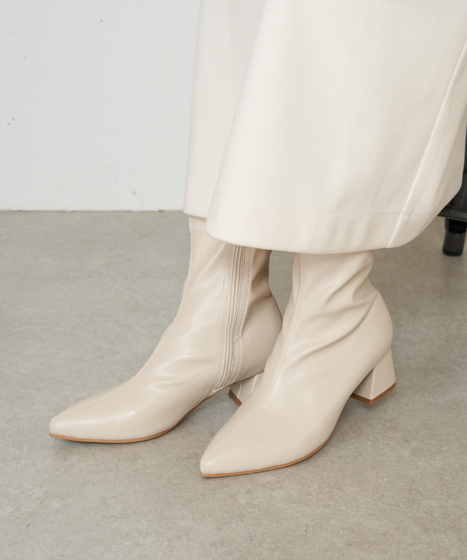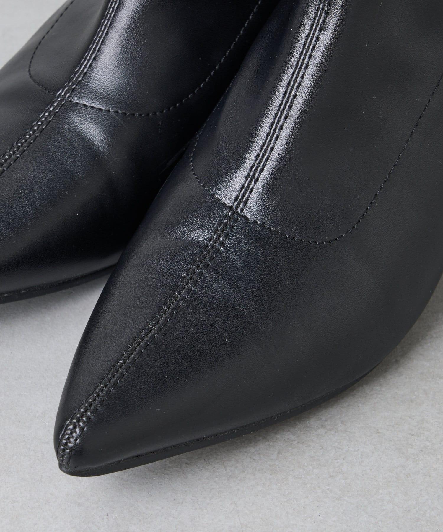 這款短靴鞋跟適中,鞋頭尖尖,腳部看起來乾淨利落。