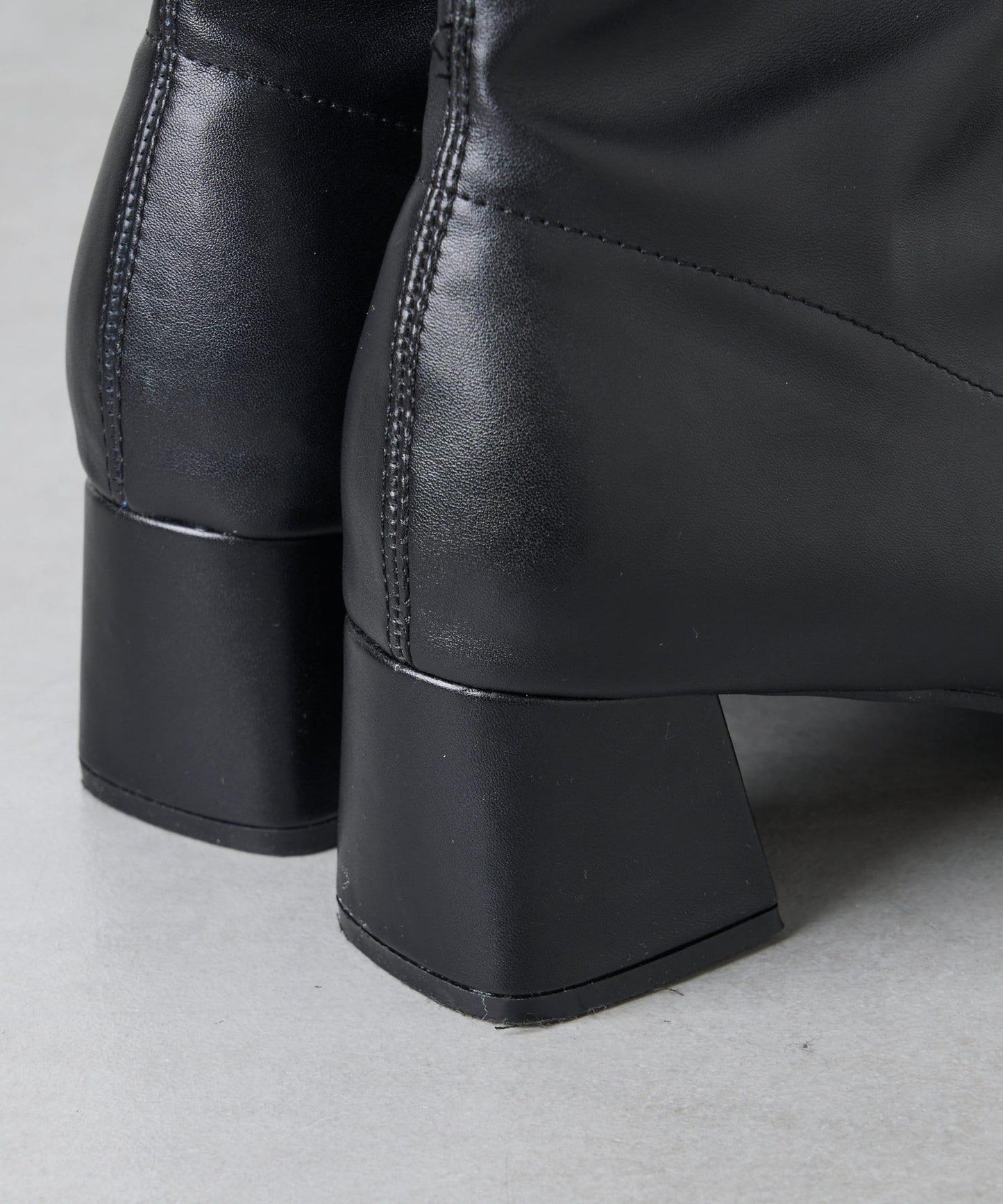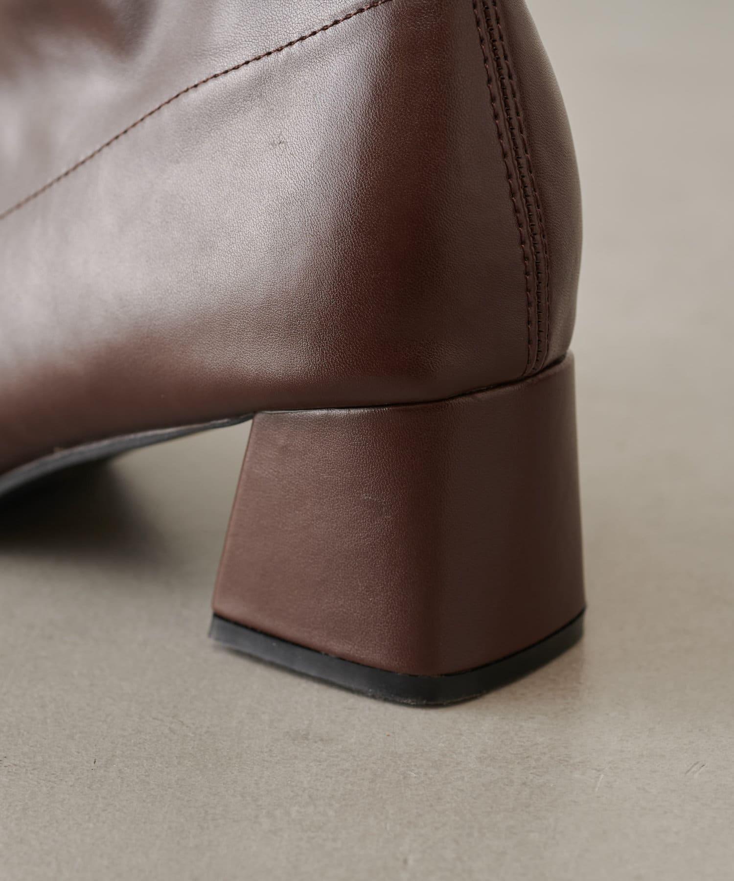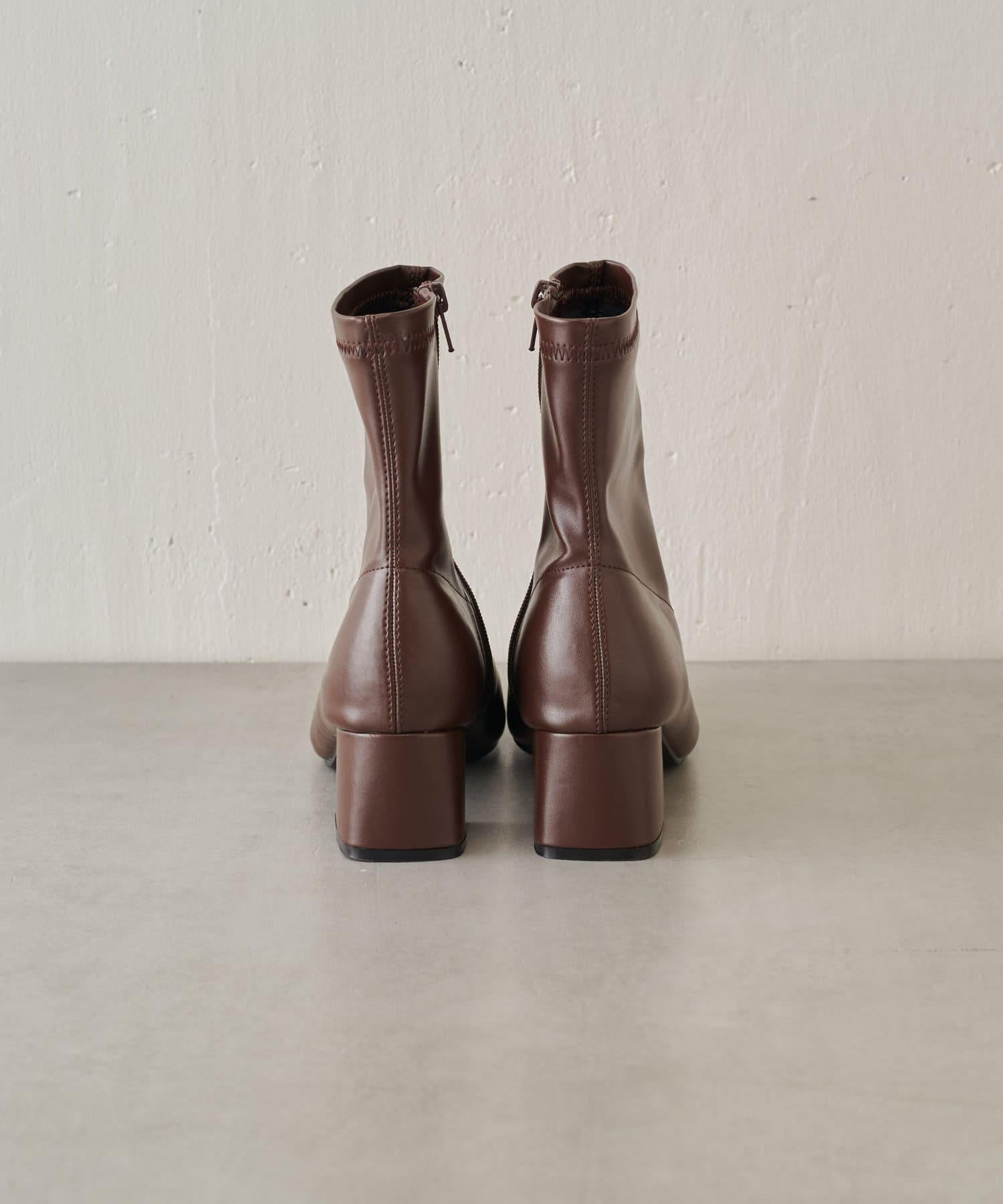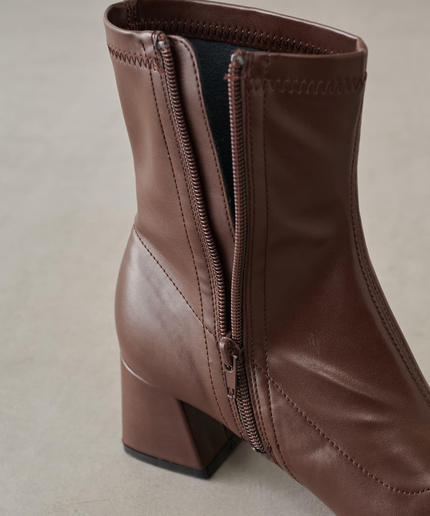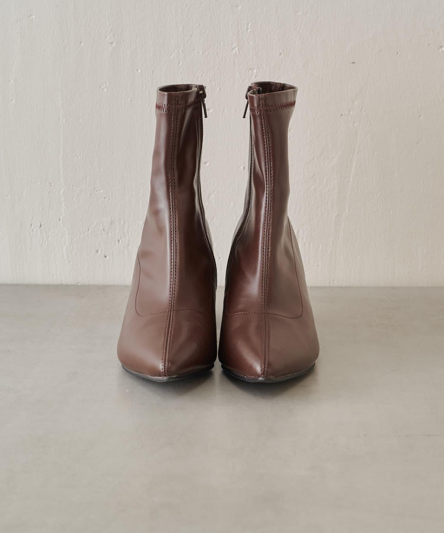 這款短靴鞋跟適中,鞋頭尖尖,腳部看起來乾淨利落。